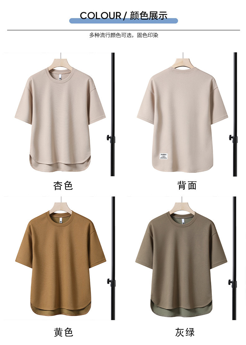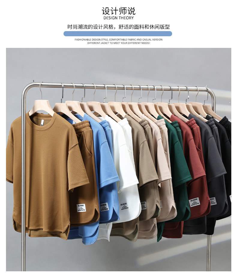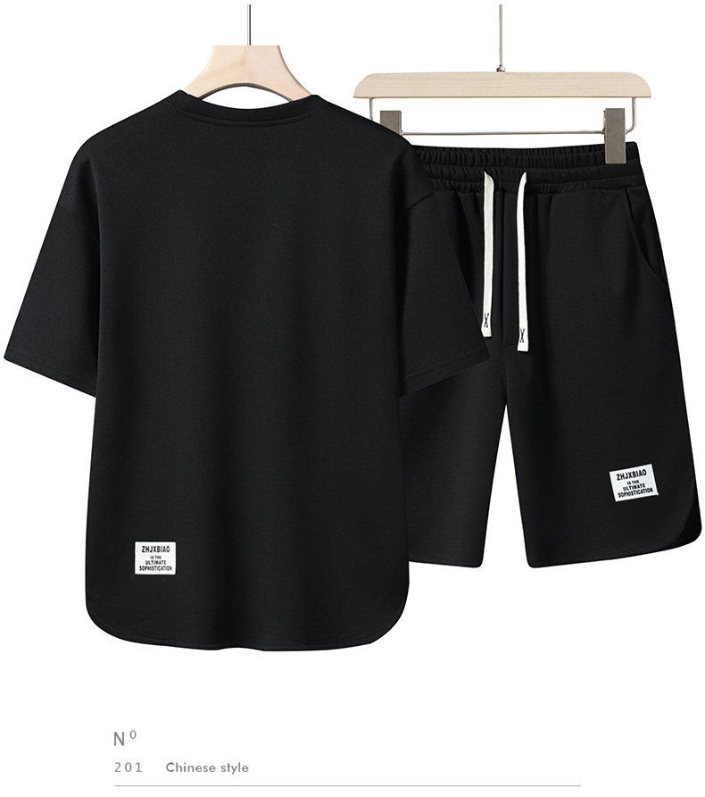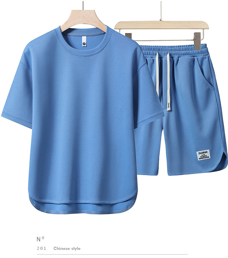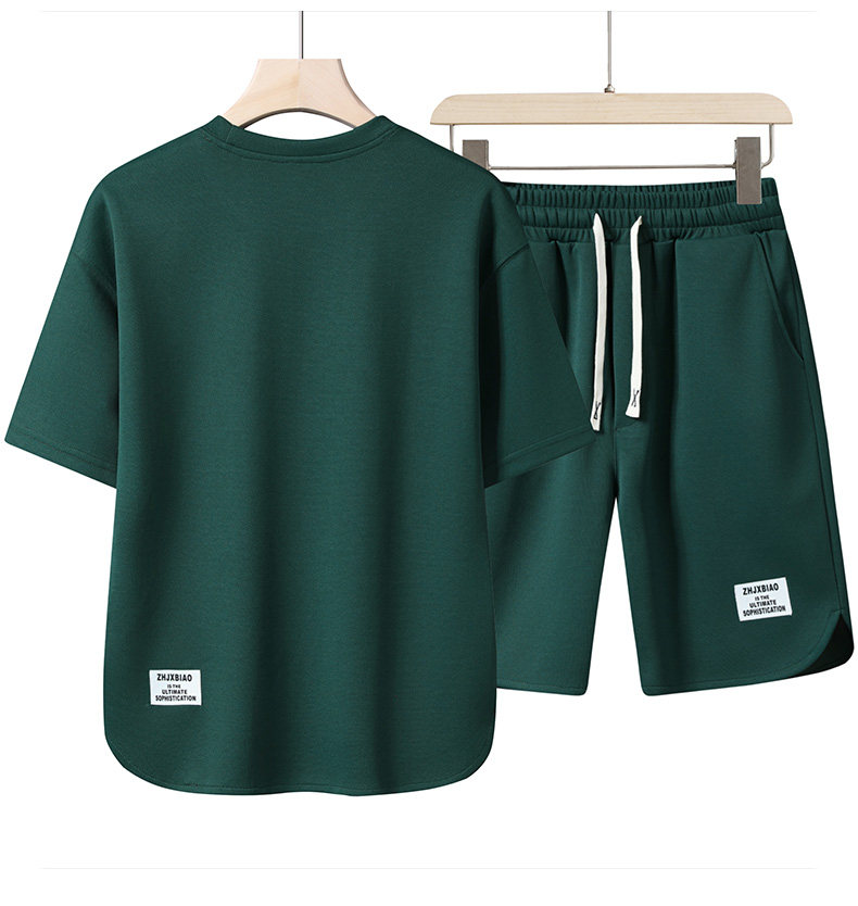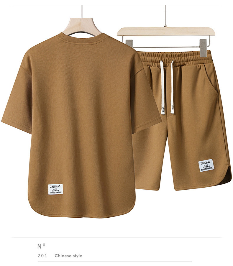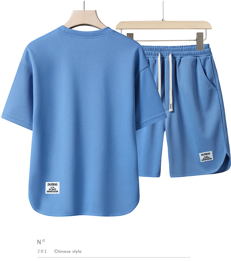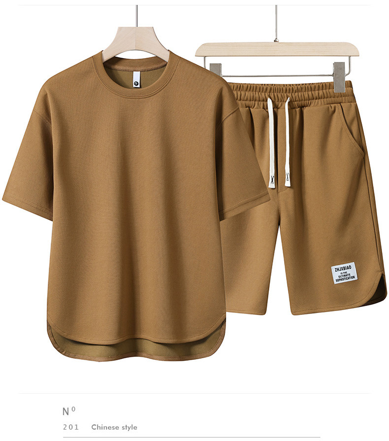 Summer Short-Sleeve Suit for Men, Round-Neck T-Shirt, High-End Solid Color Half-Sleeve, Slit Hem, Thin and Breathable, Five-Point Shorts Two-Piece Set