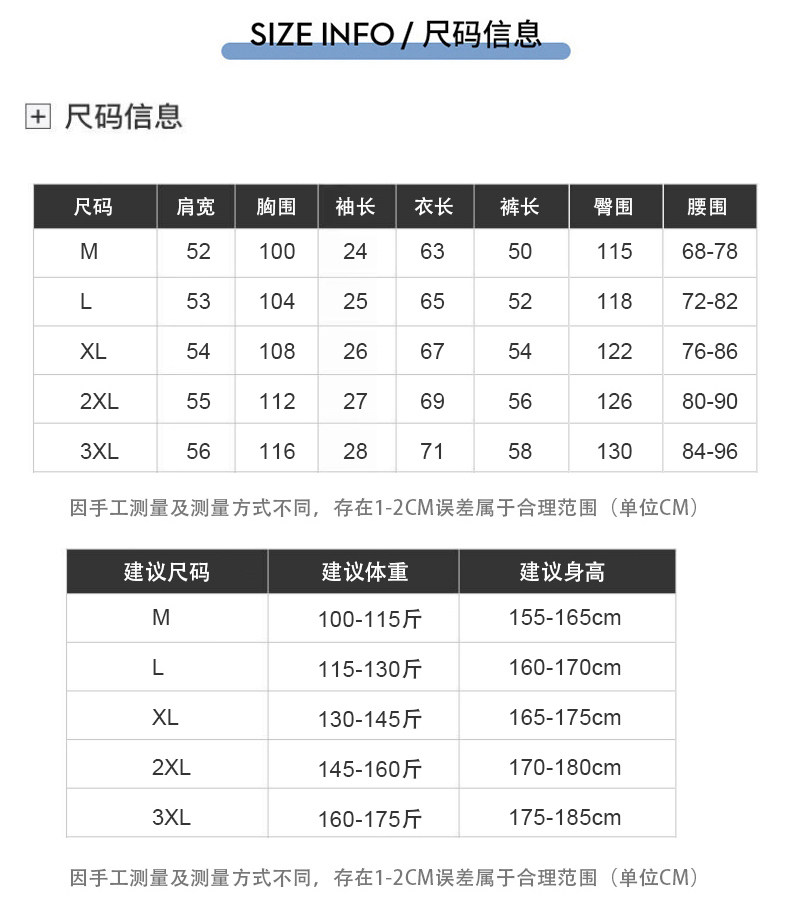 China (cm) 165 / 88-90 170 / 96-98 175 / 108-110 180 / 118-122 185 / 126-130