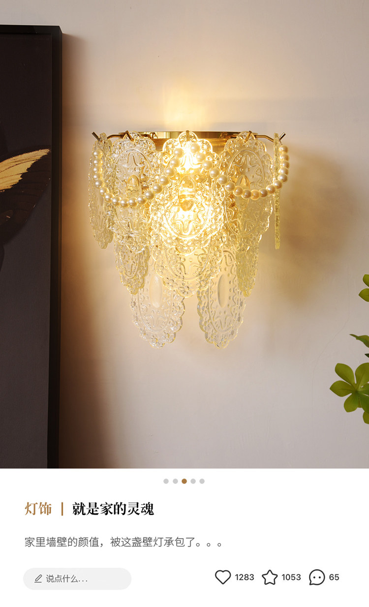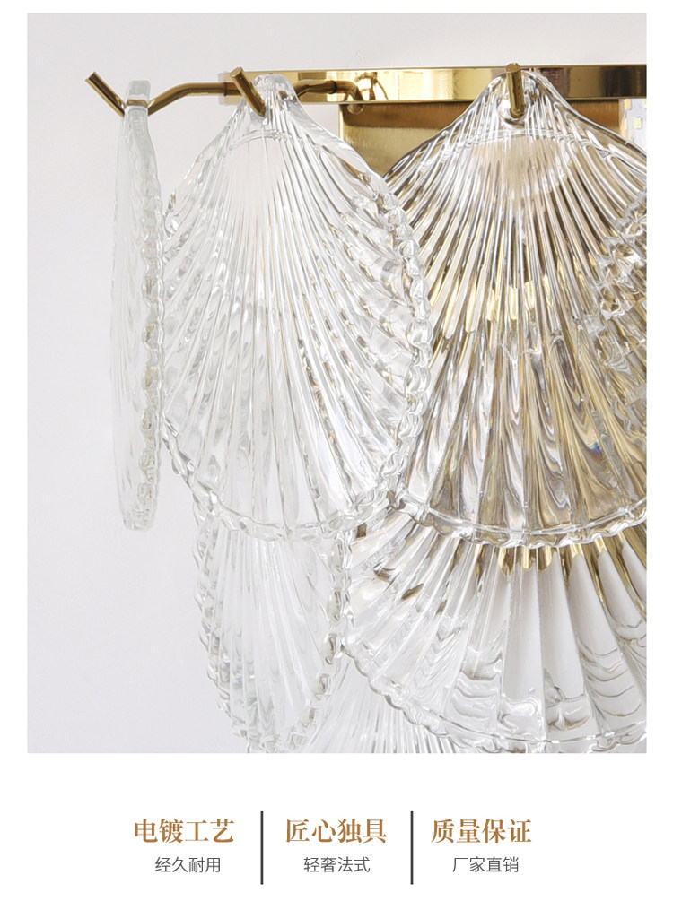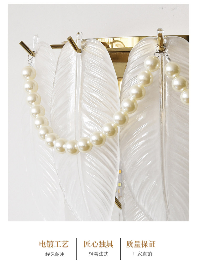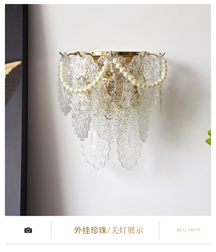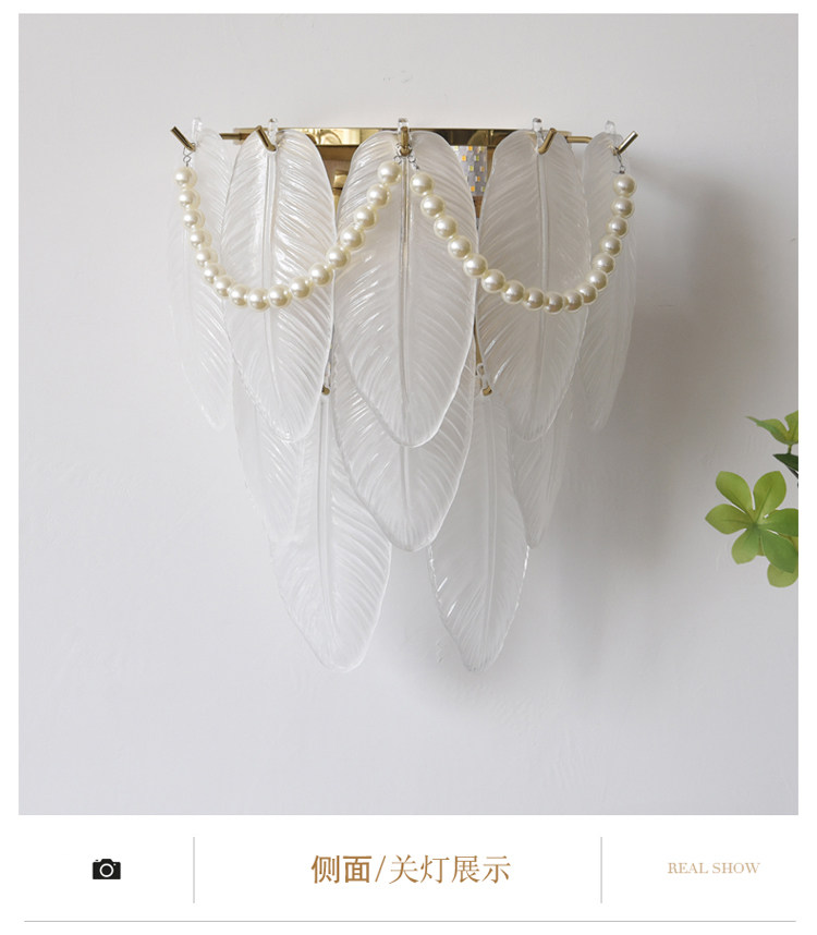 French-Style Light Luxury Wall Lamp, Crystal Glass Bedroom Bedside Lamp, Living Room Hallway Corridor Feather Shell Pearl Cream Style