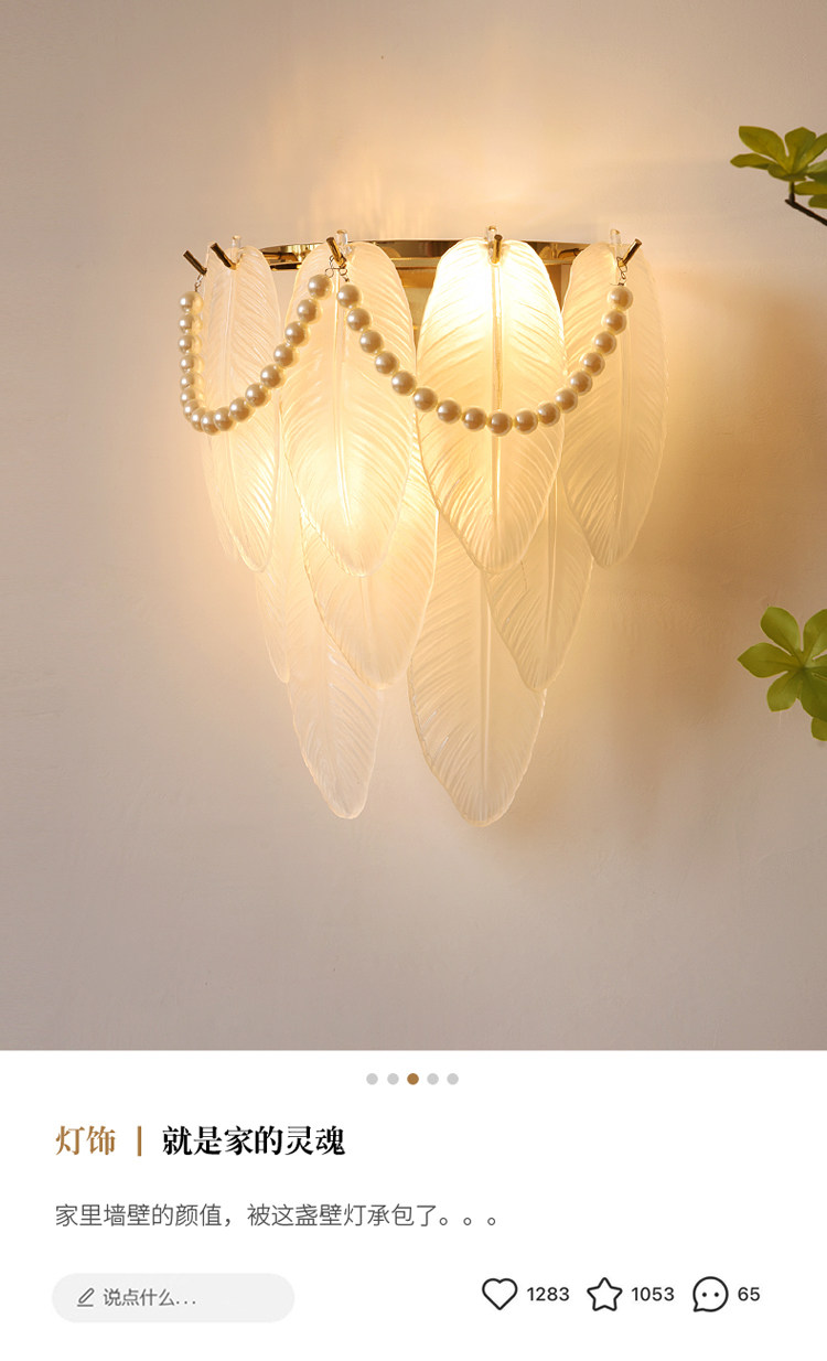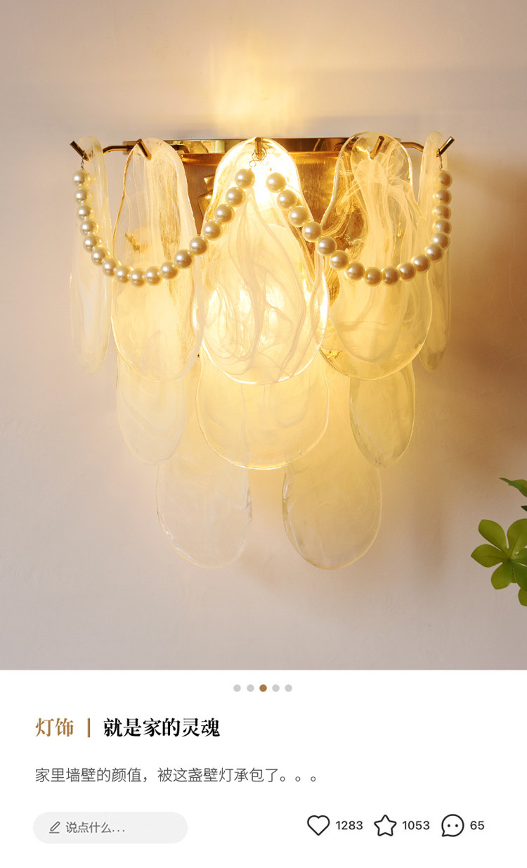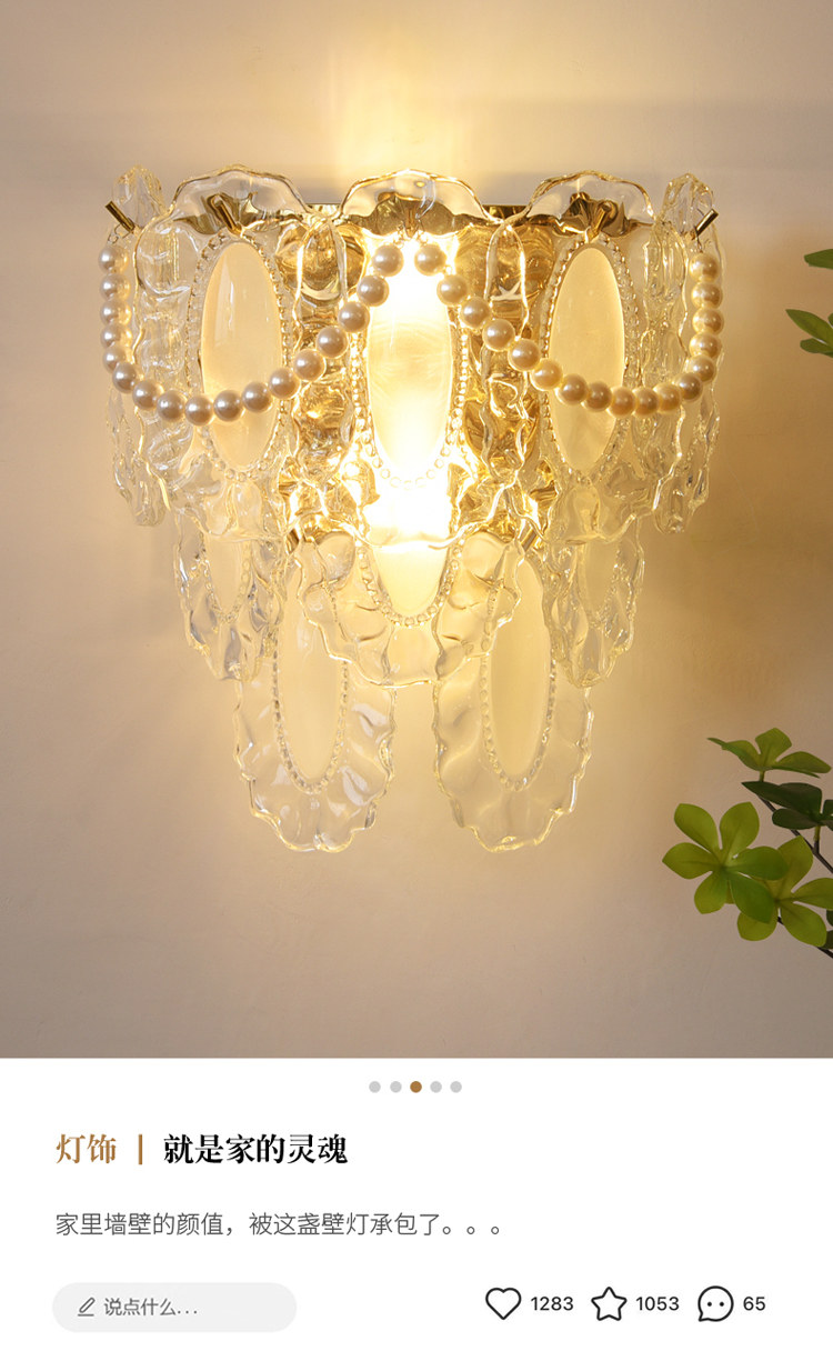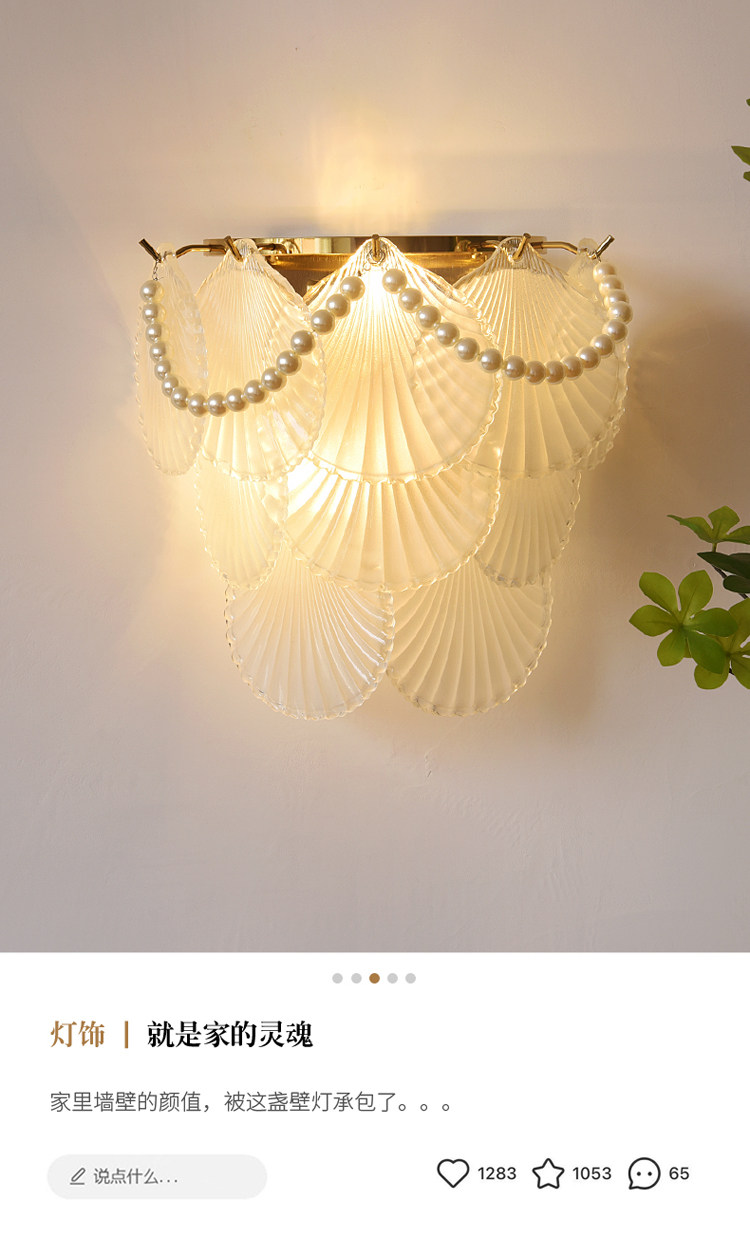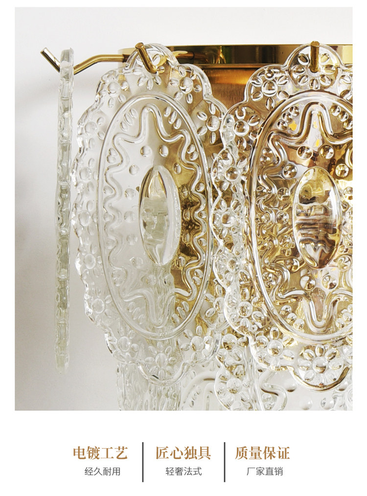 French-Style Light Luxury Wall Lamp, Crystal Glass Bedroom Bedside Lamp, Living Room Hallway Corridor Feather Shell Pearl Cream Style