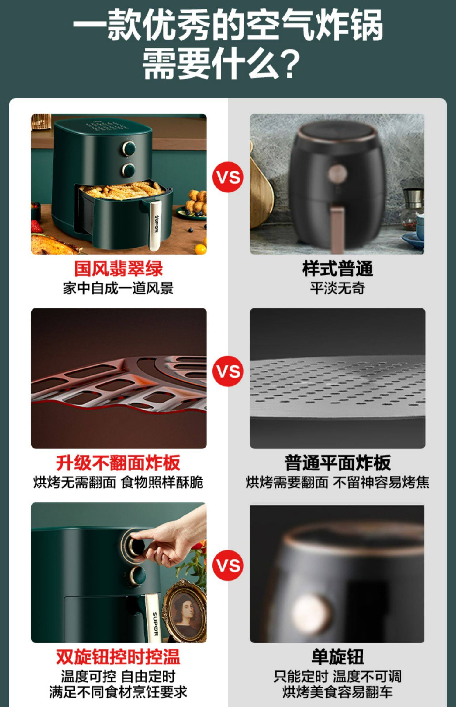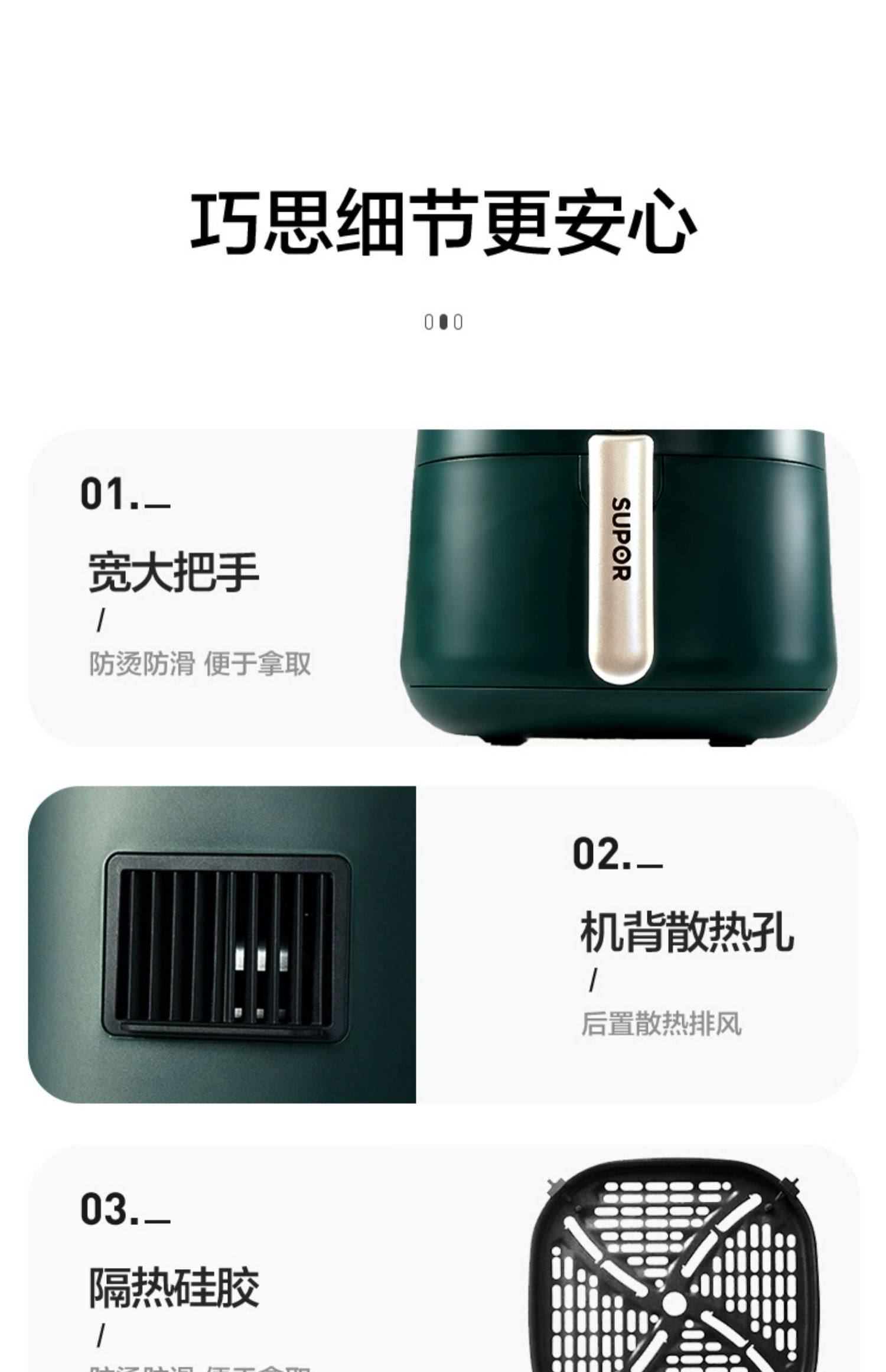 Supor Air Fryer for Home Use 2023 New Model Official Flagship Smart Oil-Free Multifunctional Large Capacity Electric Fryer