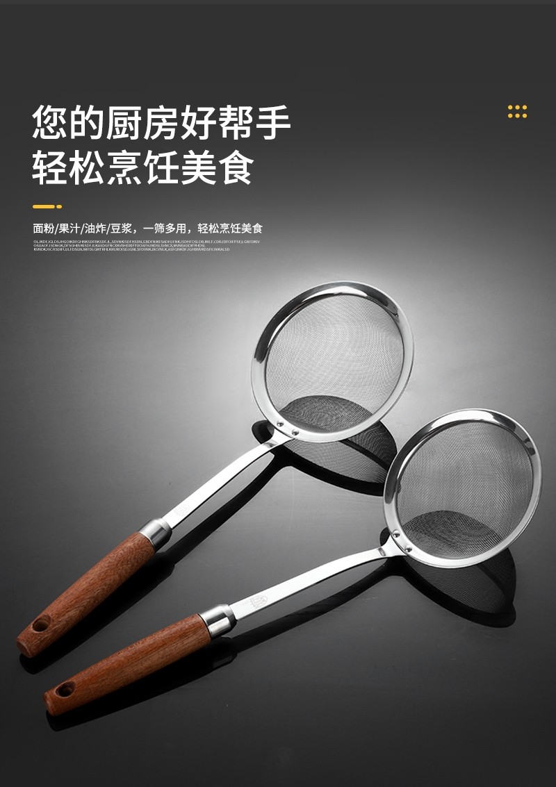 Color Classification 304 Food Grade Stainless Steel Mesh Drain-Small Rosewood Handle,304 Food Grade Stainless Steel Mesh Drain-Medium Rosewood Handle,304 Food Grade Stainless Steel Mesh Drain-Large Rosewood Handle,304 Food Grade Stainless Steel Mesh Drain-Large Rosewood Handle
