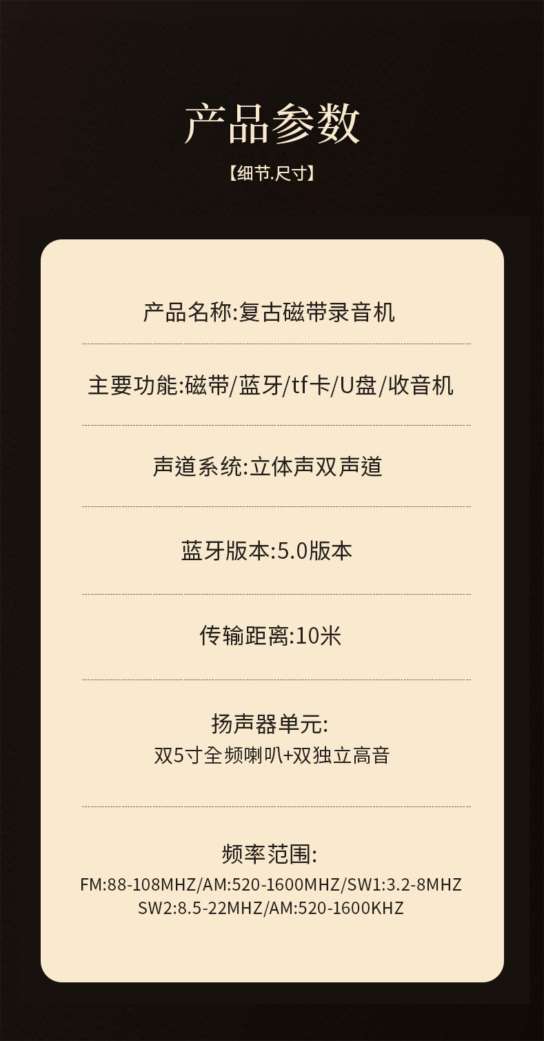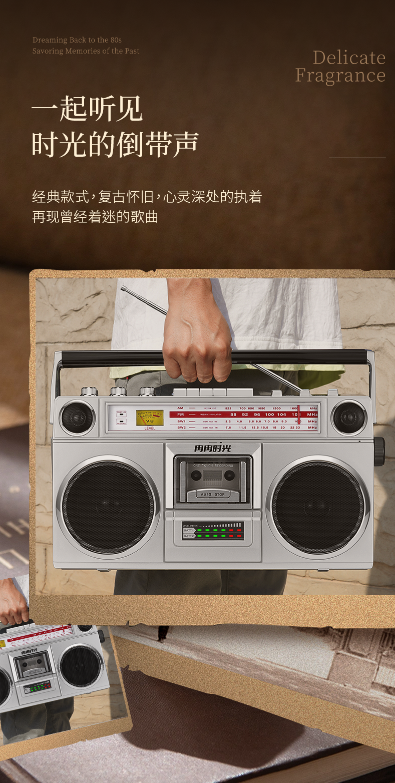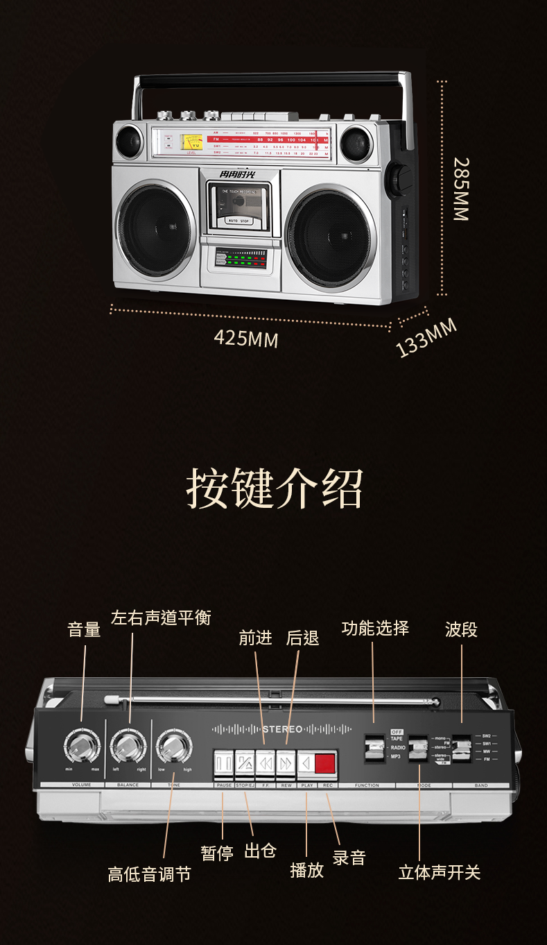 Two-channel retro tape player recorder vintage 80s full-band radio multi-function cassette player