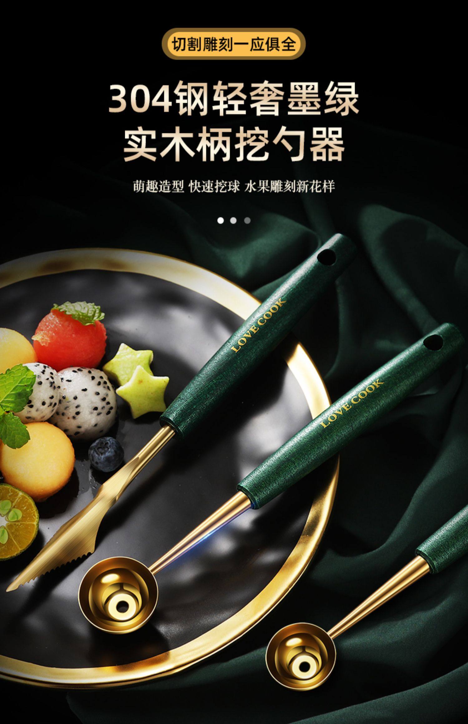 Color Classification 304 Dark Green Gold Carved Vessel,304 Dark Green Gold Large Ball Scoop,304 Dark Green Gold Small Ball Scoop,304 Dark Green Gold Three-Piece Set,304 Dark Green Gold Two-Piece Set (Carving Tool + Large Ball Scoop),304 Dark Green Gold Two-Piece Set (Small Ball Scoop + Large Ball Scoop)