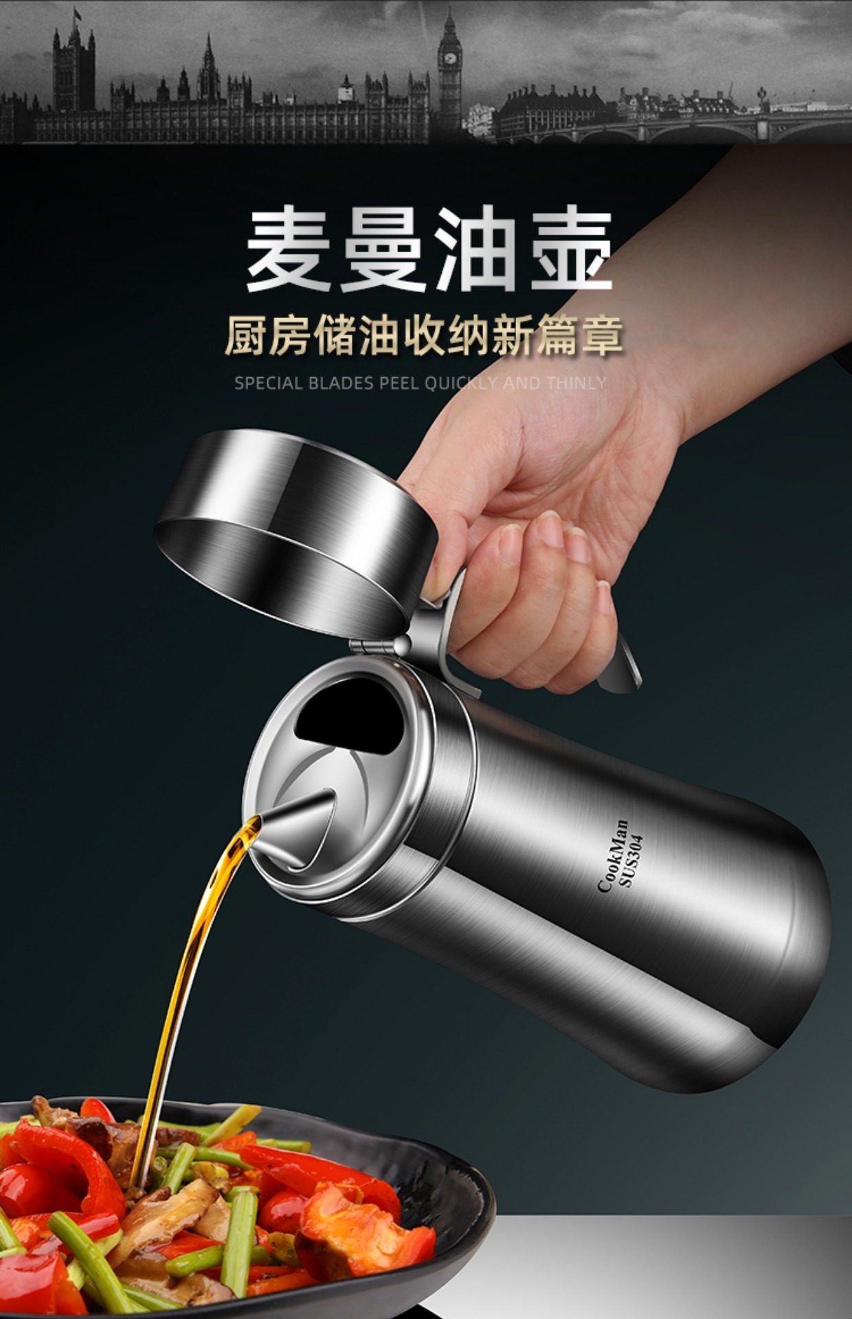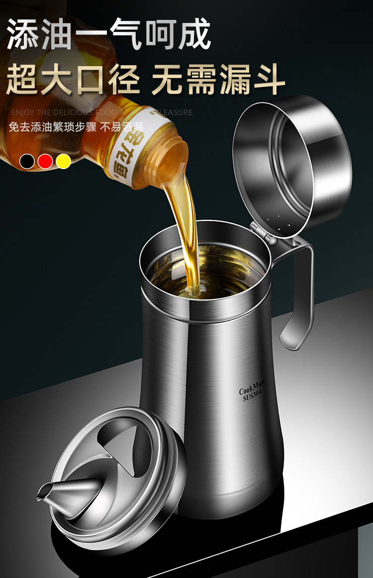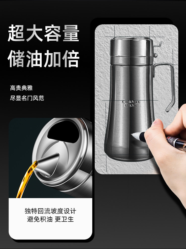 German Imported Oil Pot, New Model, Leak-Proof Oil Bottle for Kitchen Use, Non-Drip, Suitable for Soy Sauce and Vinegar, Stainless Steel Large Oil Container