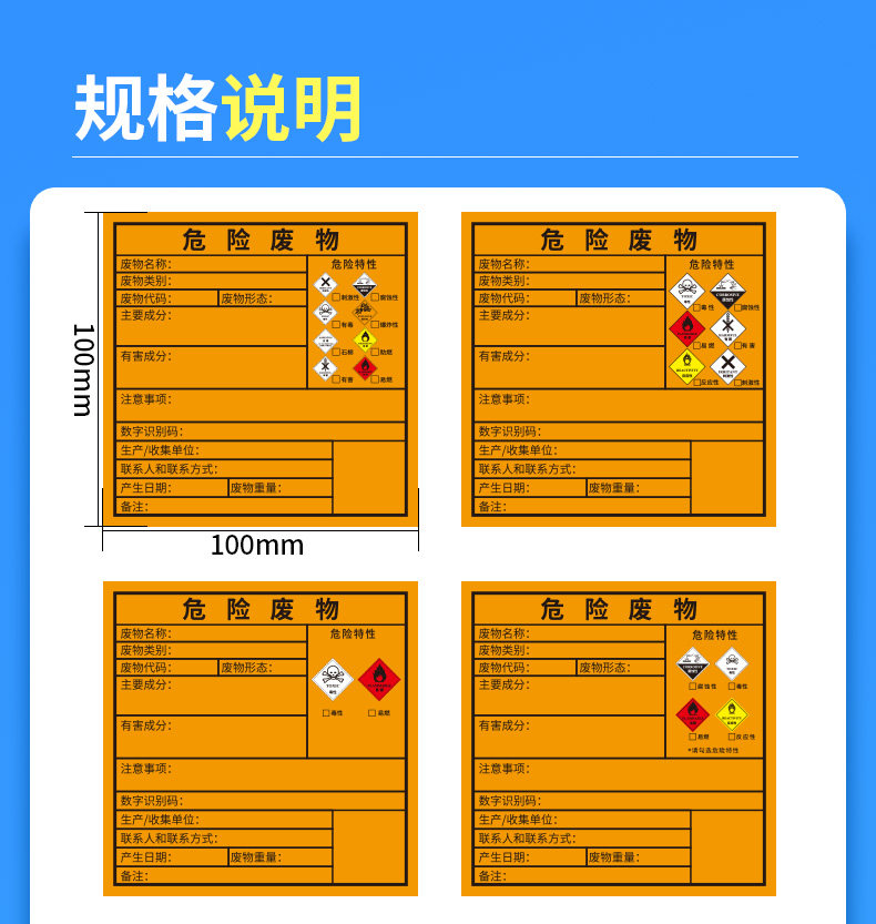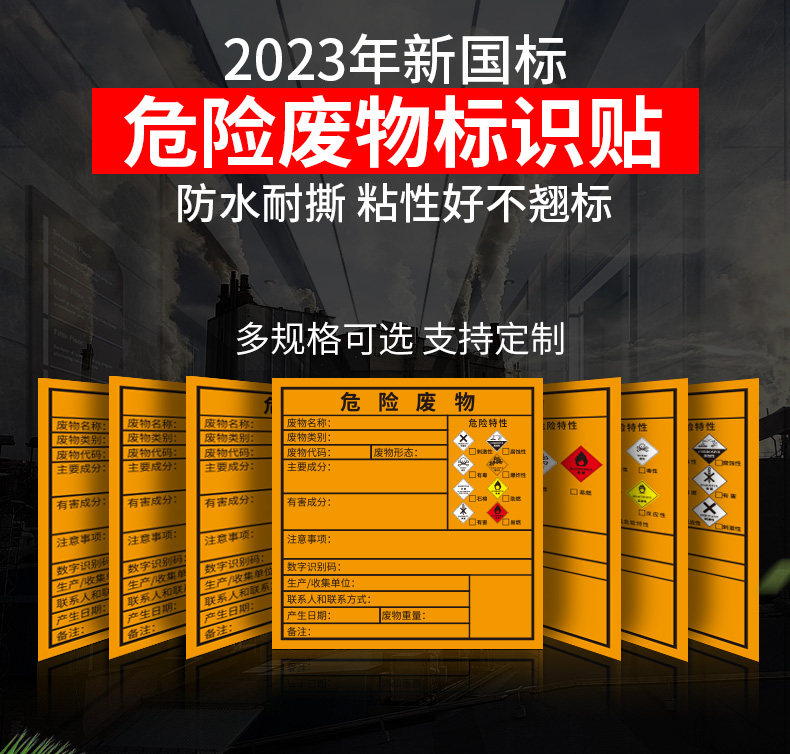 Thermal Synthetic Label Paper Waterproof 2023 New Version National Standard Hazardous Waste Identification Label Hazardous Waste Label Storage Site Environmental Protection Adhesive Sticker Toxic Waste Oil Hazardous Waste Room Barrel Safety Sign