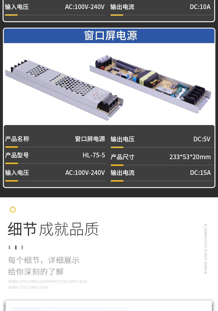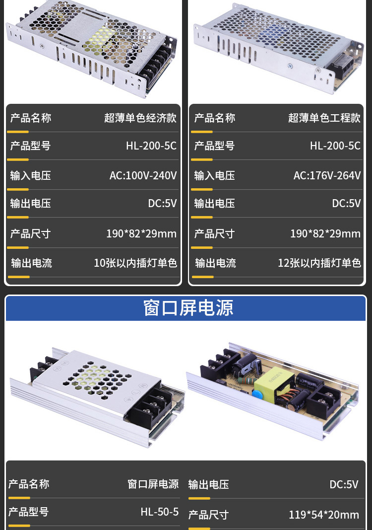 5v10a20a50w100w ultra-thin strip screen window screen advertising machine moving word led display power transformer