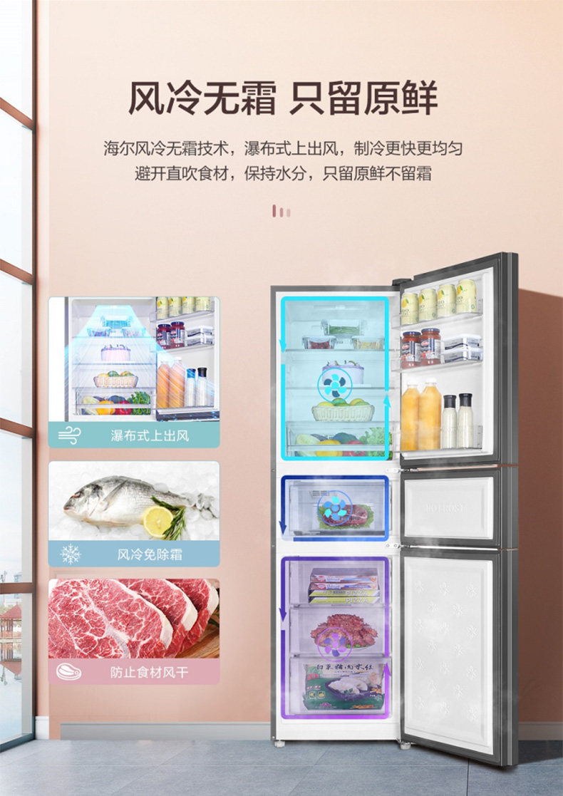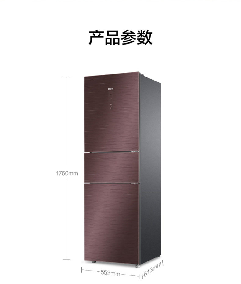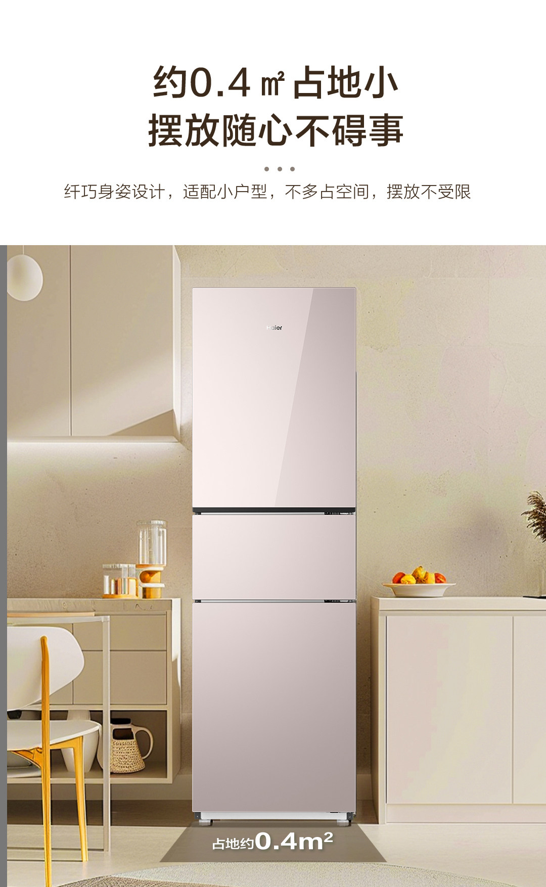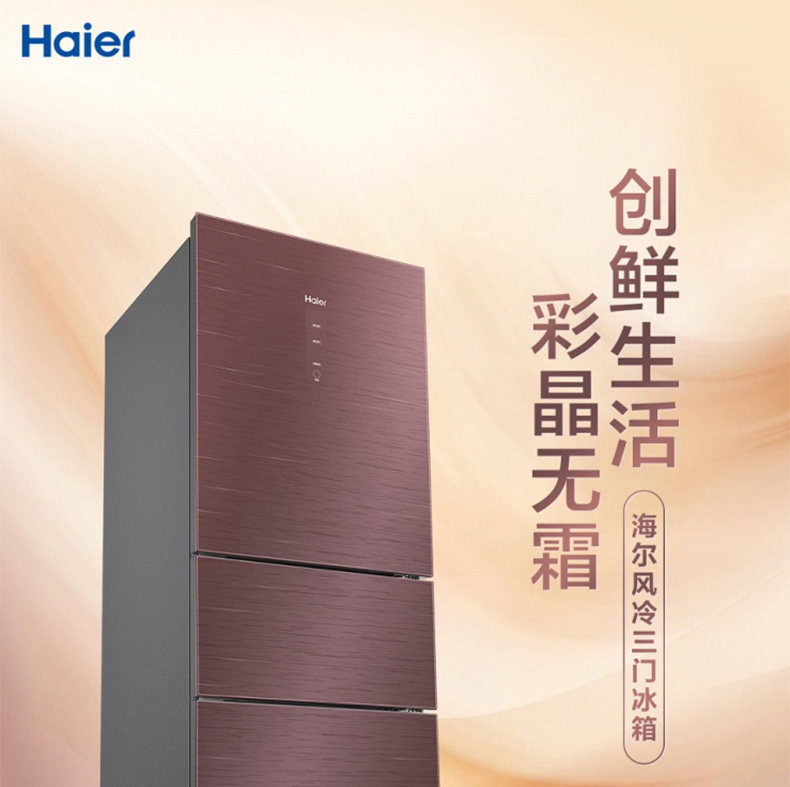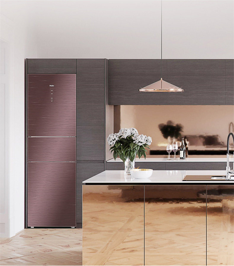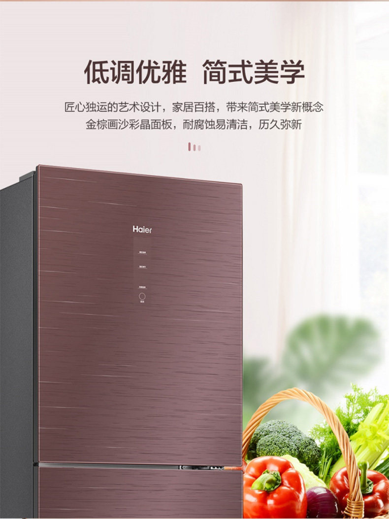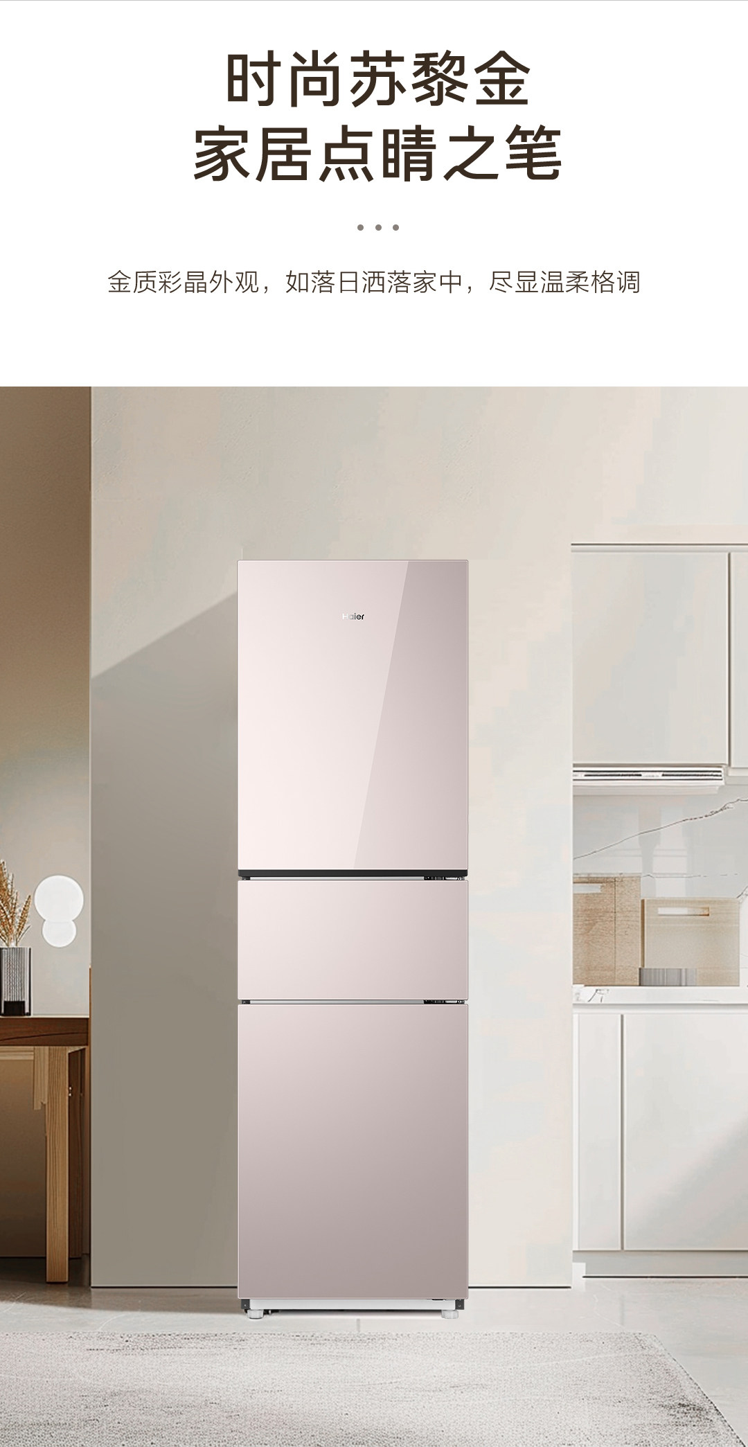 Haier 220-Liter Three-Door Frost-Free Refrigerator with Swiss Gold Crystal Glass Panel Bcd-220Wghc3E9Y1