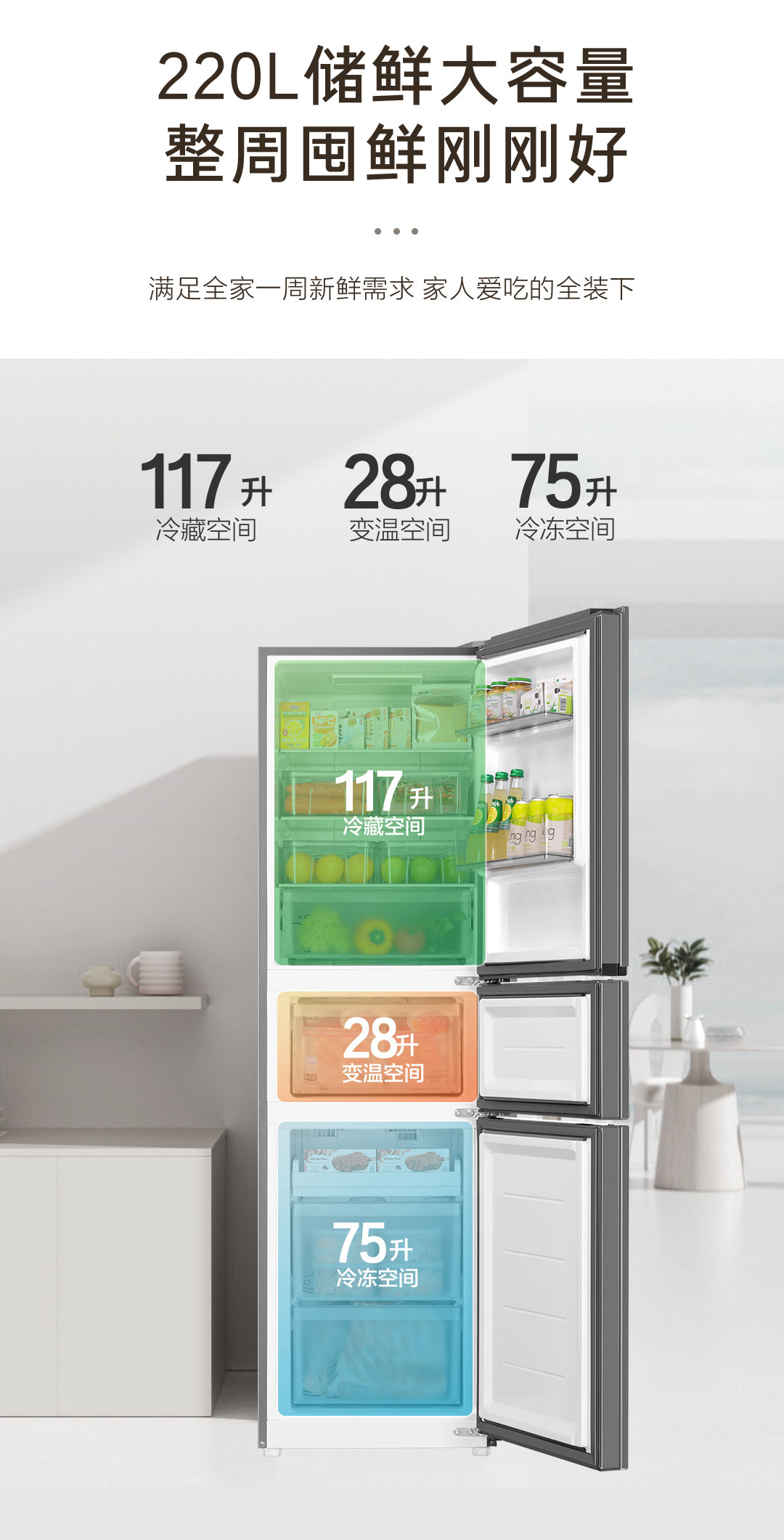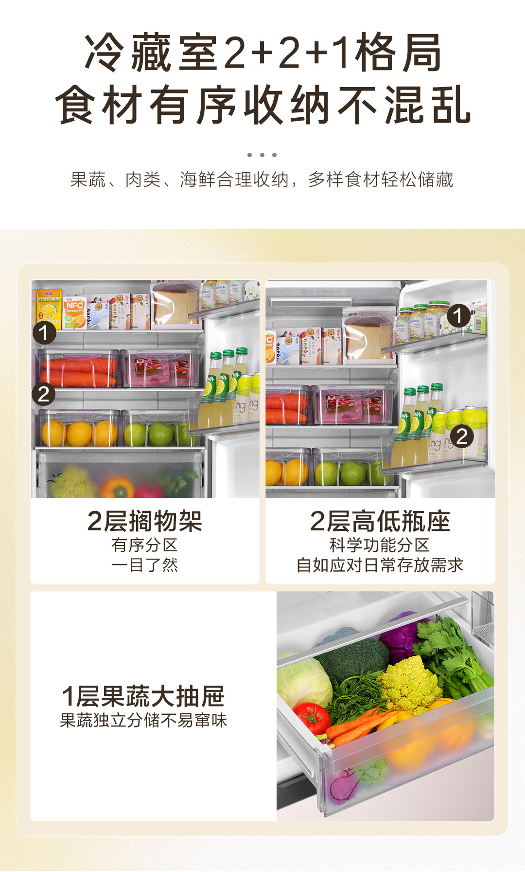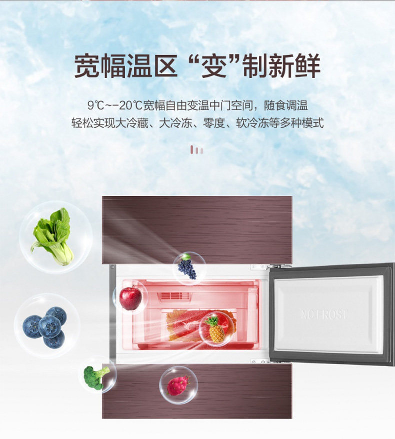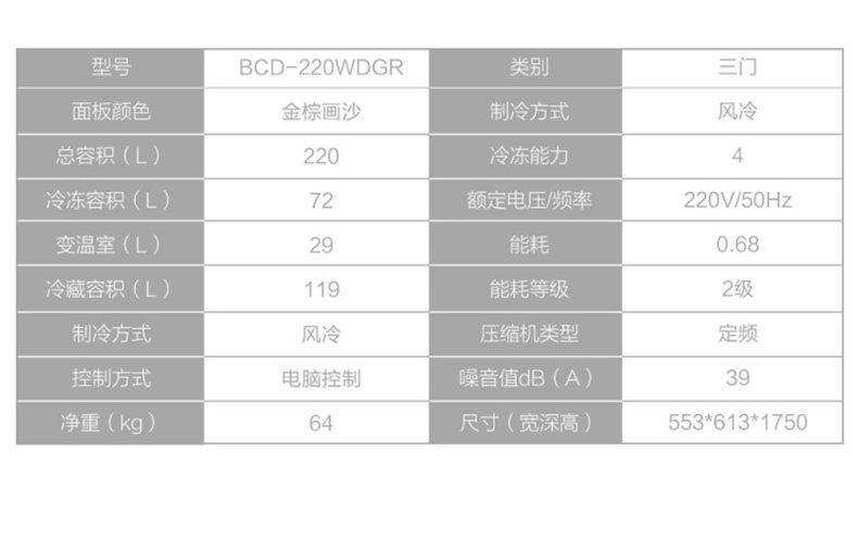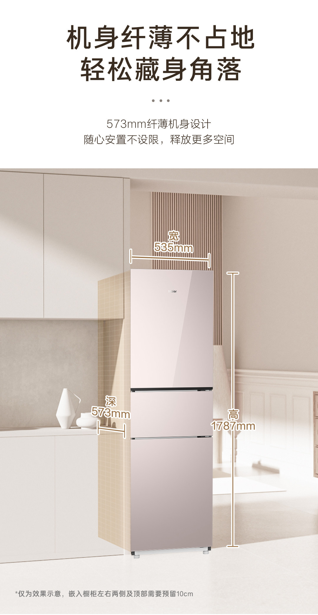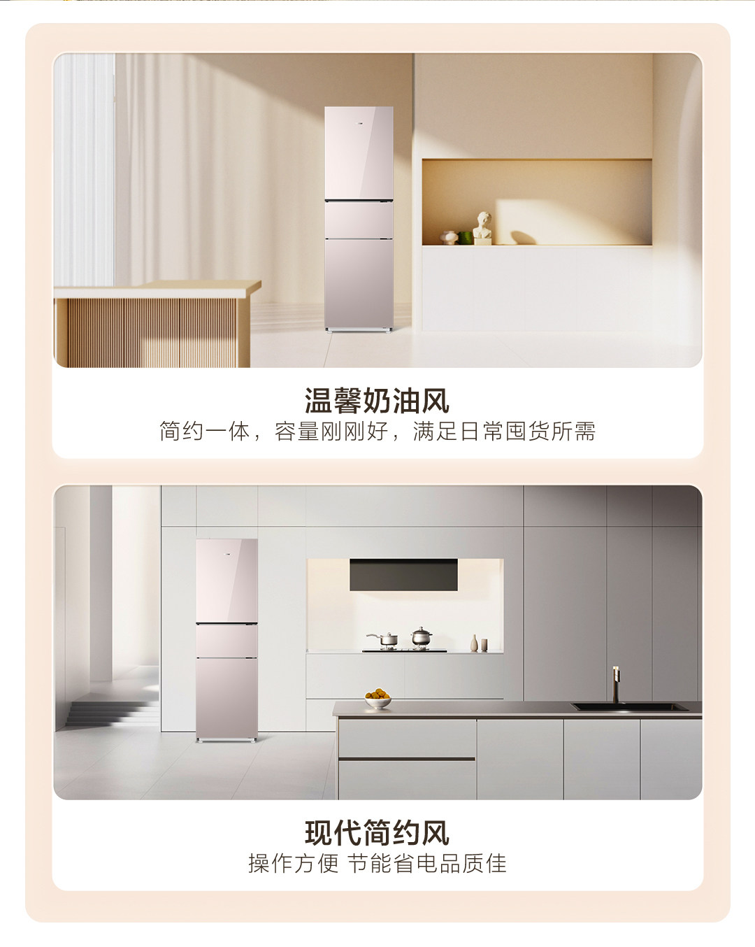 Haier 220-Liter Three-Door Frost-Free Refrigerator with Swiss Gold Crystal Glass Panel Bcd-220Wghc3E9Y1