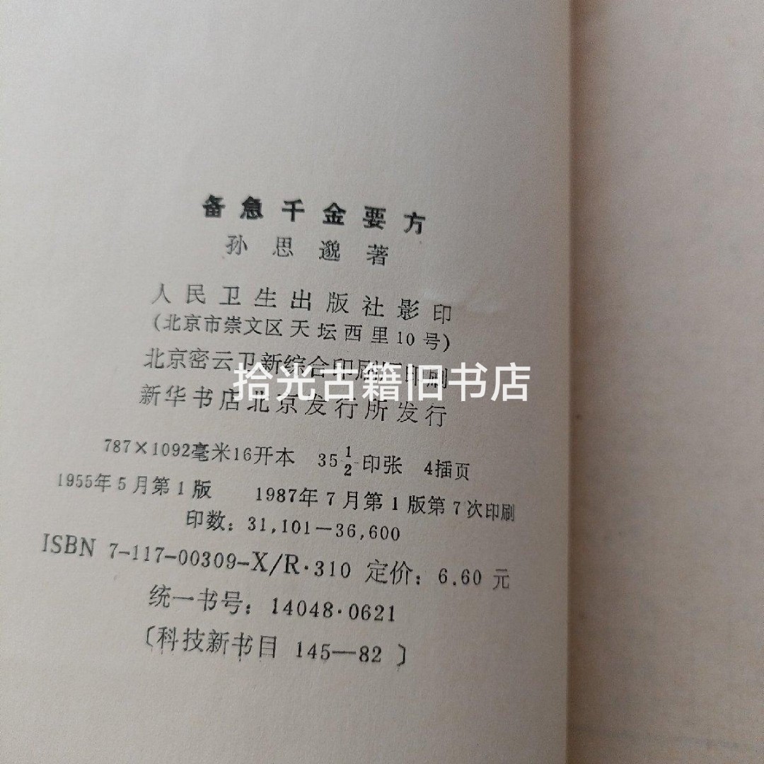 Authentic Original Edition: Essential Prescriptions for Emergency Situations by Sun Si-Miao, 1955 People's Health Publishing House, Traditional Chinese Medicine Old Book