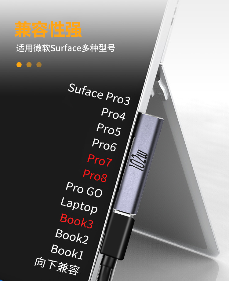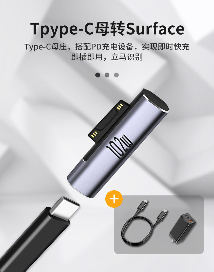 Type-C to Surface Charging Cable Adapter Usb-C Magnetic Pd Fast Charging Power Cable Converter Suitable for Microsoft Laptop Surface 3 Go Notebook Pro7 Tablet Book2