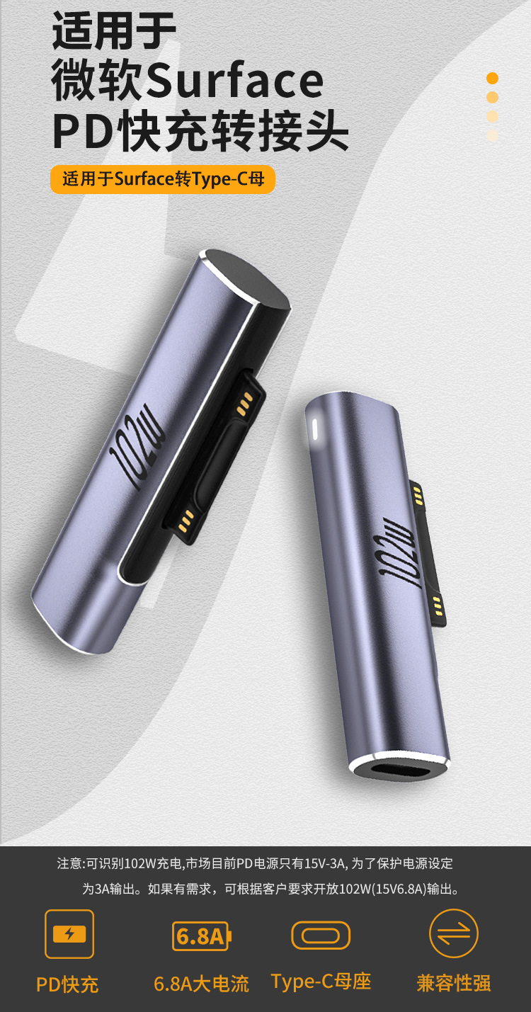 Color Classification [Black 65W]Type-C Female Port to Surface ● Magnetic Interface,[Silver 102W]Type-C Female Port to Surface ● Magnetic Interface
