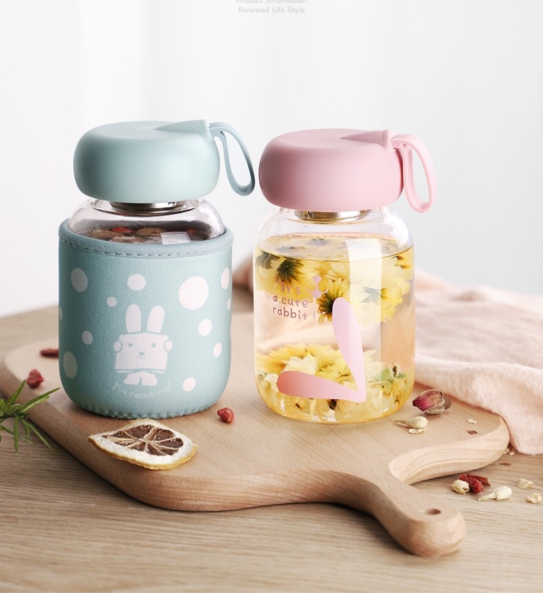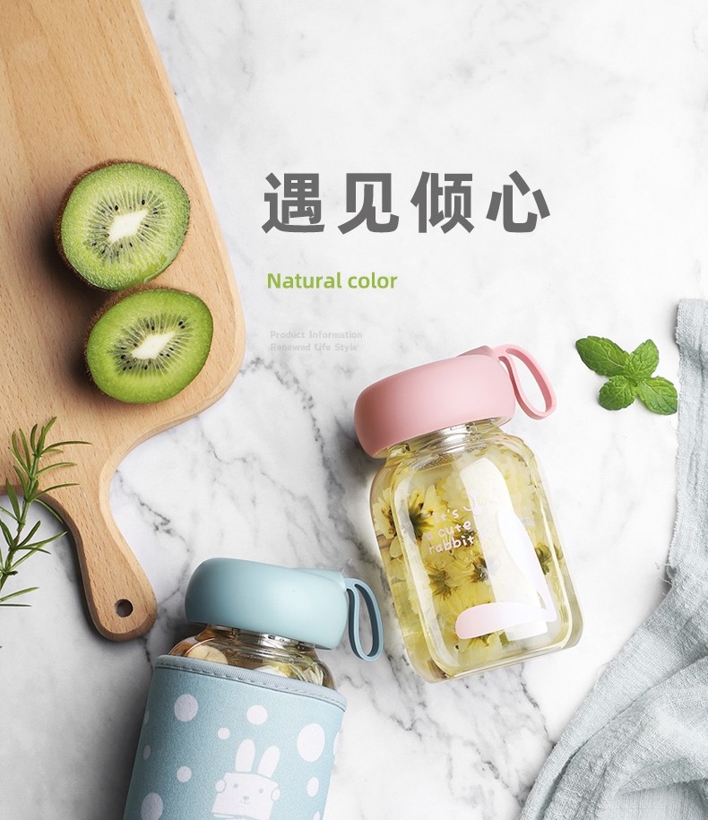 German Imported Mini Glass Cup, Portable, High-Value Summer Water Bottle, Cute for Girls, Small and Trendy for Students, Chubby Style