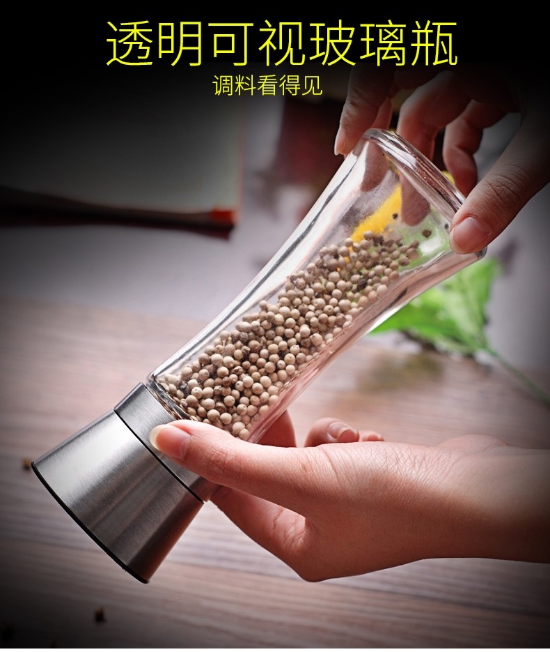 German Imported Pepper Grinder with Carbon Steel Core, Stainless Steel Household Pepper Grinder for Black and White Pepper Powder, Seasoning Bottle