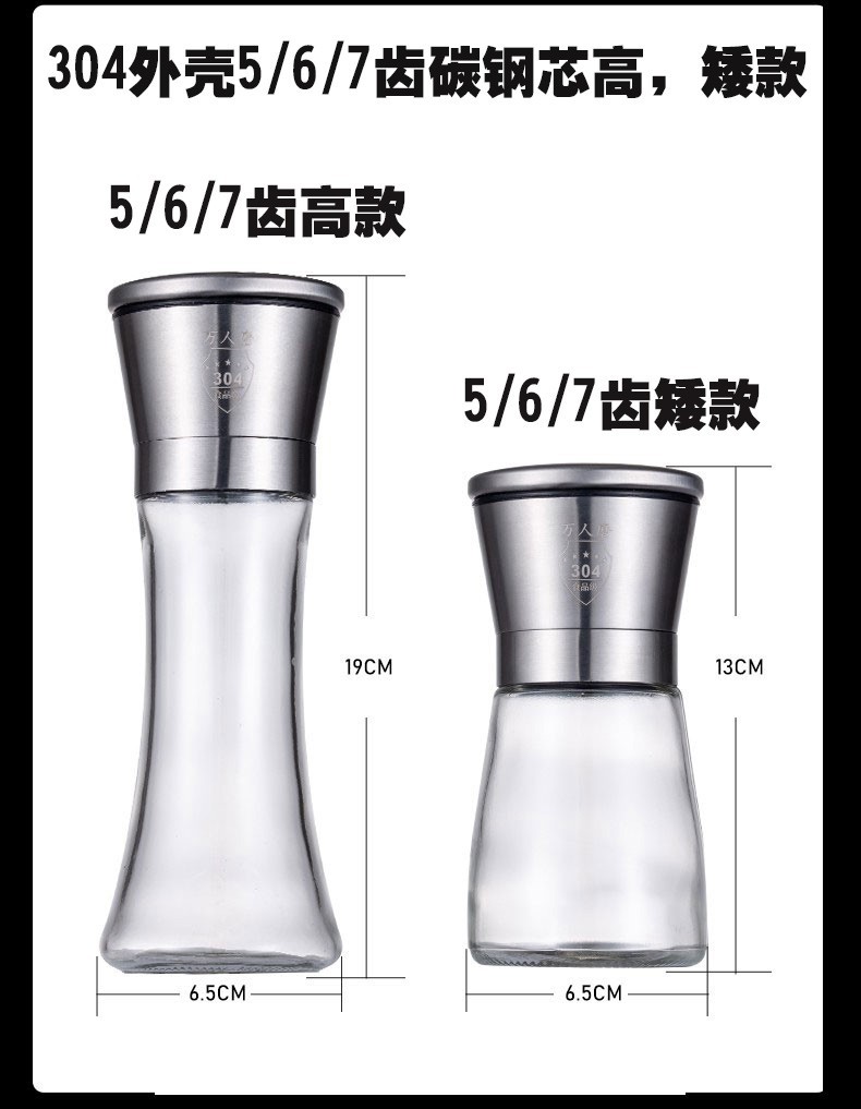 Color Classification [Ceramic Core]Short 1 Piece of Ground Salt,[Ceramic Core]High Style 1 Ground Salt,[Ceramic Core]Low Profile, 2-Piece Salt Grinder Set,[Ceramic Core]High Style 2 Ground Salt,[5-Tooth Carbon Steel Core]1 Short Pepper and Sichuan Peppercorns,[5-Tooth Carbon Steel Core]Low-Cut, 2-Piece Set with Ground Peppercorns and Sichuan Peppercorns,[5-Tooth Carbon Steel Core + Ceramic Core]Short Version 2 Ground Peppercorns + Ground Salt,[5-Tooth Carbon Steel Core]High Style 1 Ground Pepper and Sichuan Pepper,[5-Tooth Carbon Steel Core]High Style 2 Ground Peppercorns and Sichuan Peppercorns,[5-Tooth Carbon Steel Core + Ceramic Core]High Style 2 Ground Peppercorns + Ground Salt,[5-Tooth Carbon Steel Core]1 Short Model + 1 Tall Model Ground Pepper and Sichuan Peppercorns,[7-Tooth Carbon Steel Core]1 Short Pepper and Sichuan Peppercorns,[7-Tooth Carbon Steel Core]Low-Cut, 2-Piece Set with Ground Peppercorns and Sichuan Peppercorns,[7-Tooth Carbon Steel Core + Ceramic Core]Low-Profile Grinder Set (2 Pieces): Pepper & Salt,[7-Tooth Carbon Steel Core]High Style 1 Ground Pepper and Sichuan Pepper,[7-Tooth Carbon Steel Core]High Style 2 Ground Peppercorns and Sichuan Peppercorns,[7-Tooth Carbon Steel Core + Ceramic Core]High Style 2 Ground Pepper + Ground Salt,[7-Tooth Carbon Steel Core]1 Short Model + 1 Tall Model Ground Pepper and Sichuan Peppercorns,[6-Tooth Carbon Steel Core]Low Profile, 1-Piece Pepper Grinder,[6-Tooth Carbon Steel Core]High Style 1 Ground Pepper,[5-Tooth Carbon Steel Core]2 Short Models + Bracket to Grind Pepper and Sichuan Pepper,[5-Tooth Carbon Steel Core]2 Tall Models + Bracket to Grind Pepper and Sichuan Pepper,[5-Tooth Carbon Steel Core + Ceramic Core]2 Short Models + Bracket for Grinding Peppercorns + Grinding Salt,[5-Tooth Carbon Steel Core + Ceramic Core]2 Tall Models + Bracket for Grinding Peppercorns + Grinding Salt,[7-Tooth Carbon Steel Core]2 Short Models + Bracket to Grind Pepper and Sichuan Pepper,[7-Tooth Carbon Steel Core]2 Tall Models + Bracket to Grind Pepper and Sichuan Pepper,B[7-Tooth Carbon Steel Core + Ceramic Core]2 Short Models + Bracket for Grinding Pepper + Grinding Salt,M[7-Tooth Carbon Steel Core + Ceramic Core]2 Tall Models + Bracket for Grinding Pepper + Grinding Salt