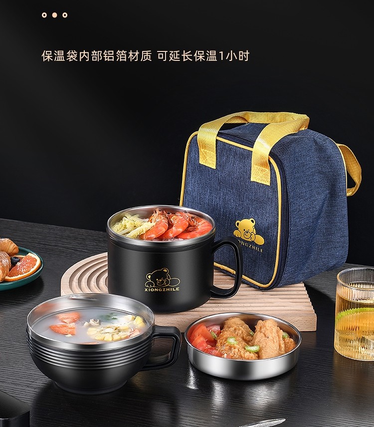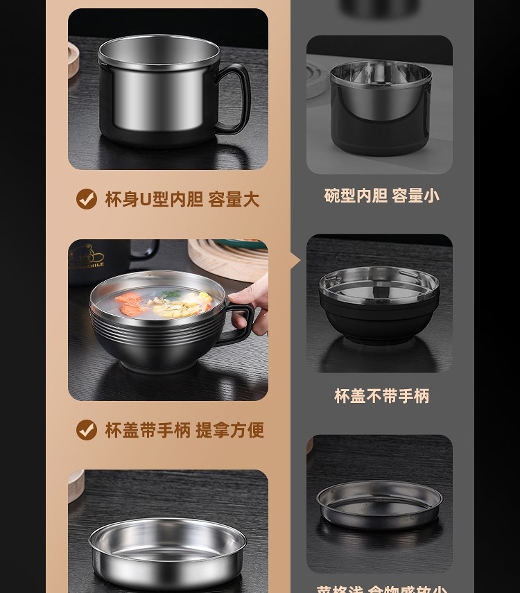 German Imported Thickened 304 Stainless Steel Insulated Lunch Box, Large Capacity Fast Food Cup for Adults, Student Dormitory Instant Noodle Bowl