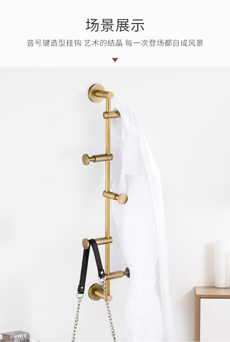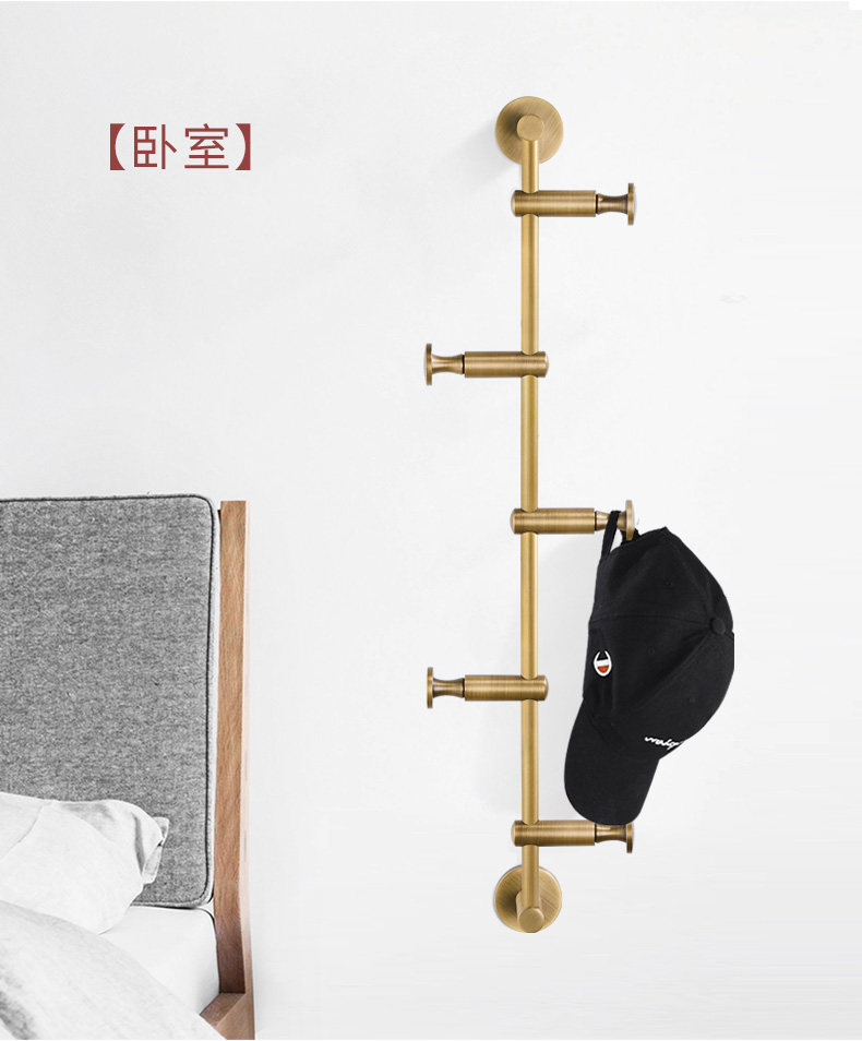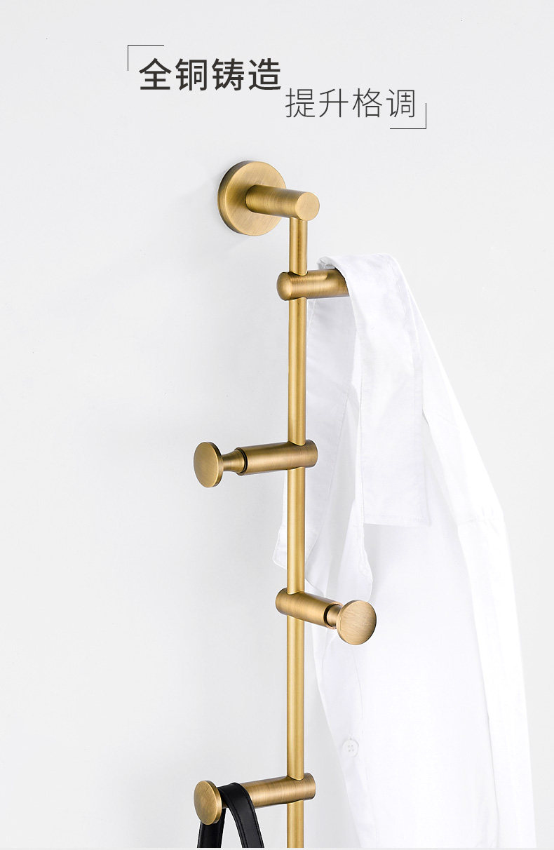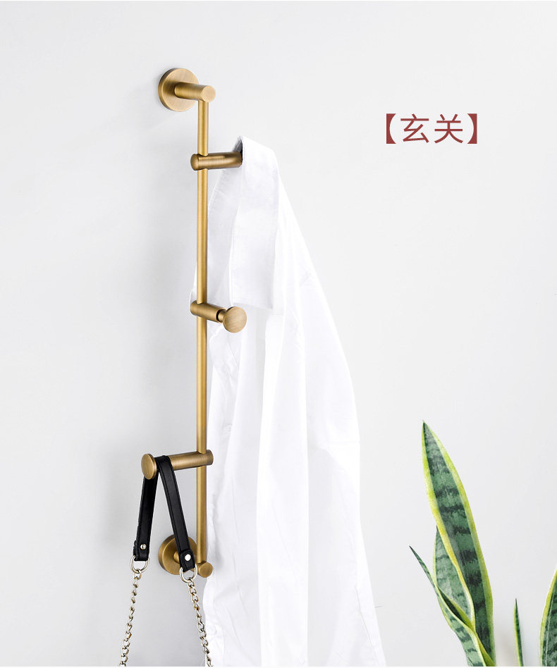 Light luxury all-copper clothes hanger, wall-mounted coat rack, personalized creative clothes hook, no punching, bedroom clothes hook