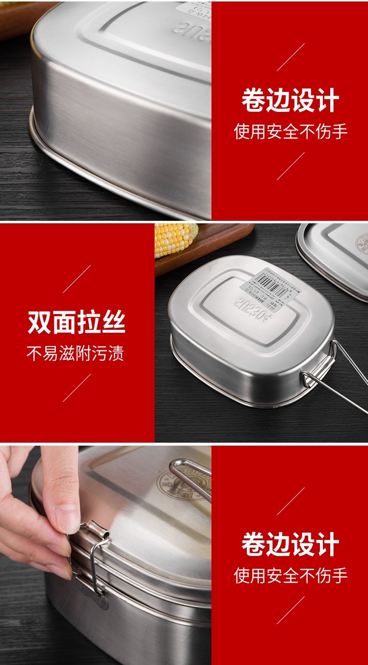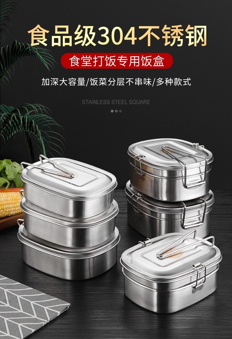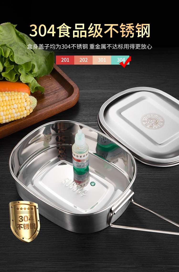 German Imported 304 Stainless Steel Lunch Box, Rectangular with Lid, for Elementary School Students, Children, and Adults, Divided Compartments, Canteen Steaming Lunch Box