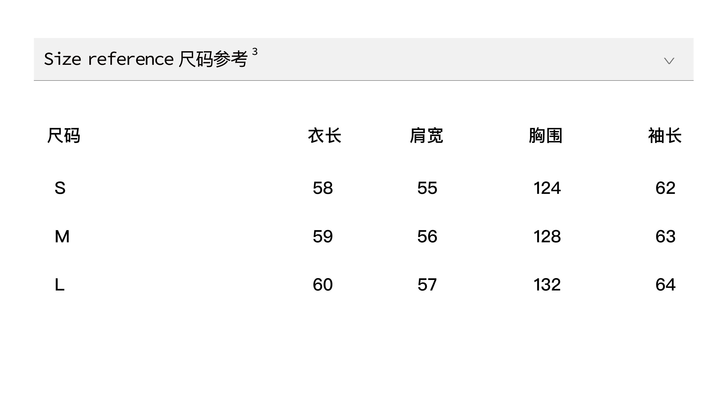 China (cm) 160-165/84-86 165-170 / 88-90 167-172 / 92-96 168-173 / 98-102 170-176 / 106-110