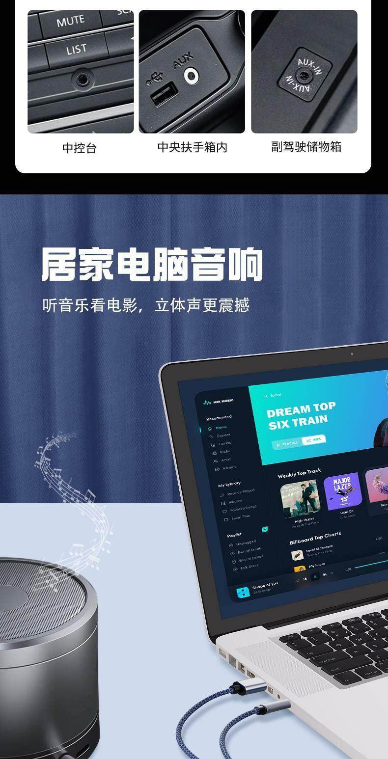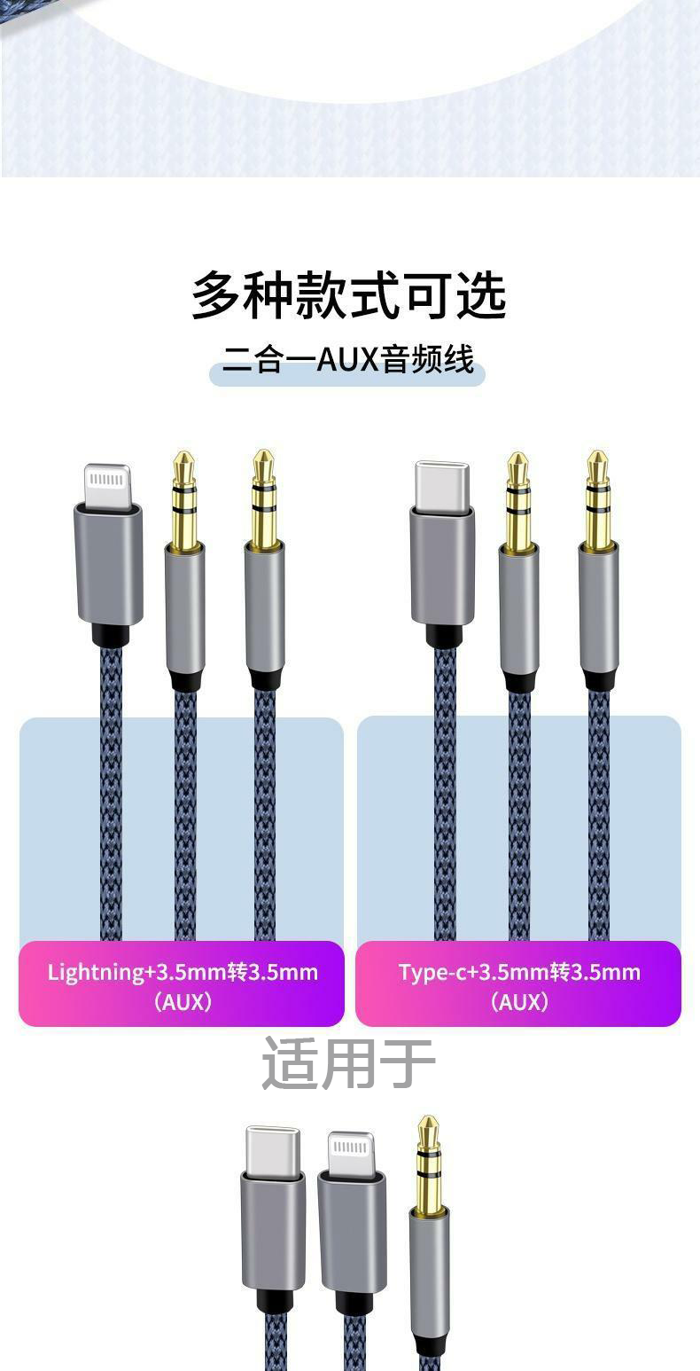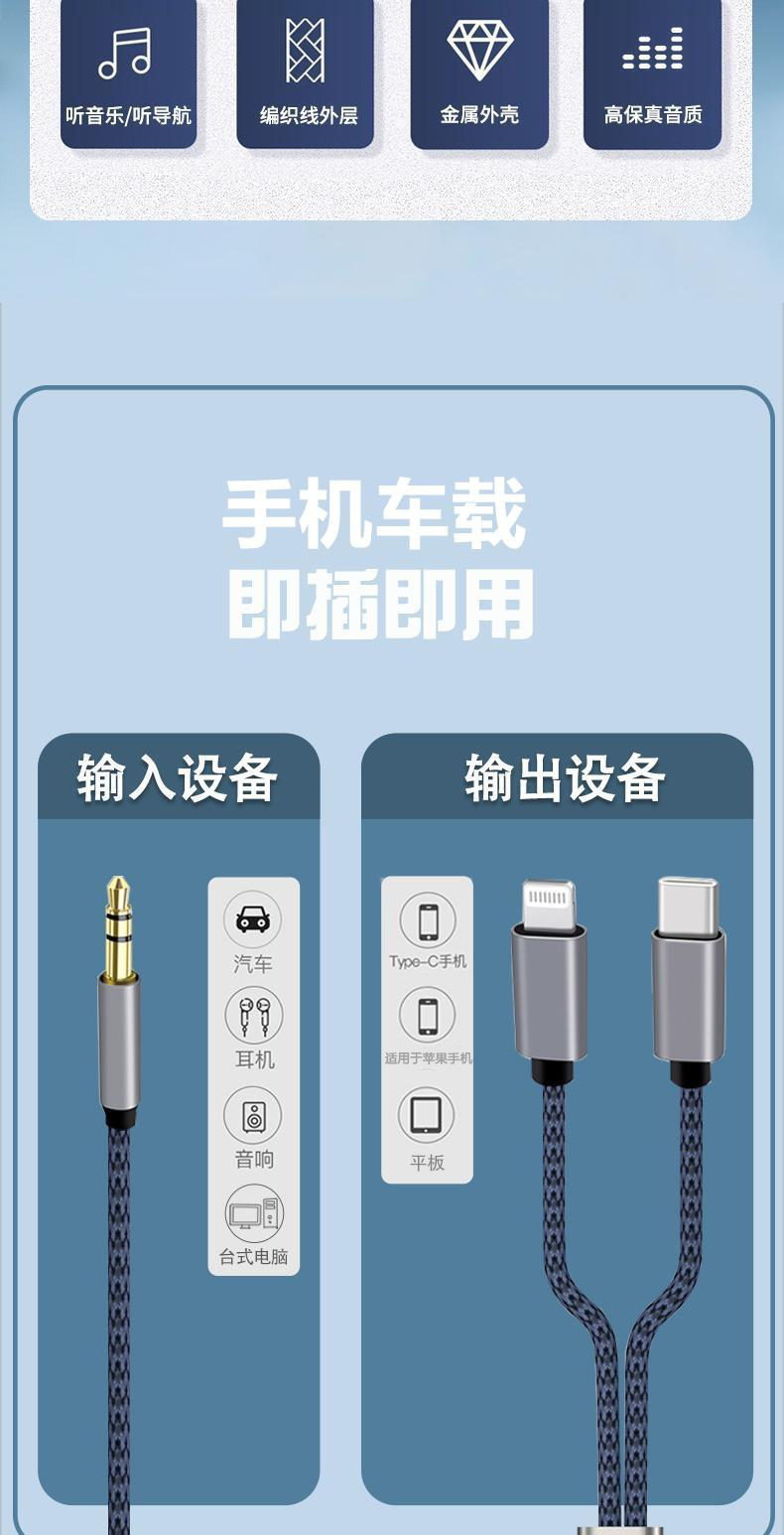 Typec to 3.5mm car aux audio cable is suitable for Apple, Huawei, Xiaomi and Android mobile phone connection audio headset adapter car conversion plug speaker male two-in-one
