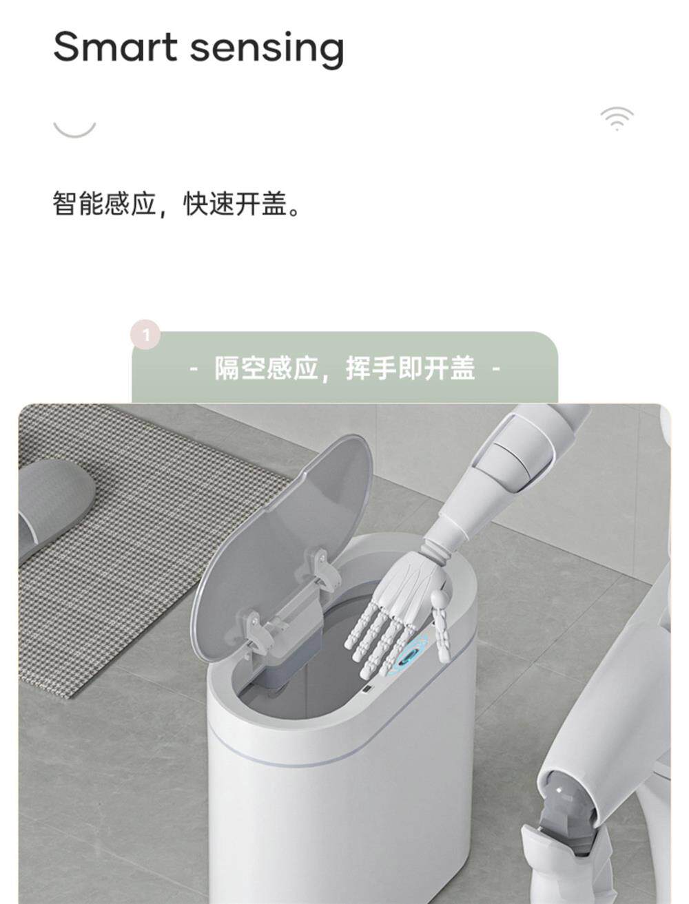 Italy's Aisino Smart Sensor Trash Can for Home Use, 2023 New Model, Automatic Toilet Gap Trash Can with Lid