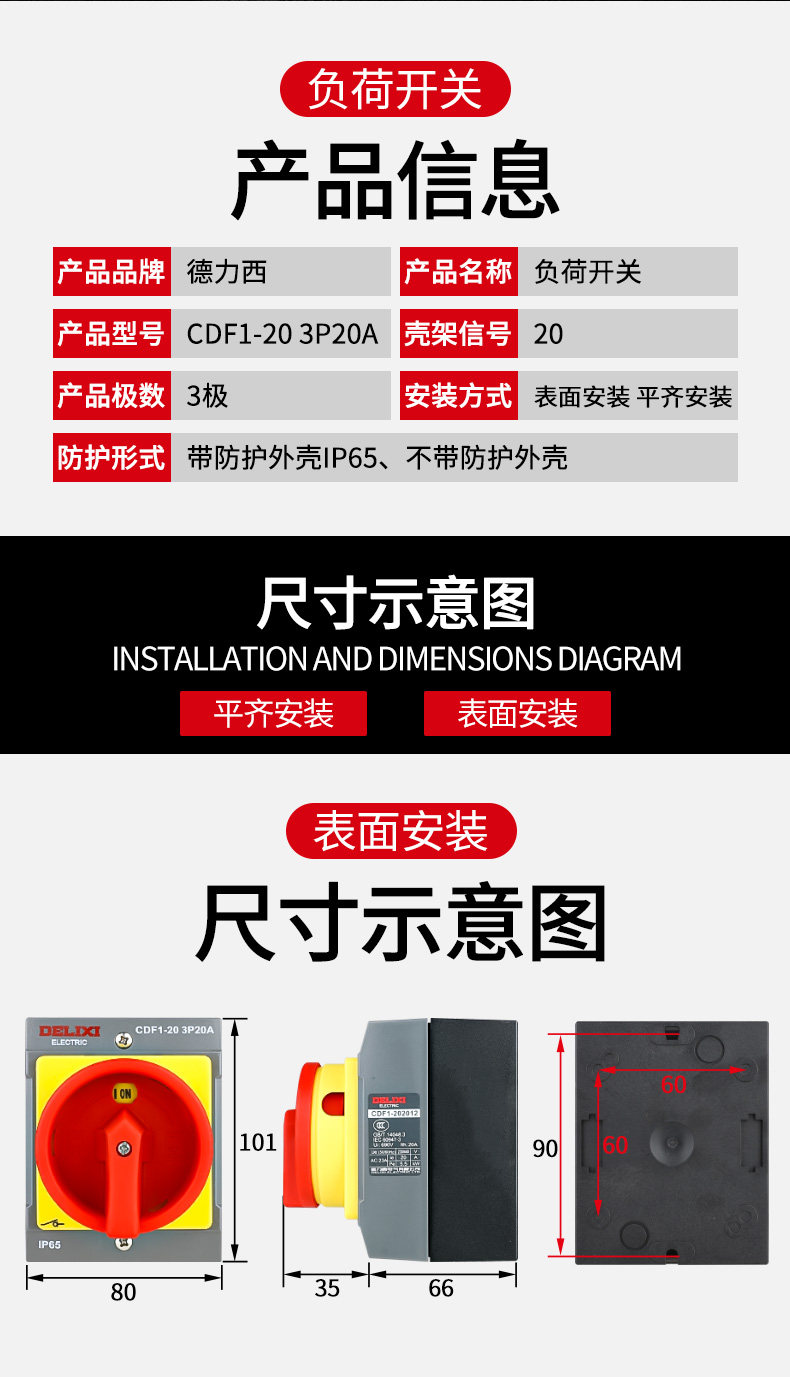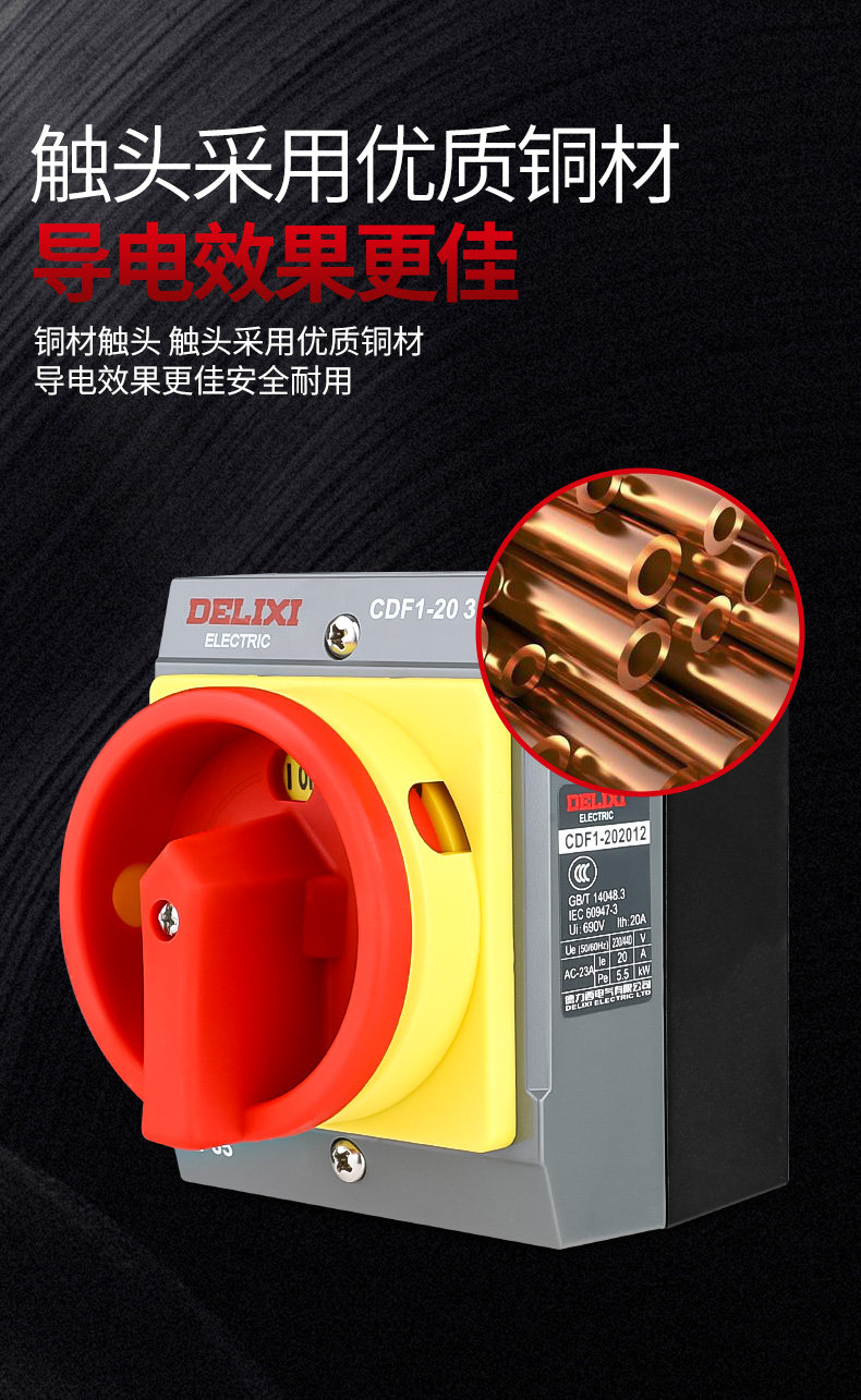 Delixi Negative Switch Cdf1-20A Load Breaking Negative Load 3P Isolation Switch Surface Installation Parallel Installation