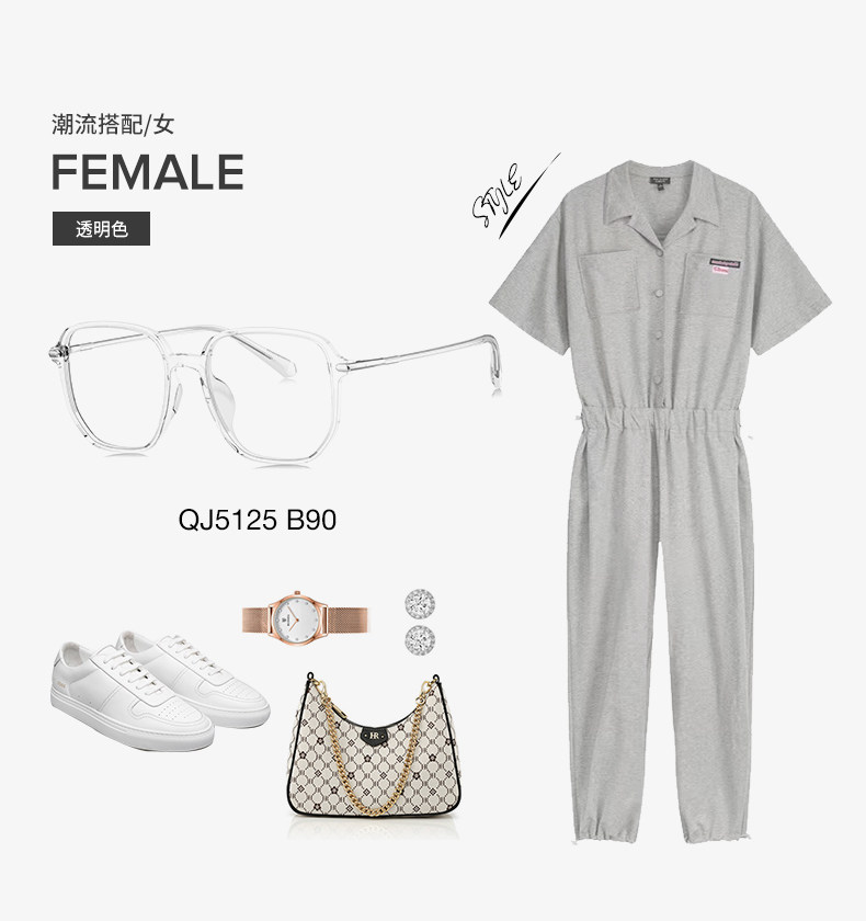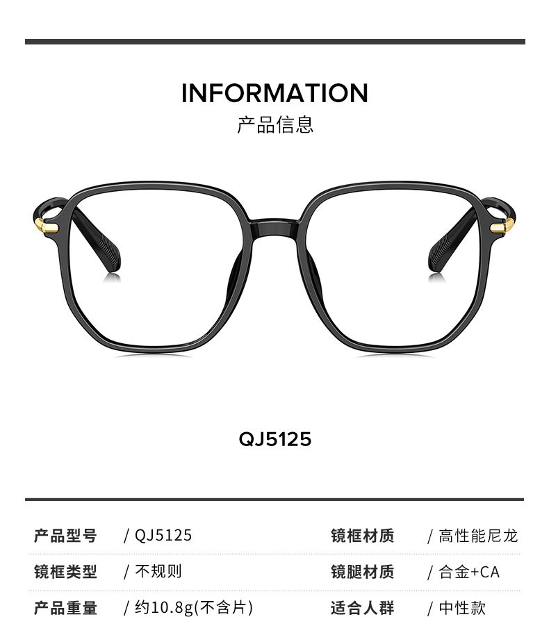 QINA's new anti-blue light and anti-radiation transparent glasses Zhao Lusi's same style myopia glasses for men and women QJ5125