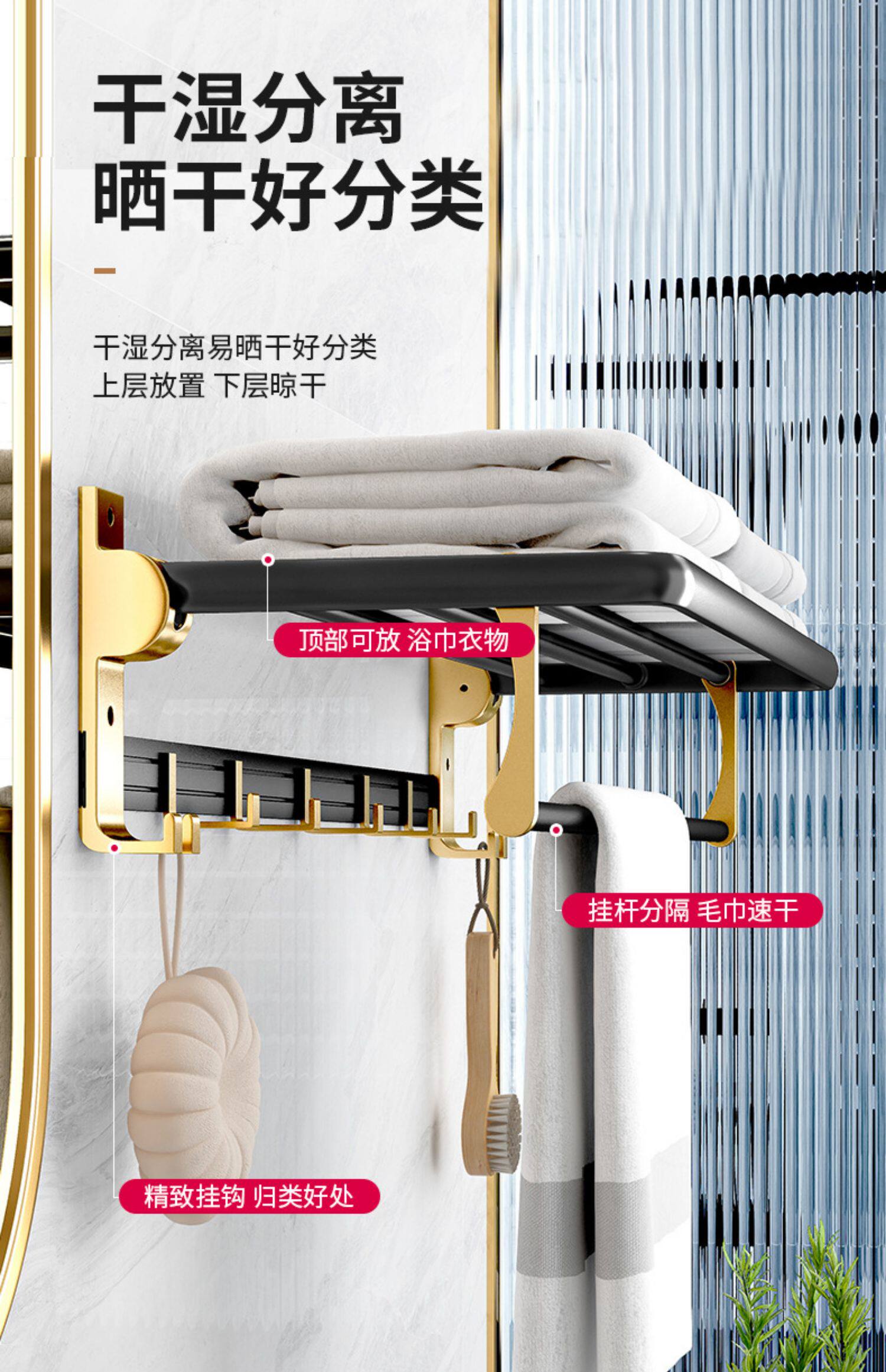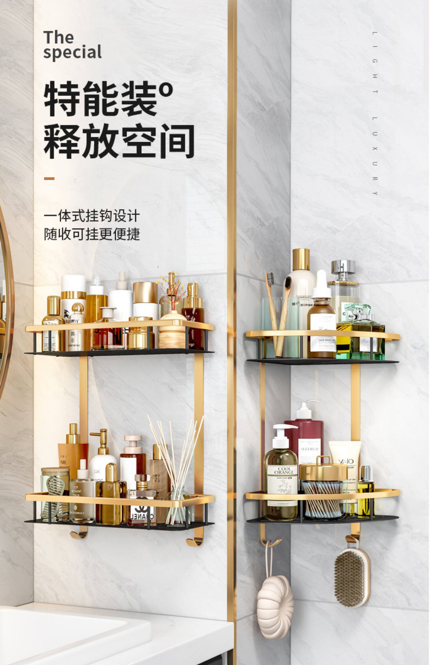 German Punch-Free Towel Rack, Light Luxury High-End Bathroom Storage Rack, Multifunctional Bathroom Thickened Wall-Mounted Storage Rack