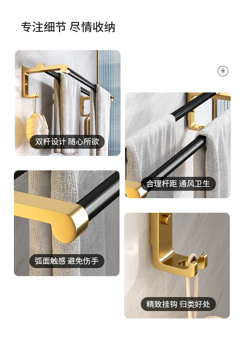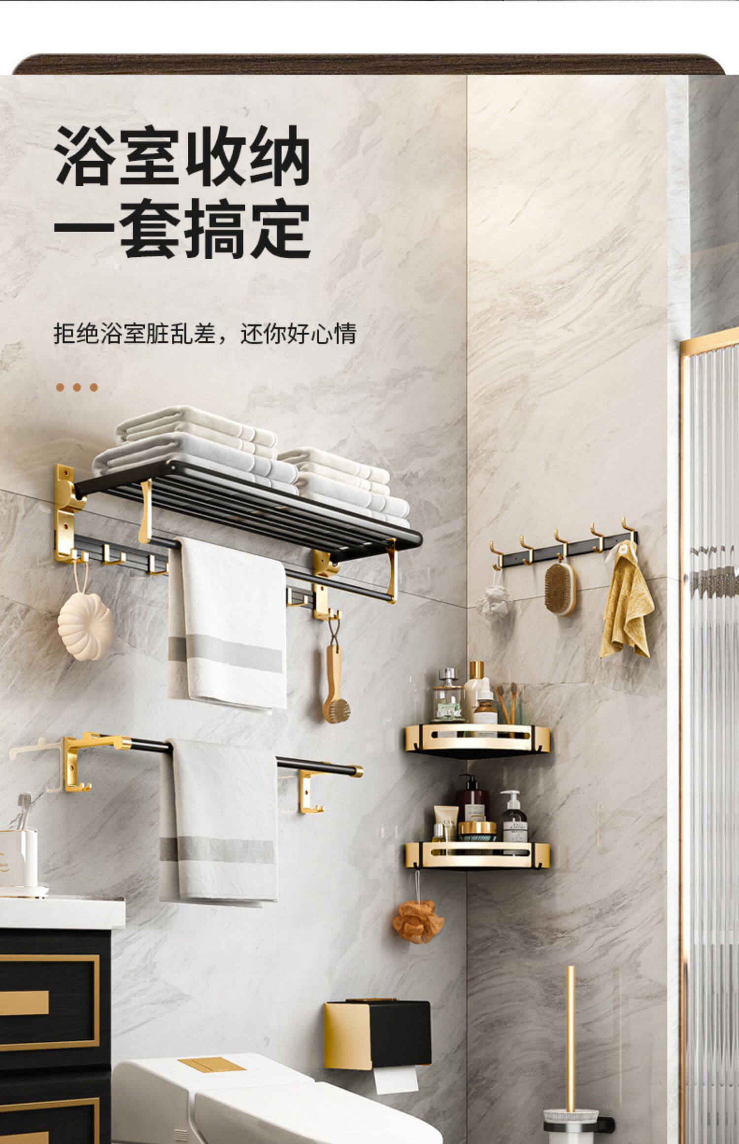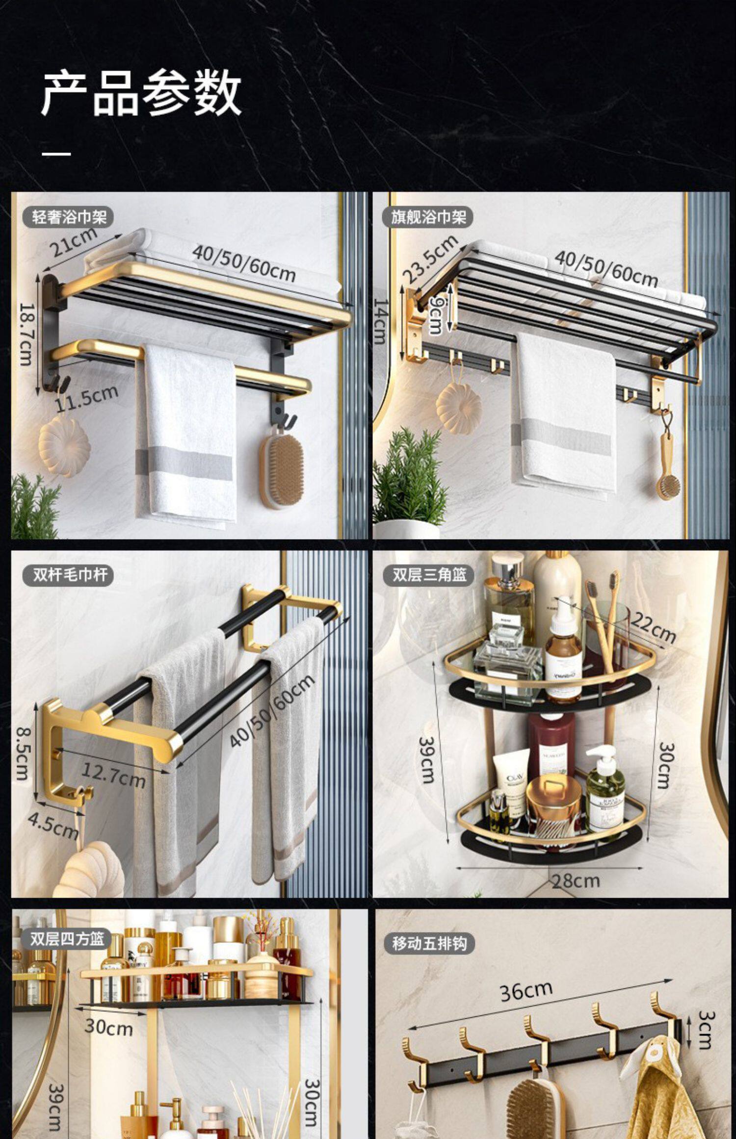 Color Classification Luxury Black Gold Double Rod 40cm (Dual-Purpose),Luxury Black Gold Double Rod 60cm (Dual-Purpose),Light Luxury 60cm Towel Rack (Dual Use),Luxurious Black Gold Bath Towel Rack 60cm (Dual Use),Light Luxury 60cm Bath Towel Rack (Dual Use),Luxurious Black Gold Single-Layer Triangular Basket (Dual Use),Luxurious Black Gold Double-Layer Triangular Basket (Dual Use),Luxurious Black Gold Double-Layer Square Aluminum Plate (No Need to Punch Holes),Light Luxury Black Gold Double-Layer Triangular Aluminum Plate (No Need to Punch Holes),Light Luxury Black Gold Double-Layer Square Aluminum Plate (No Need to Punch Holes),Luxury Black Gold Hook Rack - 5 Hooks (Dual-Purpose),Luxurious Black Gold 8025 Square Tissue Box (Dual Use),Luxury Black Gold Ceramic Toilet Brush (Punch-Free Installation),A1 Flagship Three-Piece Set,A2 Flagship Three-Piece Set,A3 Flagship Three-Piece Set,B1 Flagship Four-Piece Set,B2 Flagship Four-Piece Set,C1 Flagship Five-Piece Set,D1 Flagship Six-Piece Set,Main Picture Nine-Piece Set