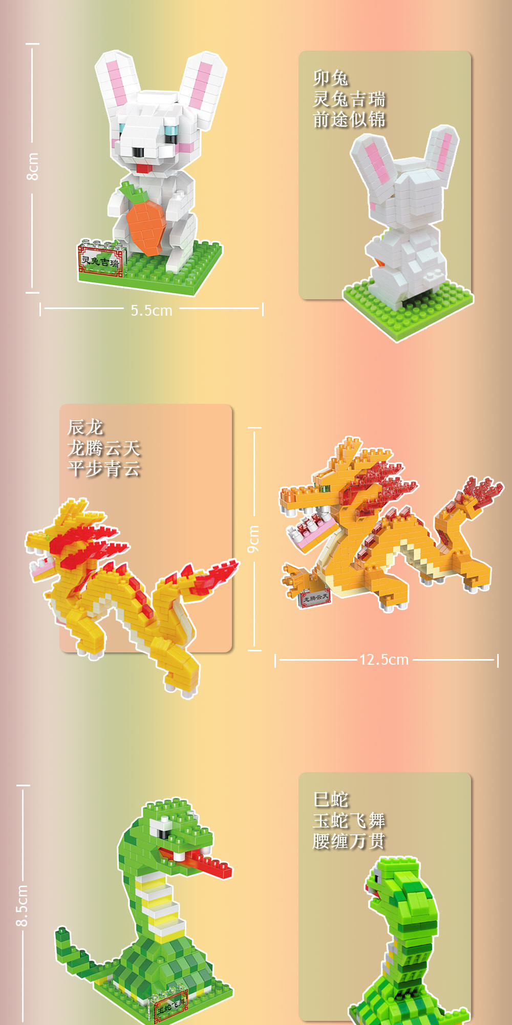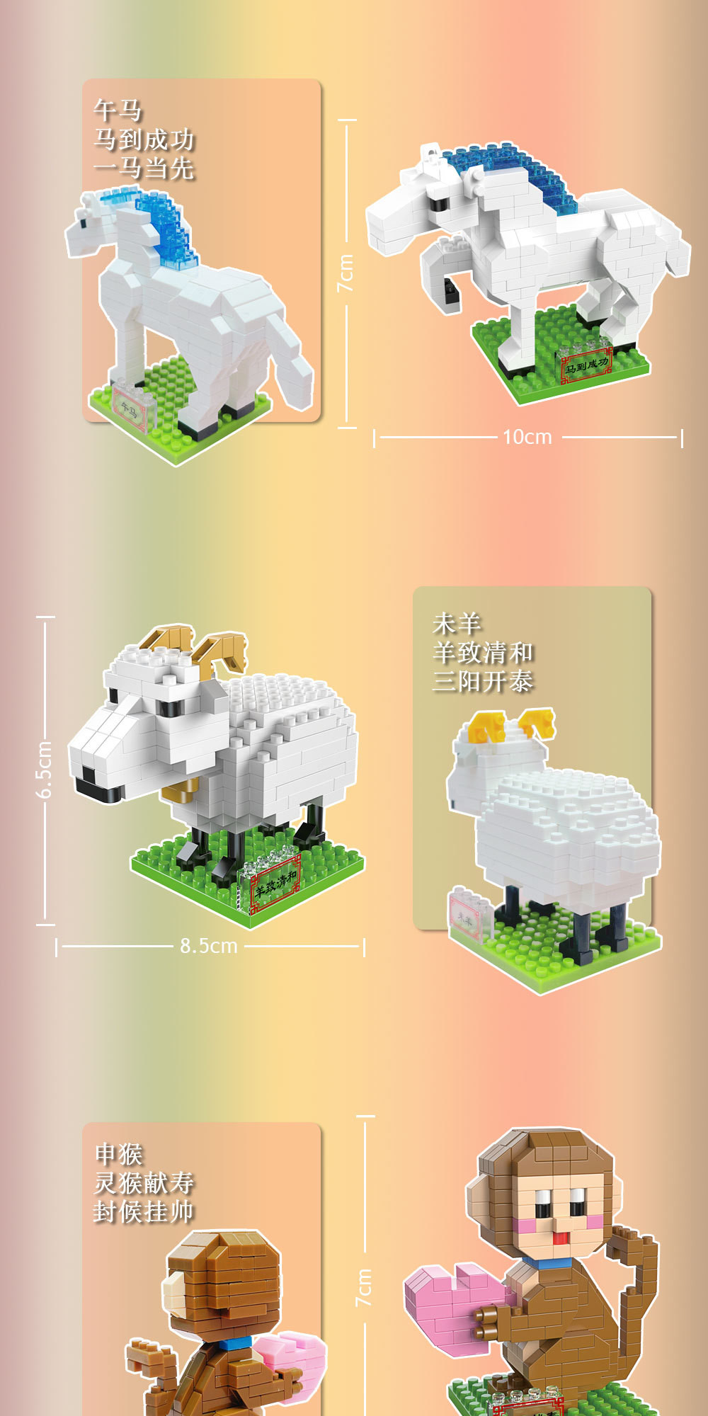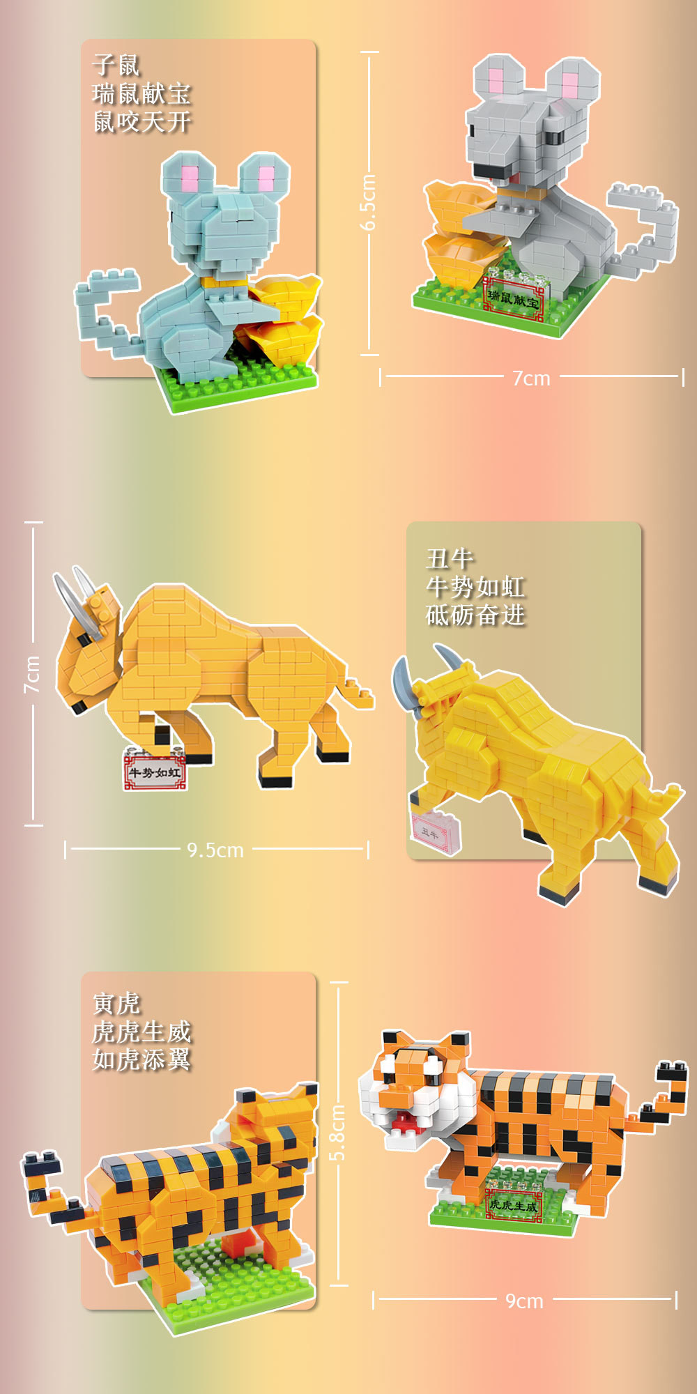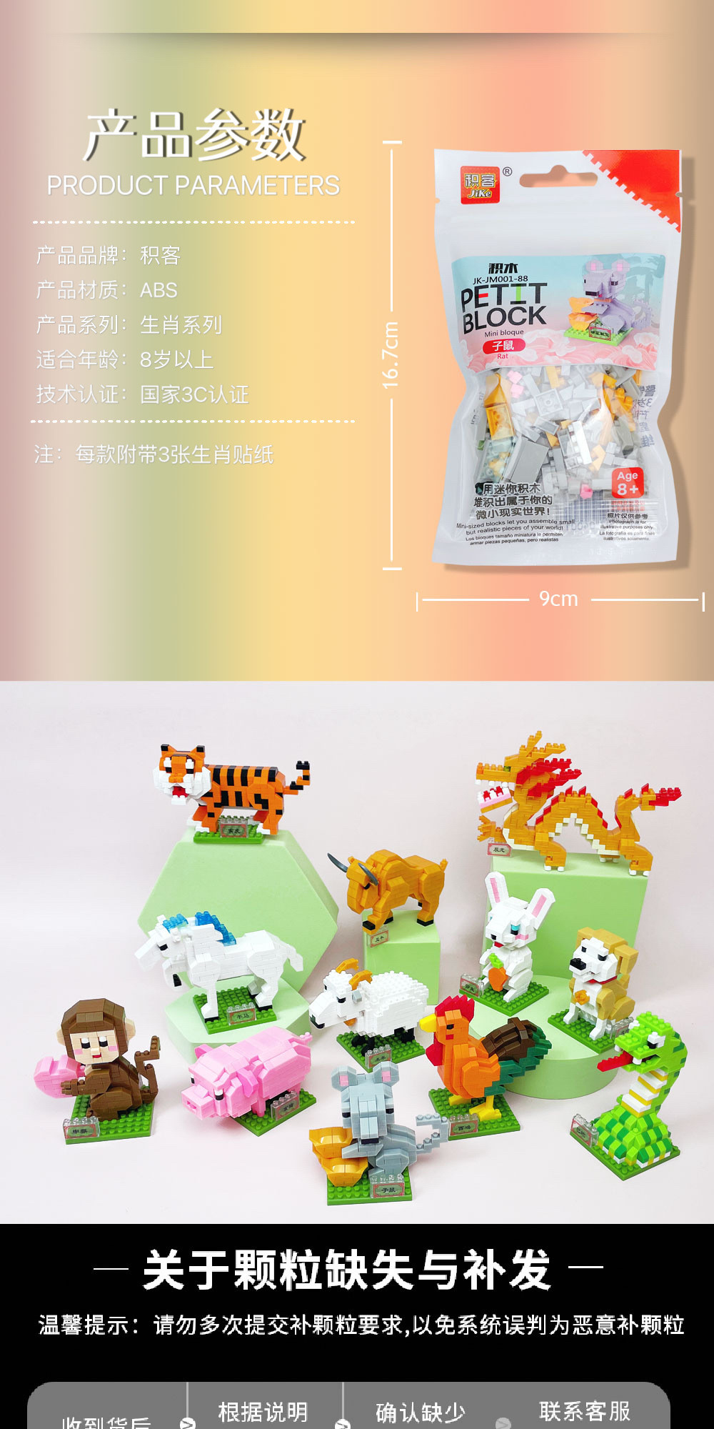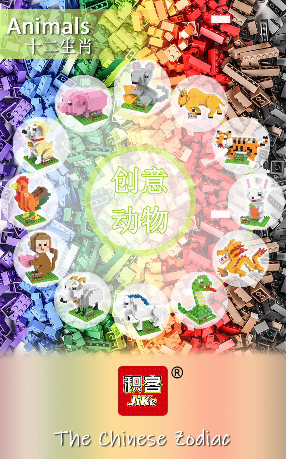 Jike Building Blocks Chinese Zodiac Educational 3D Cartoon Animal Building Blocks Children's Day Gift
