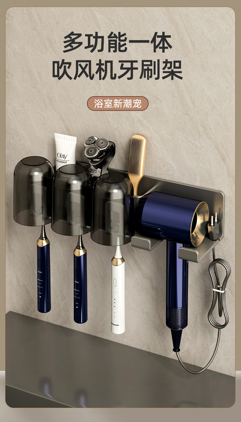 Electric Toothbrush Holder, No-Drill Bathroom Hair Dryer Stand, Wall-Mounted Toothbrushing and Rinsing Cup Holder, Dental Tool Rack
