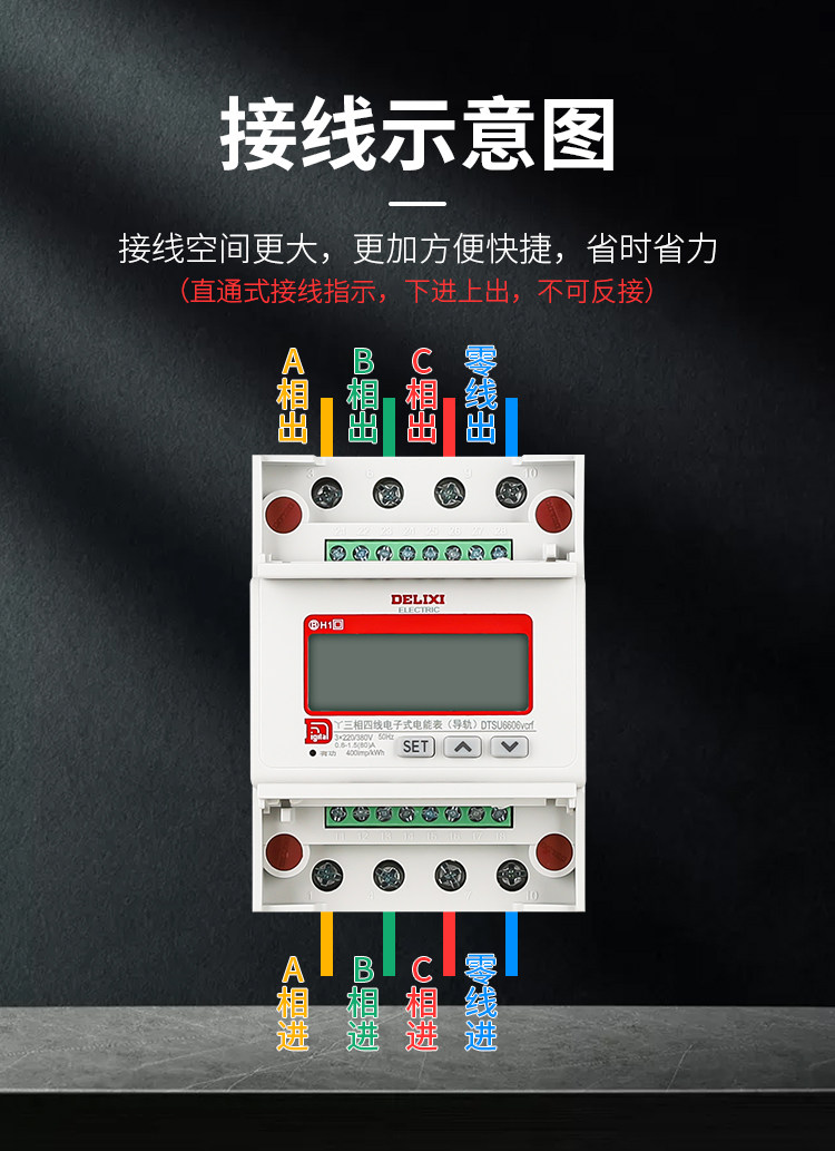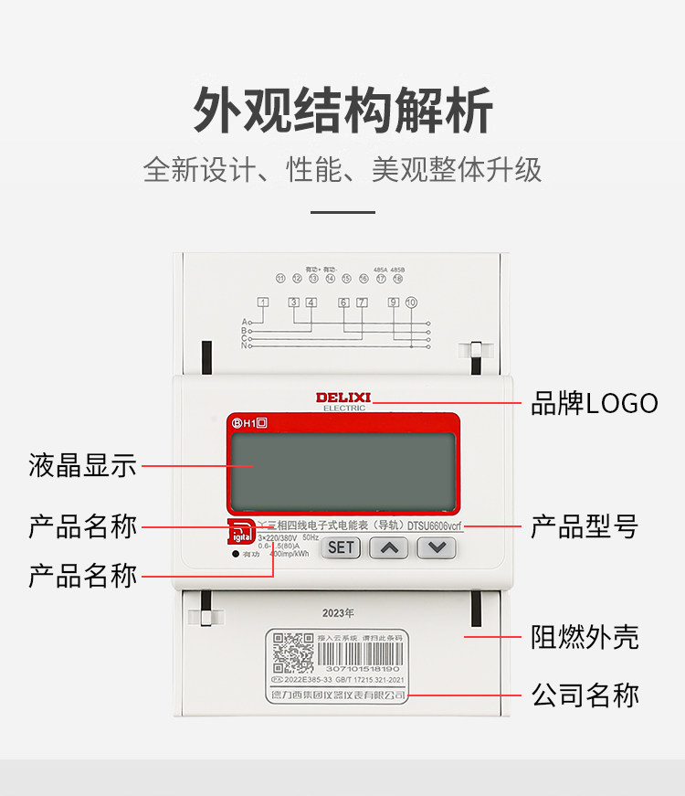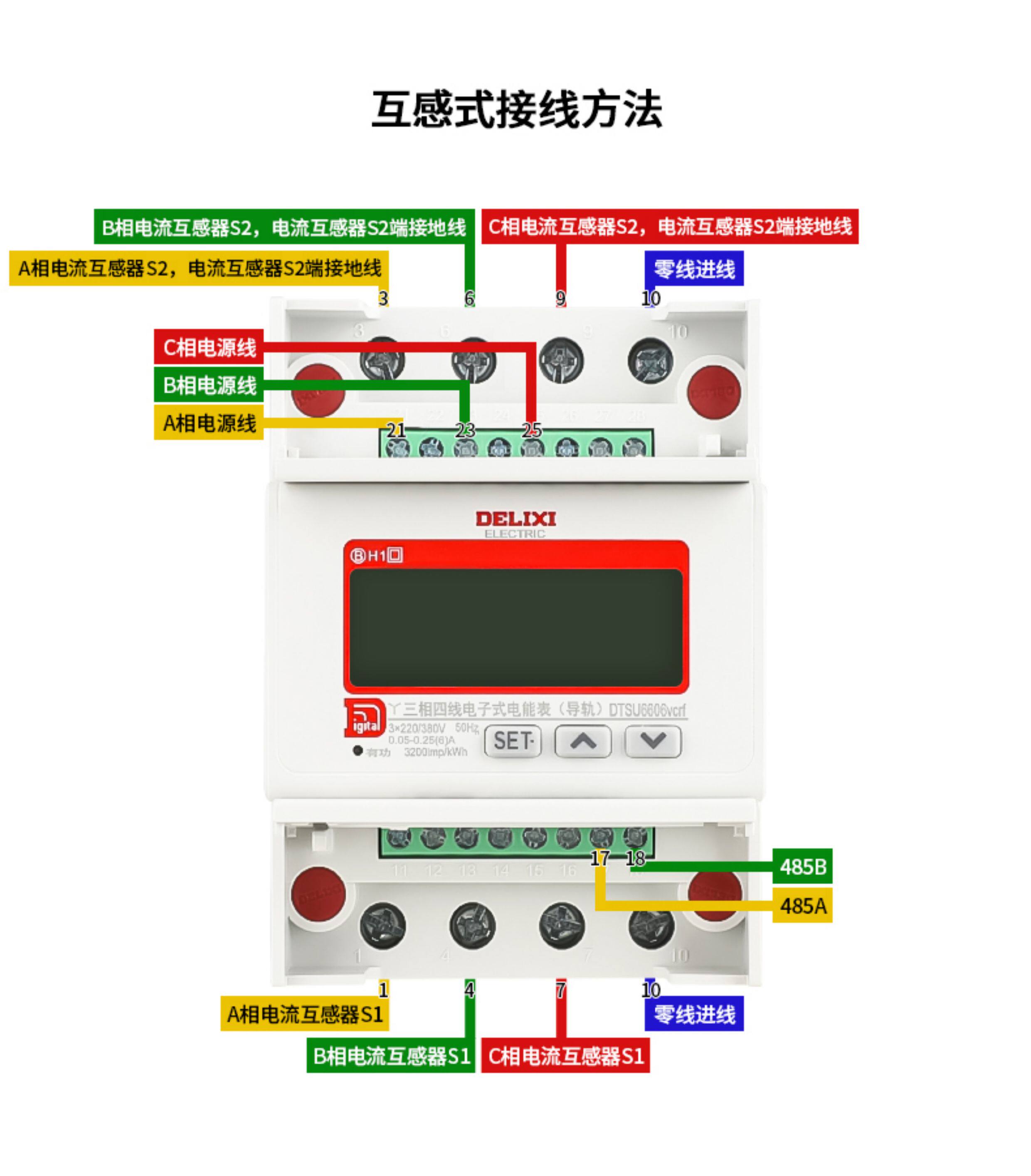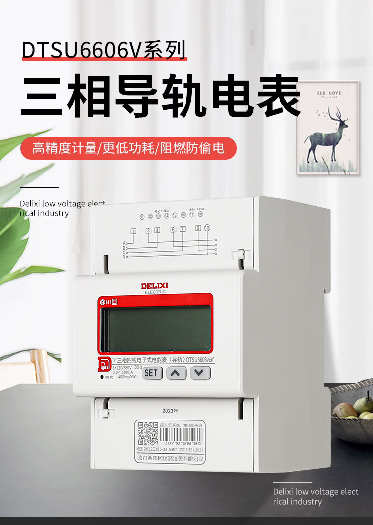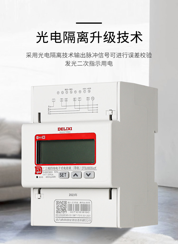 Delixi Dtsu6606 Three-Phase Four-Wire Digital Electric Meter for Home Use 380V Rail-Mounted Digital Display Lcd Energy Meter