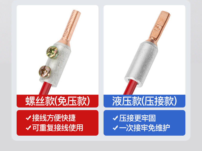 Color Classification [Crimped Version]10mm² Copper Wire (10 Pieces),[Crimped Version]16mm² Copper Wire (10 Pieces),[Crimped Version]25mm² Copper Wire (10 Pieces),[Crimped Version]35mm² Copper Wire (10 Pieces),[No Deposit Required]6-16mm² Aluminum Wire (10 Pieces),[No Deposit Required]16-25mm² Aluminum Wire (10 Pieces),[No Deposit Required]25-35mm² Aluminum Wire (10 Pieces),[No Deposit Required]35-50mm² Aluminum Wire (10 Pieces),[Crimped Version]10mm² Aluminum Wire (10 Pieces),[Crimped Version]16mm² Aluminum Wire (10 Pieces),[Crimped Version]25mm² Aluminum Wire (10 Pieces),[Crimped Version]35mm² Aluminum Wire (10 Pieces),[Crimped Version]50mm² Aluminum Wire (10 Pieces),[Crimped Version]70mm² Aluminum Wire (10 Pieces)
