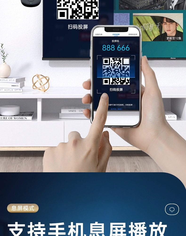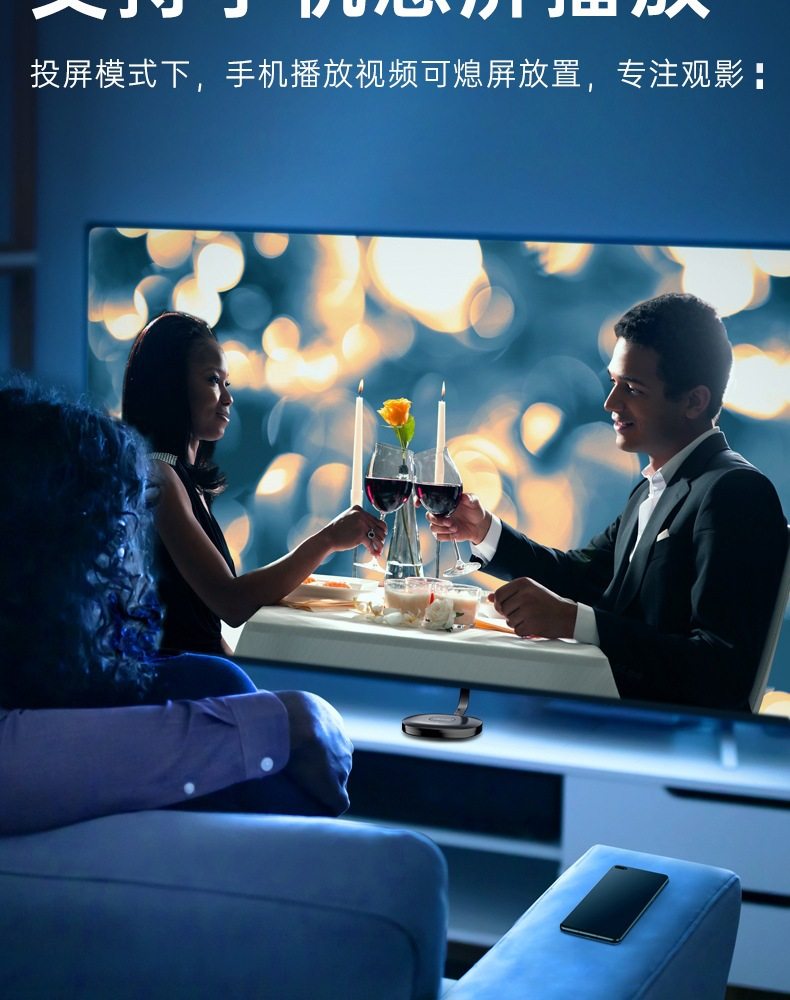 Wireless Screen Projector for Mobile Phones, 4K Ultra-High Definition Screen Mirroring Device, Connects to HDMI Projector, Computer Monitor, Home-Use Old Tv, Suitable for Huawei, Xiaomi, Apple Phones, iPad Vertical Screen Switching