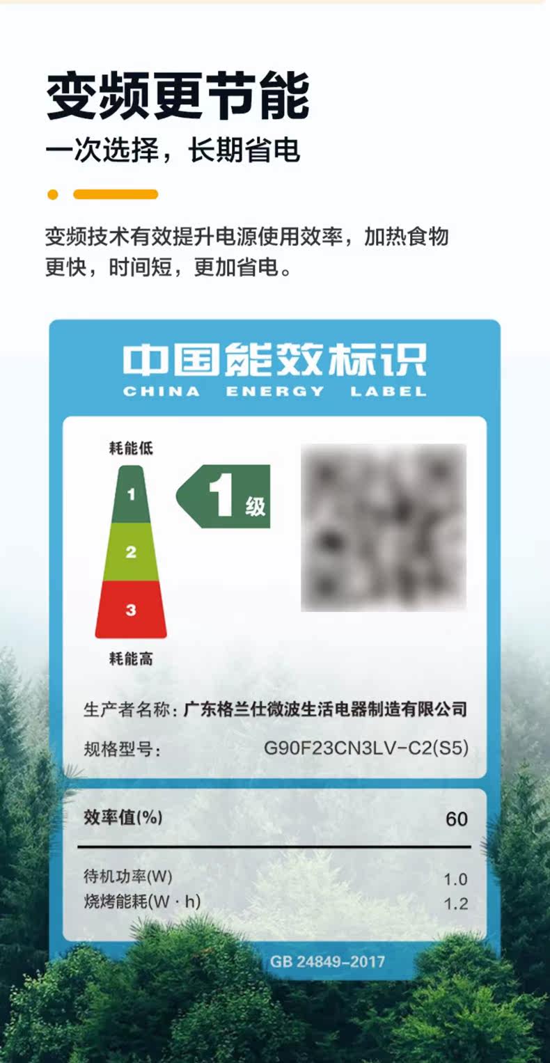 Galanz G90F23Cn3Lv-C2(S5) Microwave Oven Light Wave Oven First-Class Energy Efficiency Household Flat-Panel Appliance