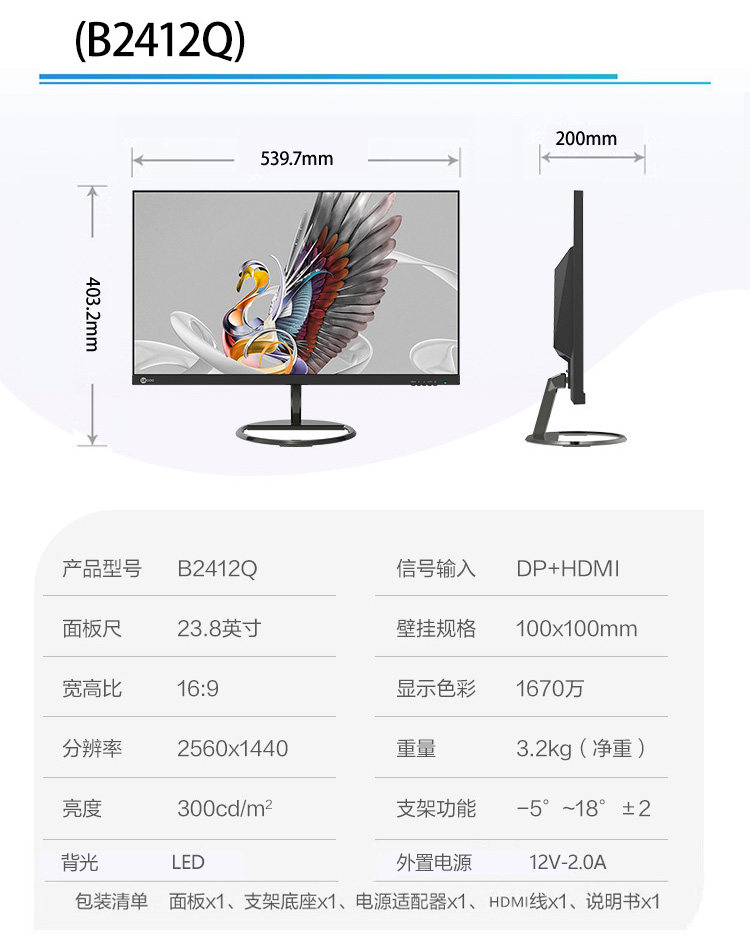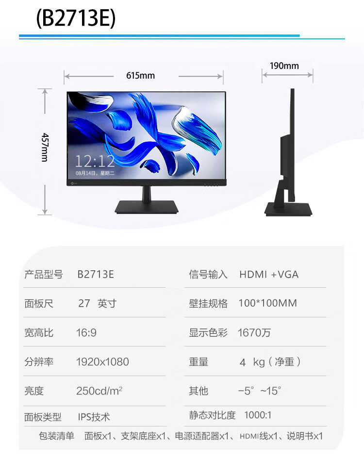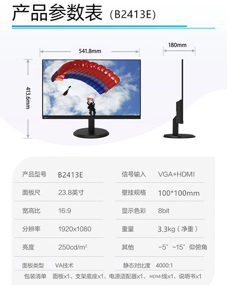 Color Classification B2221E-R 21.5inch,B2432E 23.8inch,L2255 21.45inch,B2731E 27inch Supports Wall Mounting,M2427Q-R(23.8-Inch 2K Hdmi+Dp Wall-Mountable),Lenovo Genuine Products with Nationwide Warranty