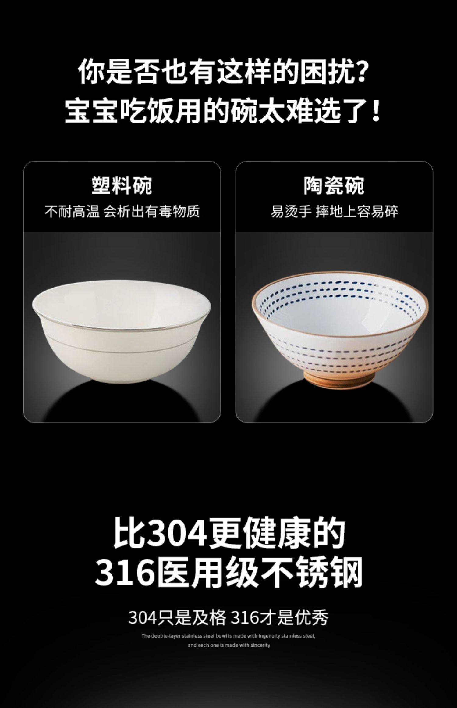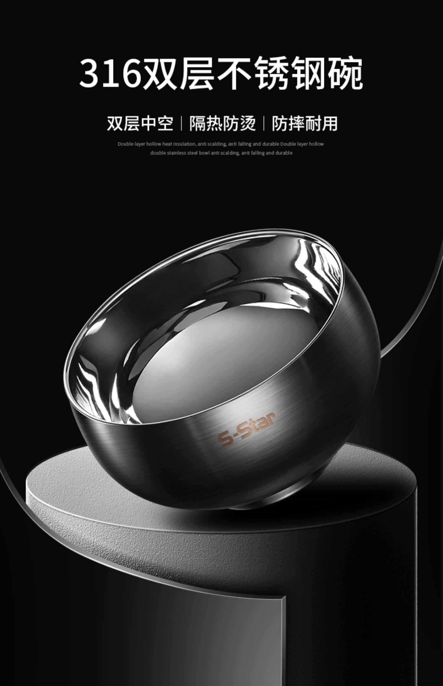 German Imported 316 Food-Grade Stainless Steel Bowl Set for Home Use, Suitable for Children and Adults, Double-Layer Insulated, Anti-Slip and Anti-Scald