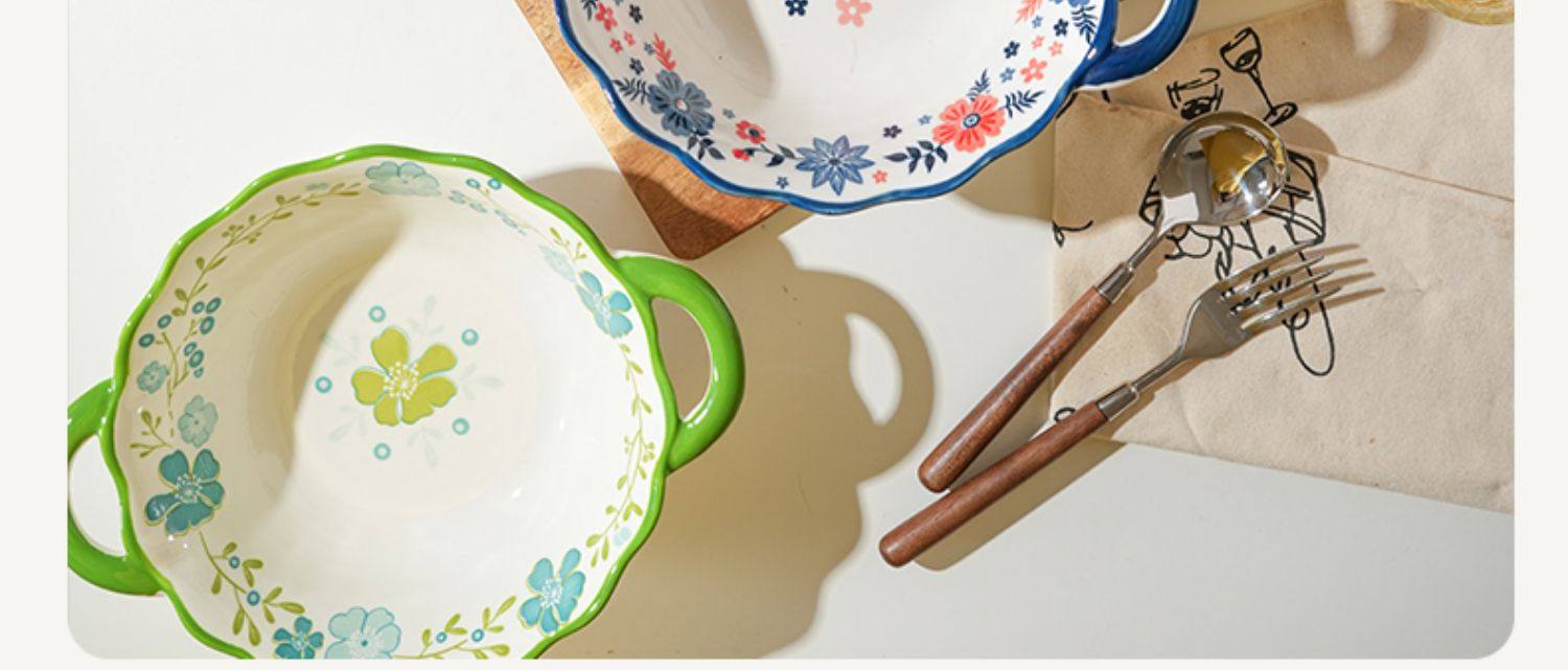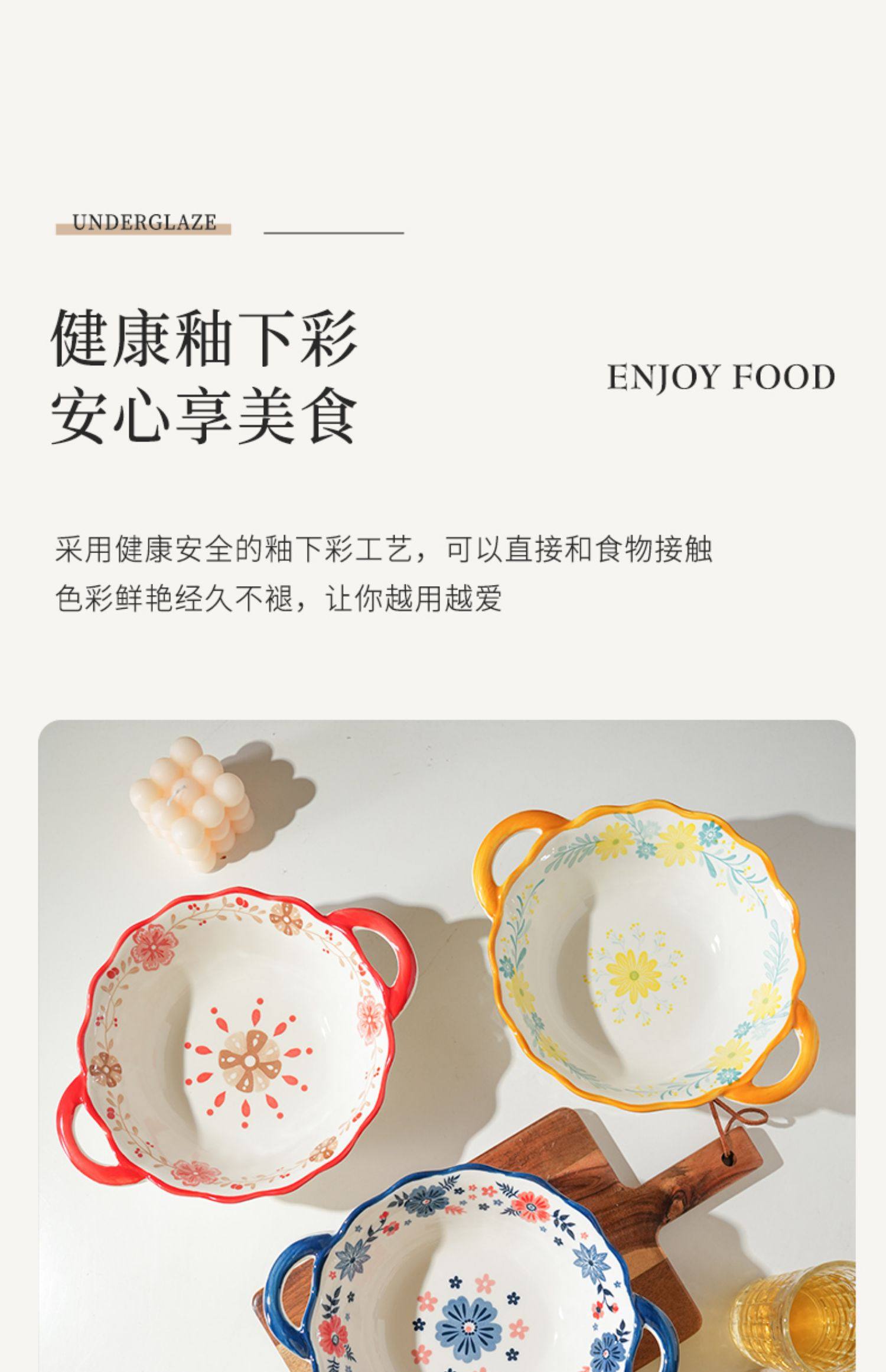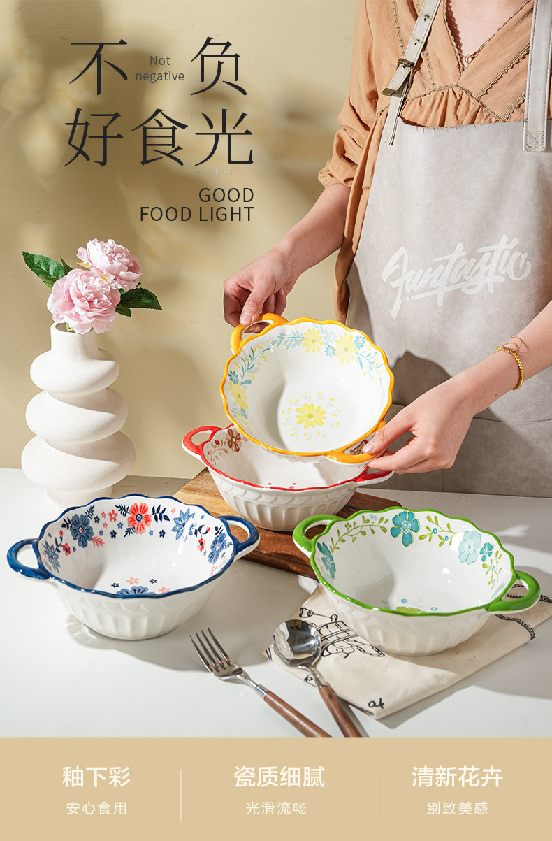 German Imported Double-Ear Anti-Scald Ceramic Large-Capacity Bowl for Home Use, High Aesthetic Appeal, Popular Online Salad, Instant Noodle, and Snail Noodle Bowl