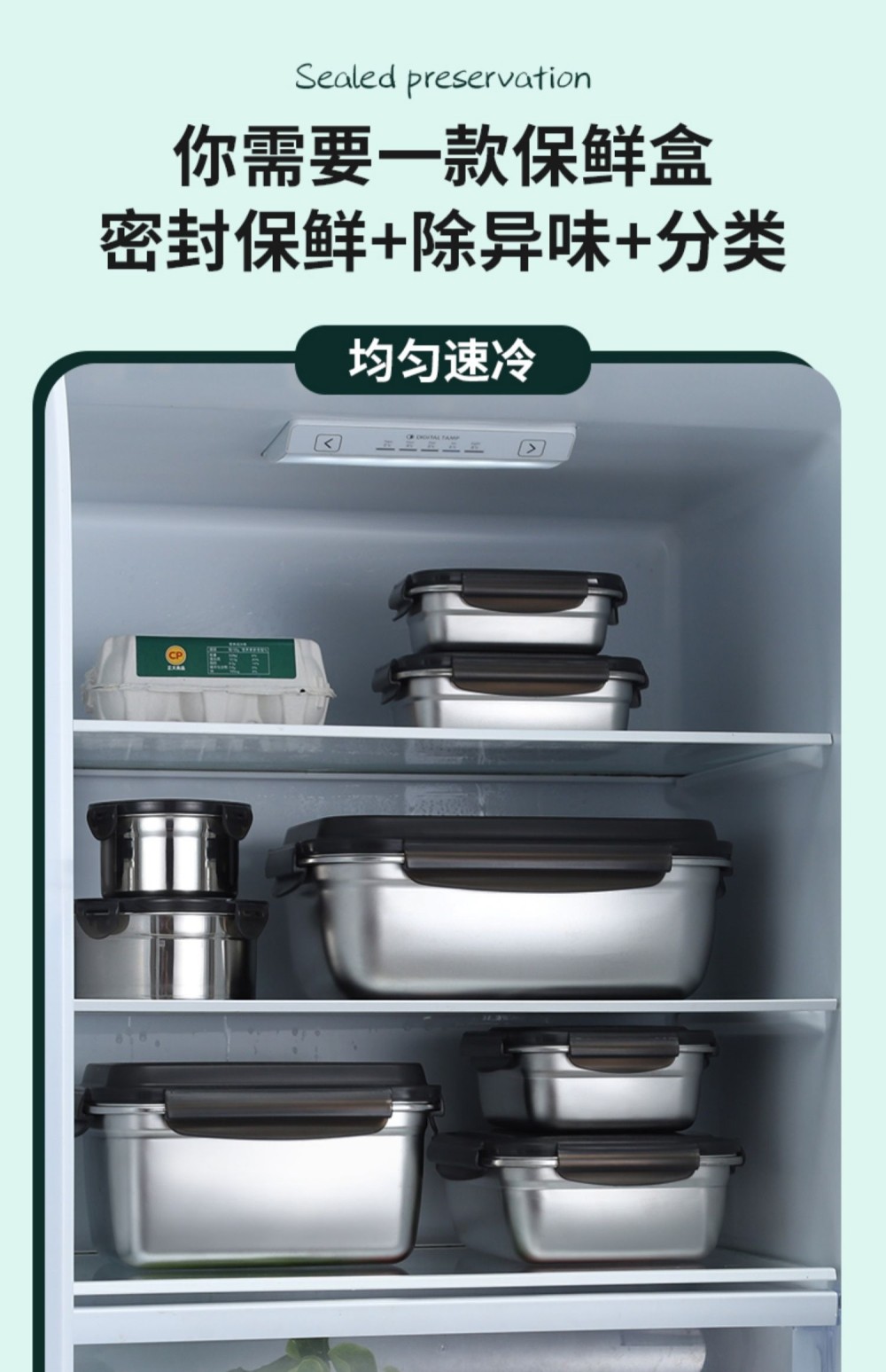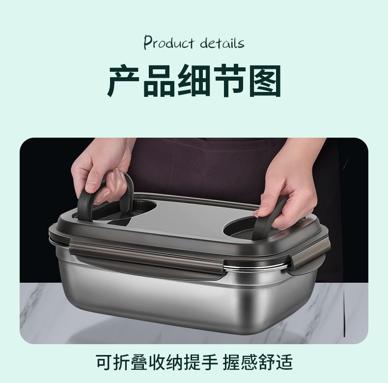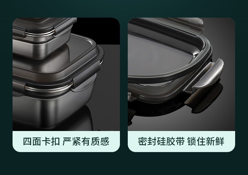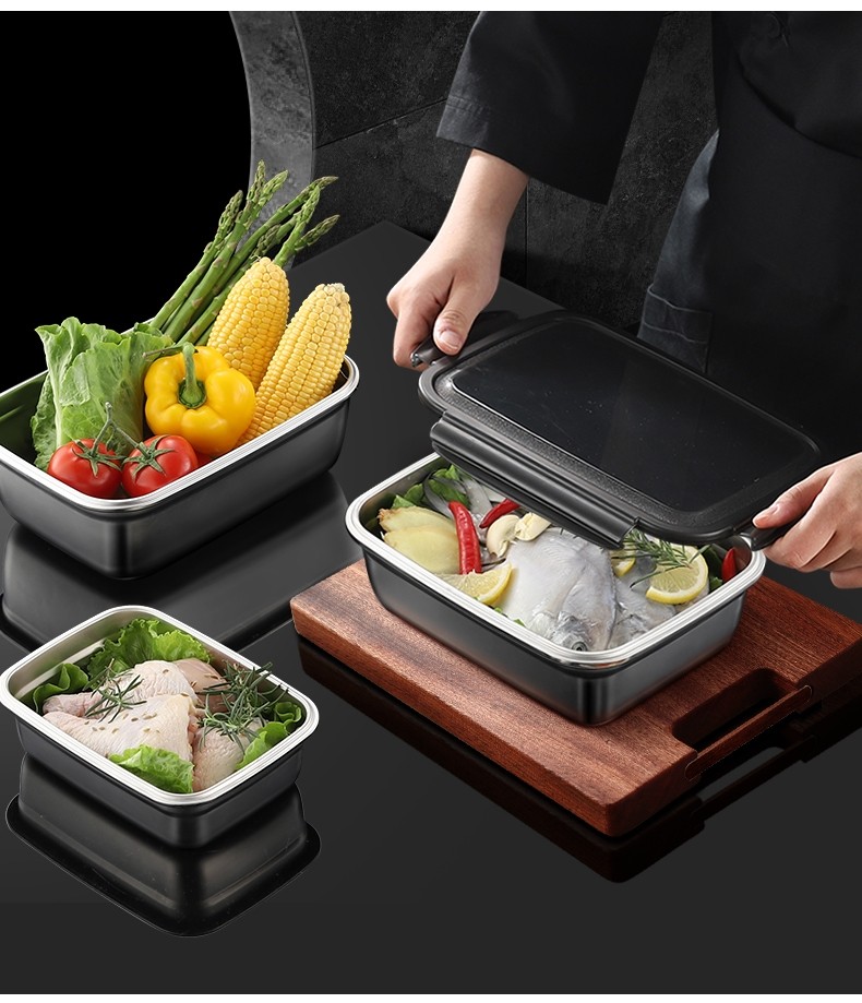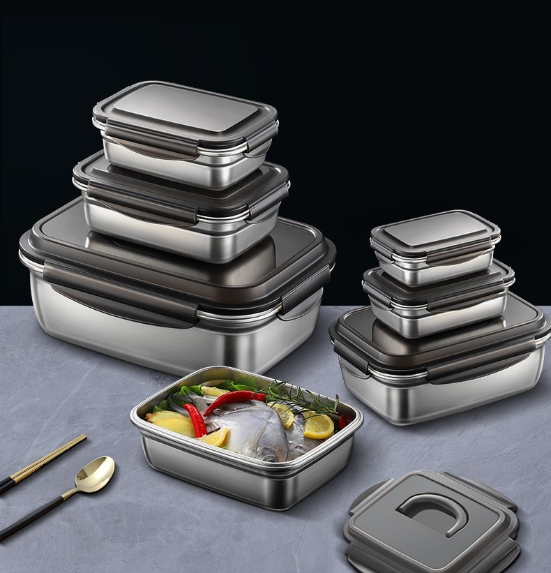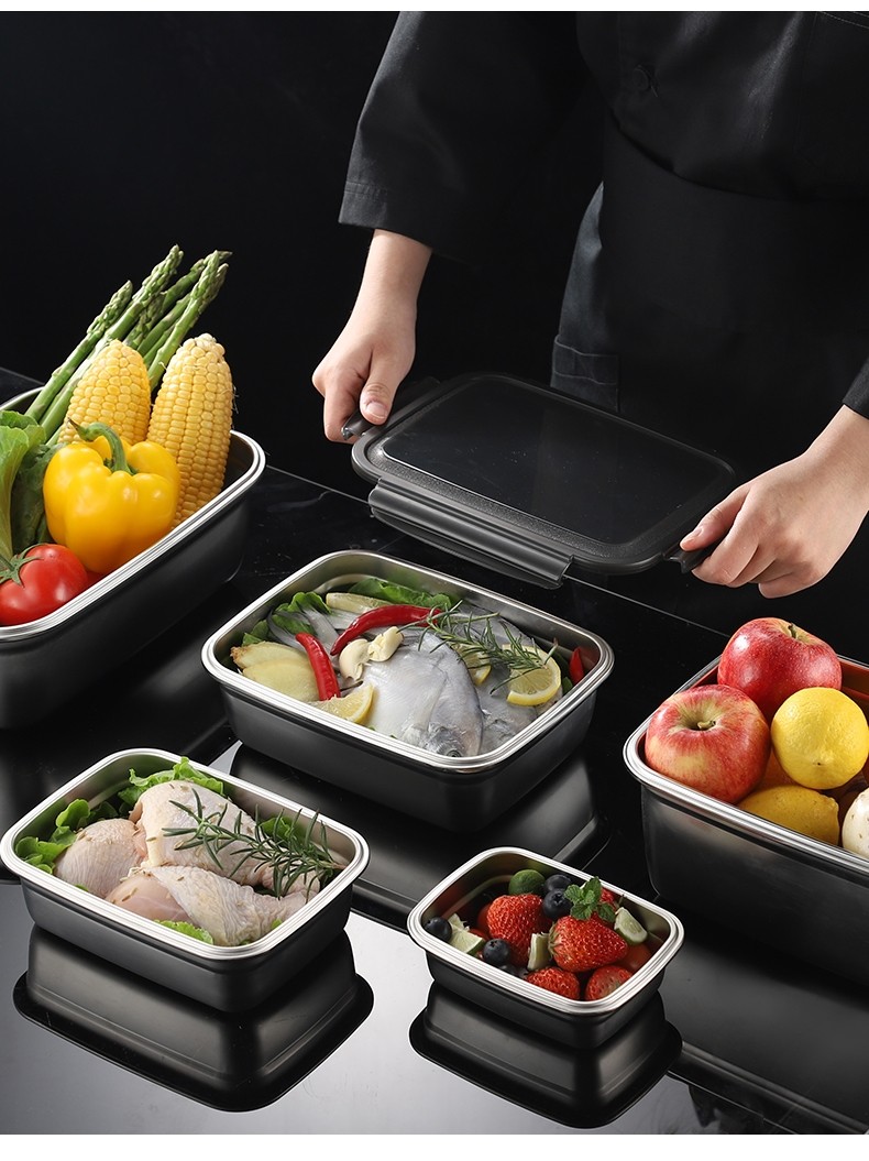 German Imported Food-Grade Preservation Box for Refrigerators, Made of 304 Stainless Steel, Suitable for Lunch Boxes, Sealed Storage for Fruits, and Can Be Heated