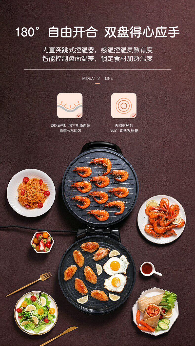 Midea MC-JHN34Q double-sided suspended heating electric baking pan household anti-scald large grill pan