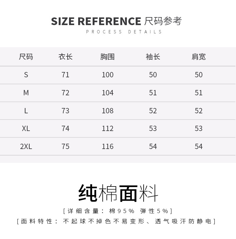 Material Composition 95% Cotton, 5% Polyurethane Elastic Fiber (Spandex)