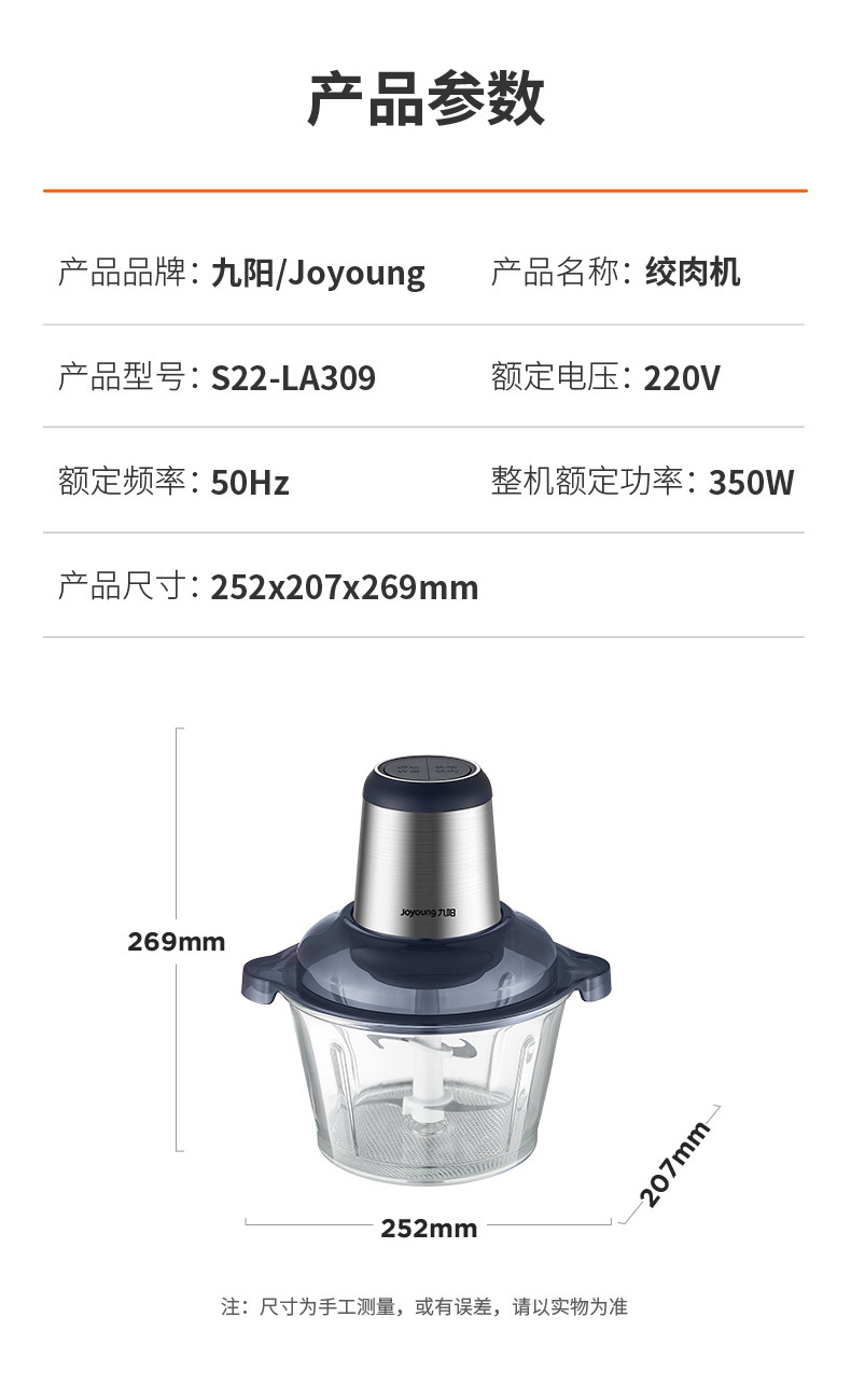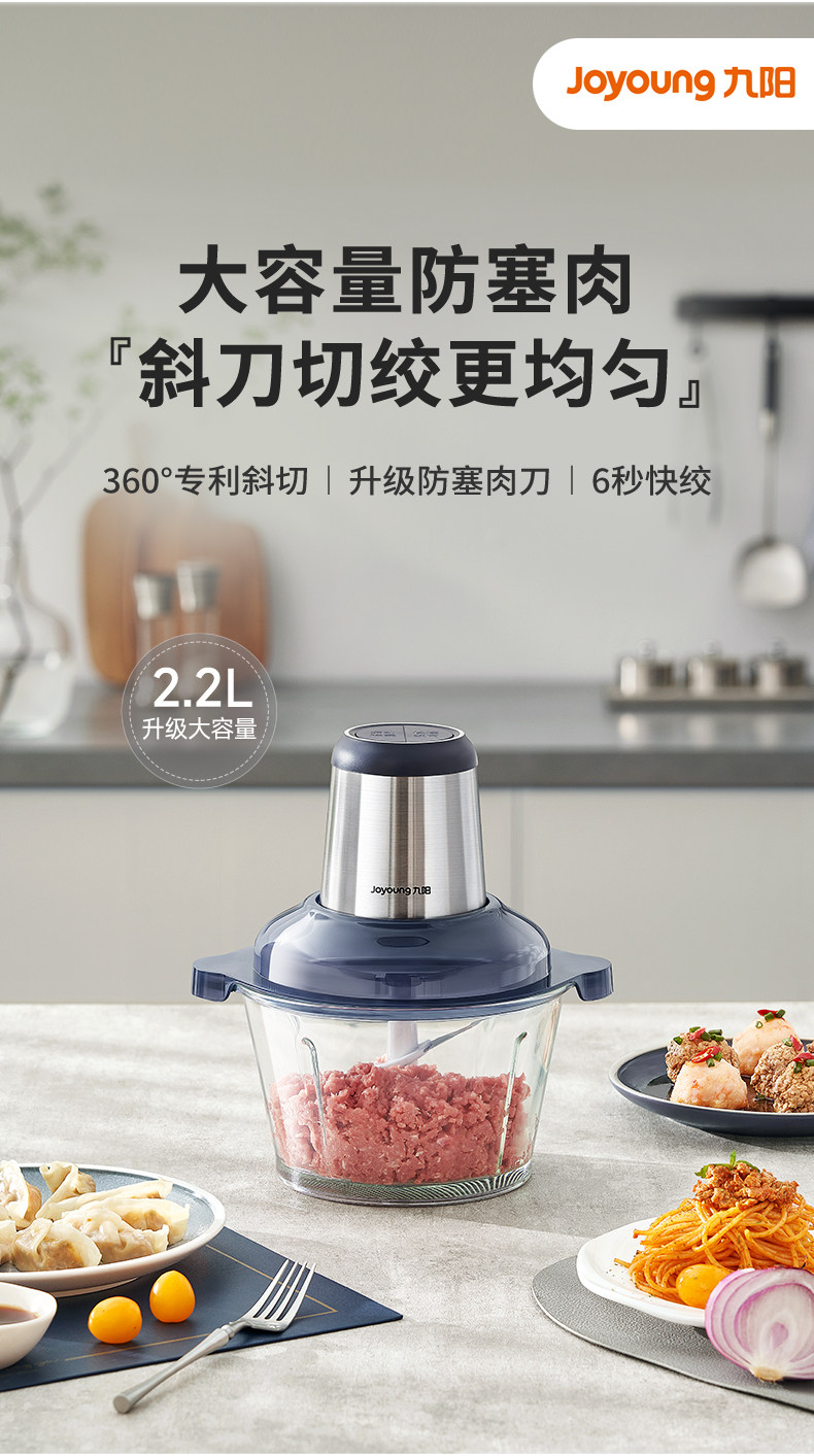 Joyoung meat grinder household fully automatic multi-functional small glass stainless steel meat grinder stuffing electric 2023 new model