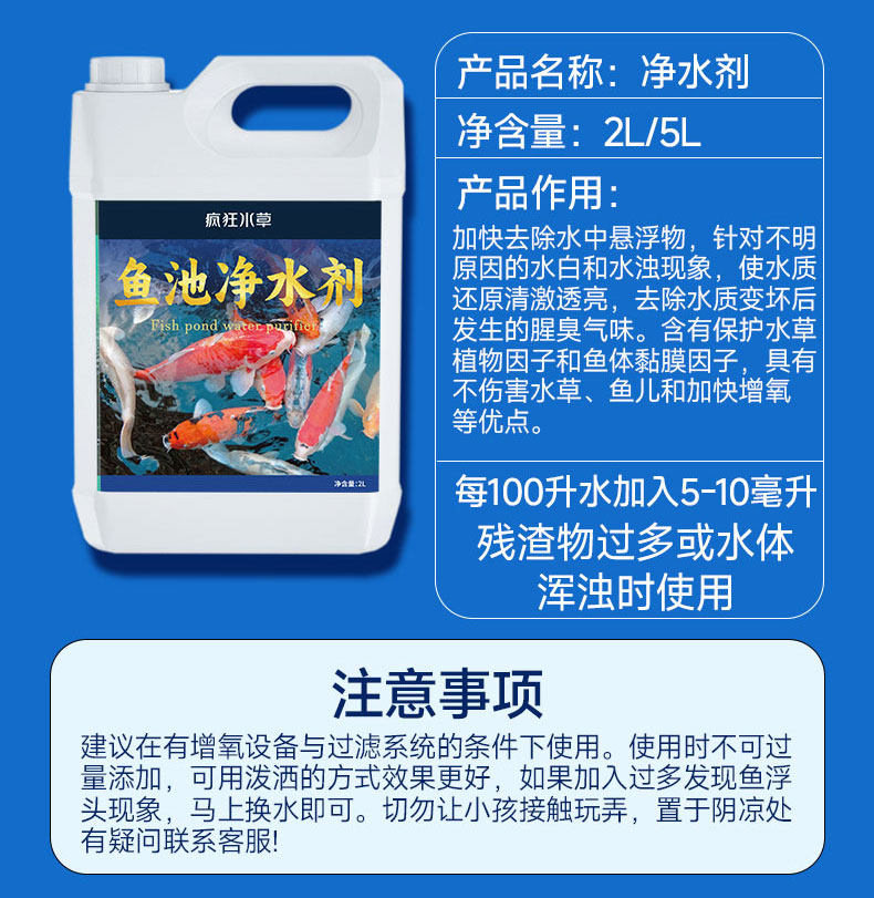 Sort by color Fish pond algae removal agent 2L/2000ml (does not harm fish and shrimp).,Affordable large quantity of fish pond algaecide 5L.,Fish pond water purifier 2L/2000ml is specially used to remove yellow water.,Affordable large capacity fish pond water purifier 5L.,Fish pond nitrifying bacteria 2L/2000ml, dedicated to dead fish.,Affordable large capacity fish pond nitrifying bacteria 5L.,Duckweed remover 2L/2000ml (sweep the water surface away).,Affordable Large Capacity Duckweed Remover 5L.,Fish pond algae removal and moss removal powder 500G (safe and protect fish).,Fish pond algae removal and moss removal powder 1000G (safe and protect fish).,Daily cleaning of fish pond water quality - 2L removal of green water and yellow water.,Routine maintenance of fish pond water quality-2L Keep fish from getting sick.,Fish pond fish farming family portrait - 2L green water removal + yellow water removal + frequent water changes.,Daily cleaning of fish pond water quality - 5L removal of green water and yellow water.,Routine maintenance of fish pond water quality - 5L fish will not get sick.,Fish pond fish farming family portrait - 5L green water removal + yellow water removal + frequent water changes.,1,2,3,4,5,6,7,8,9,10,11,12,13,14,15,16,17