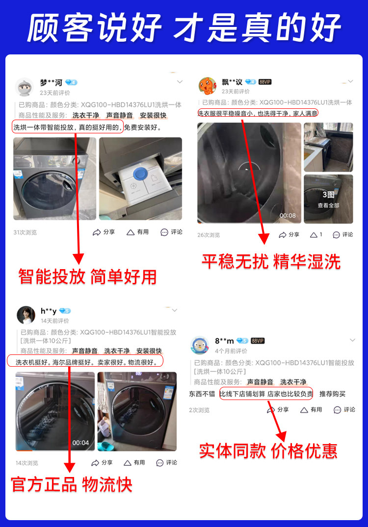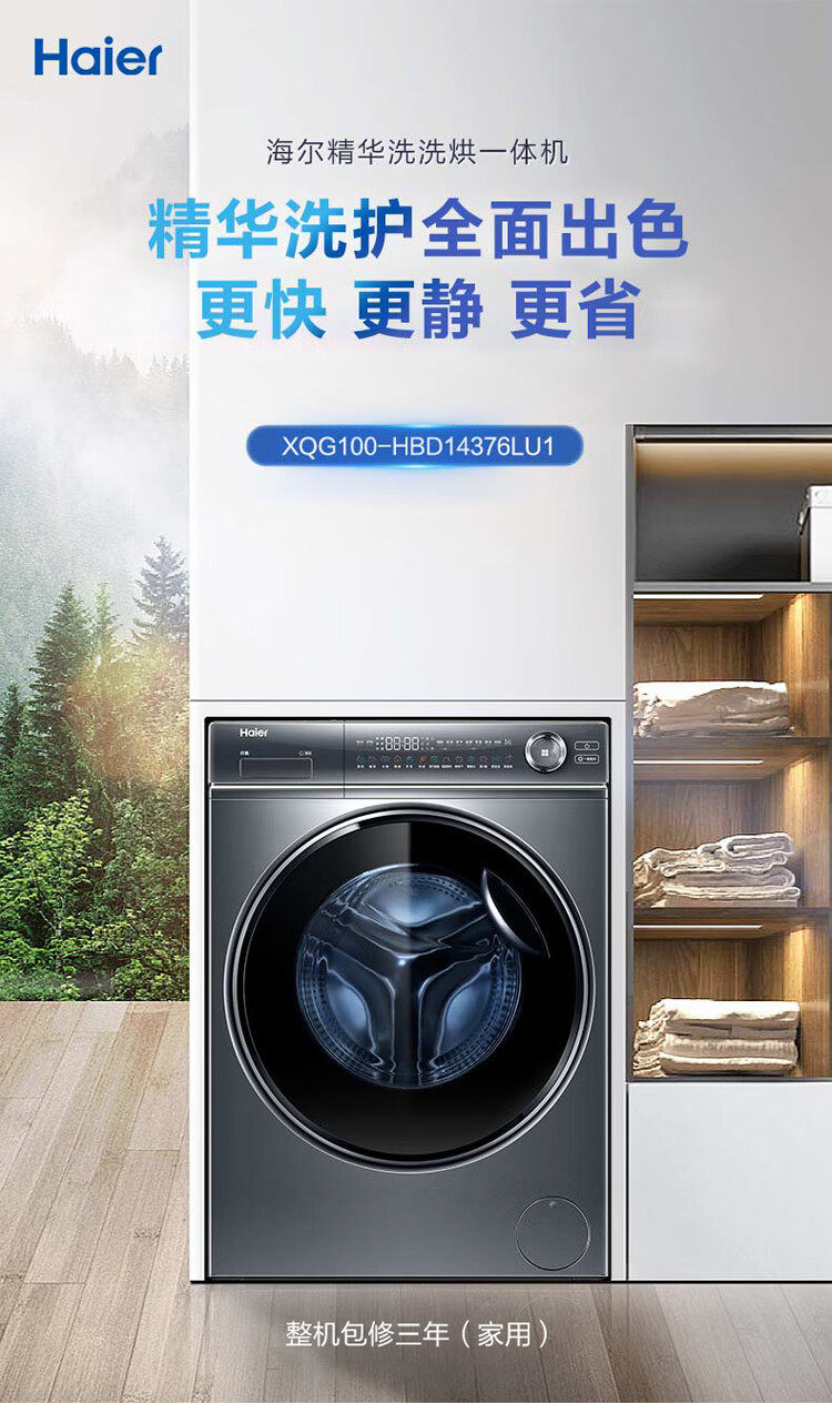 Haier washing machine essence washing and drying machine drum household direct drive frequency conversion XQG100-HBD14376LU1