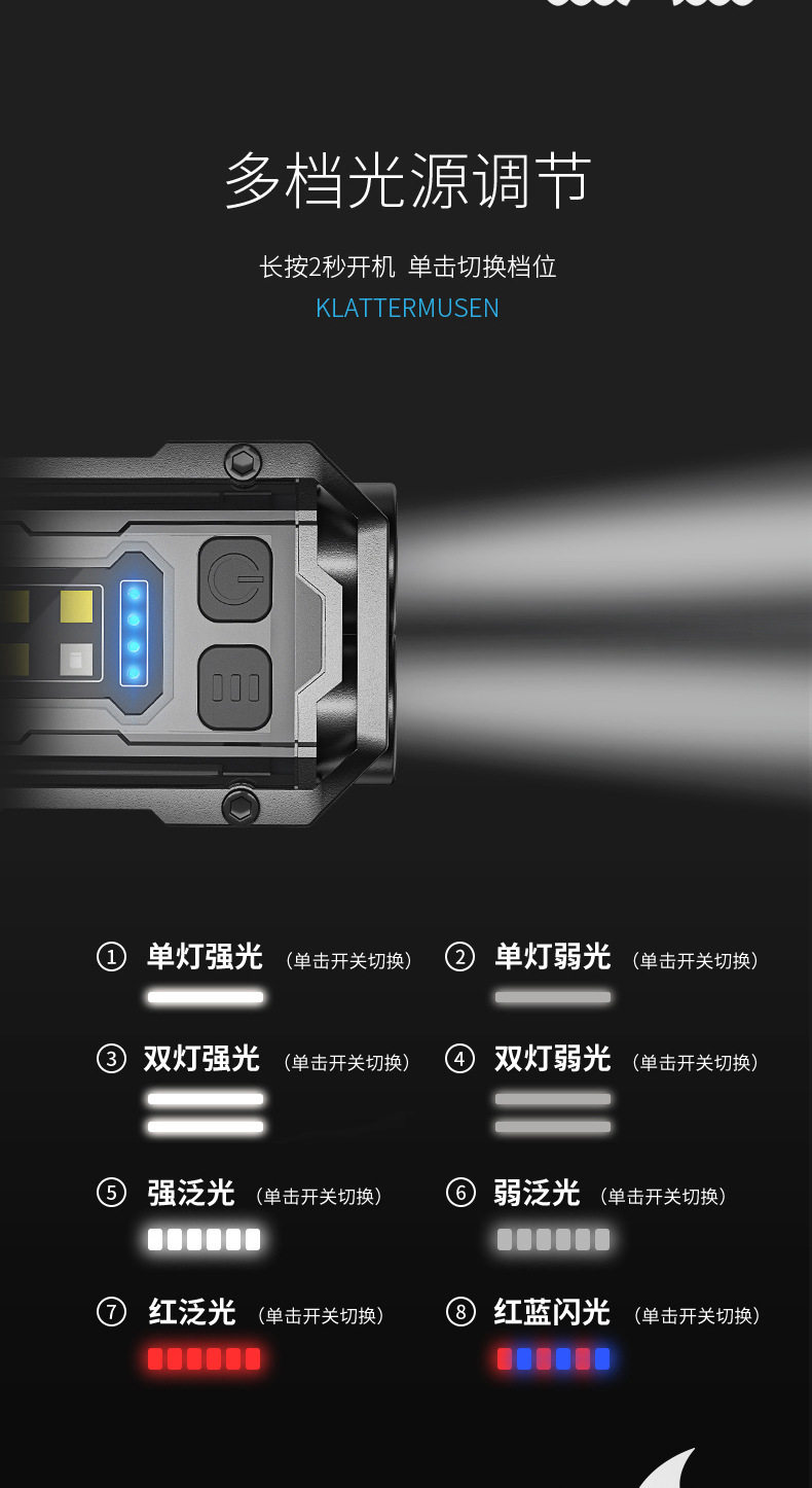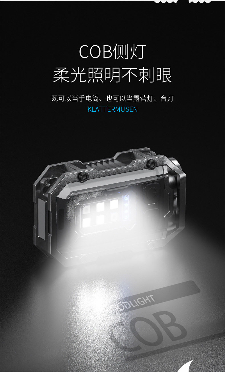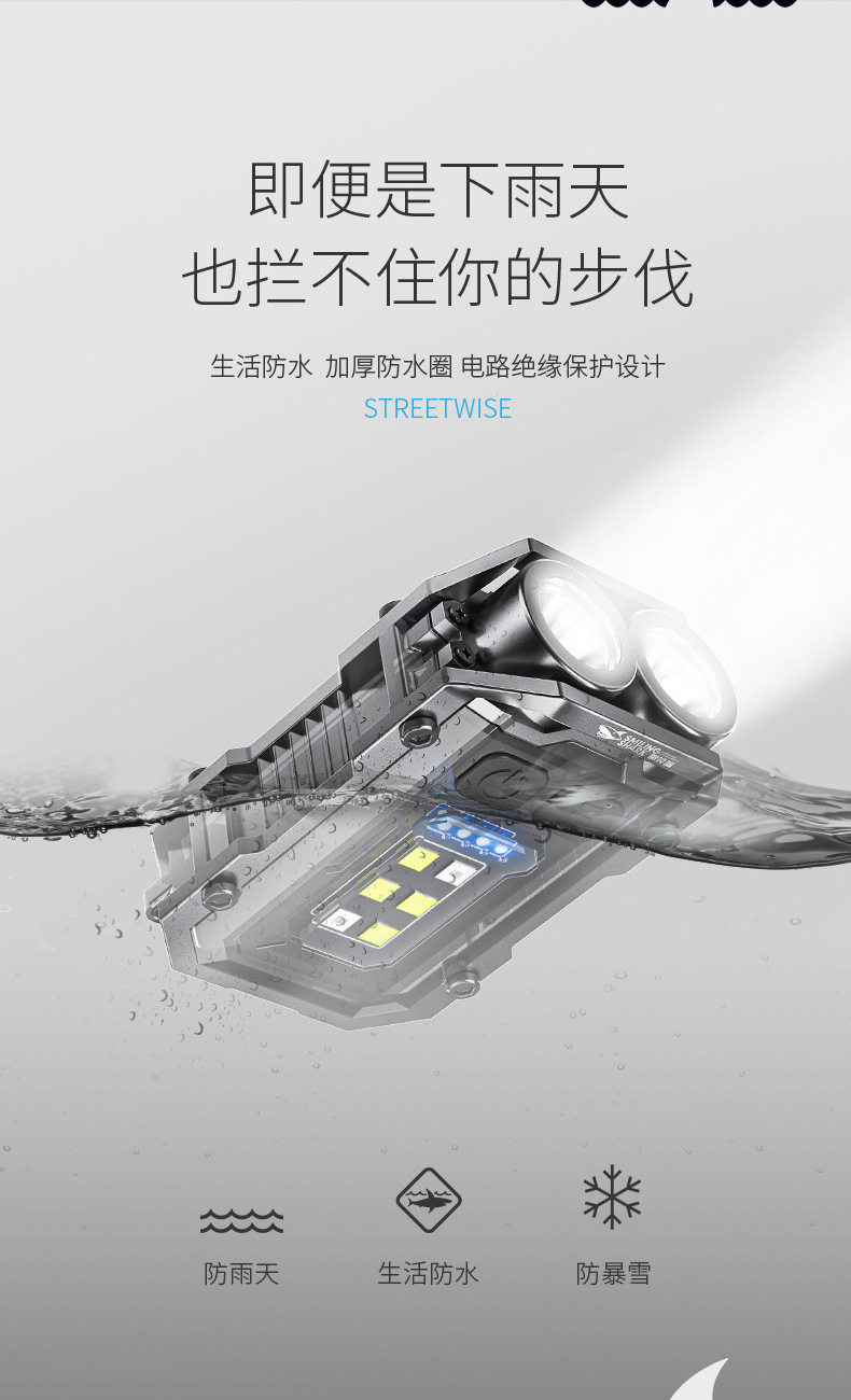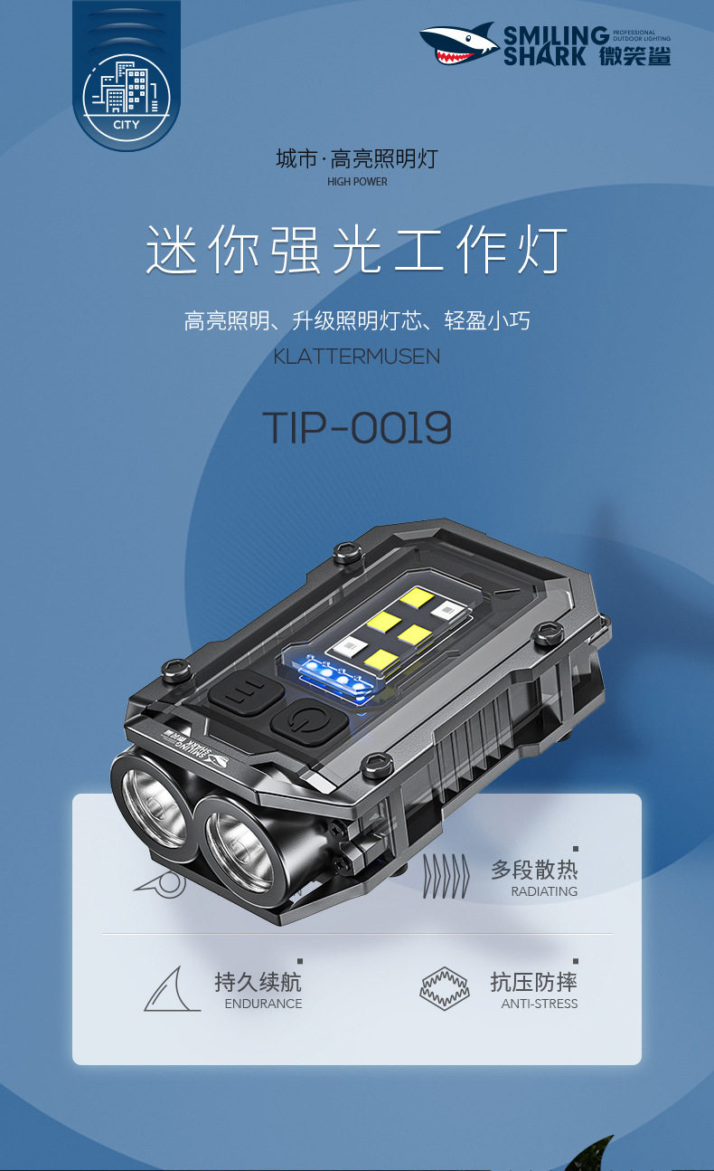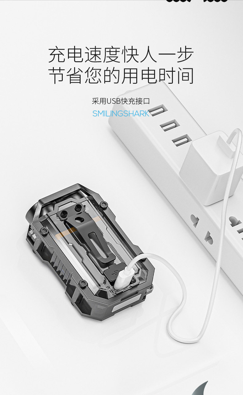 Smiling Shark Strong Light Auto Repair Work Light with Strong Magnet, Ultra-Bright Floodlight Side Light, Red and Blue Flashing Emergency Warning Flashlight