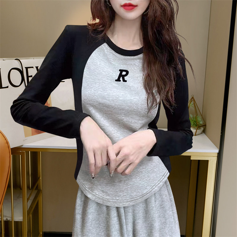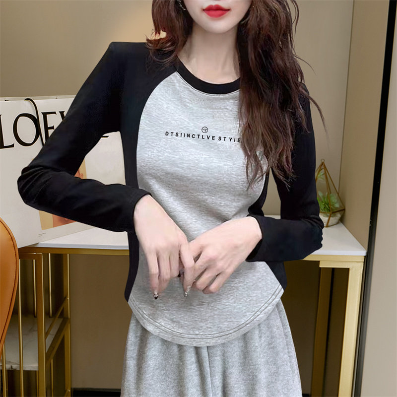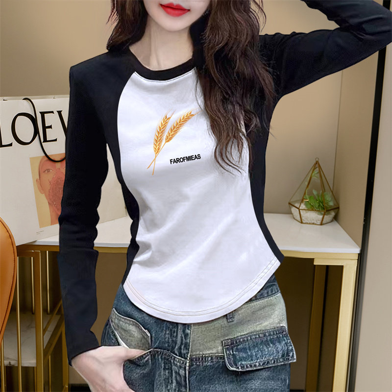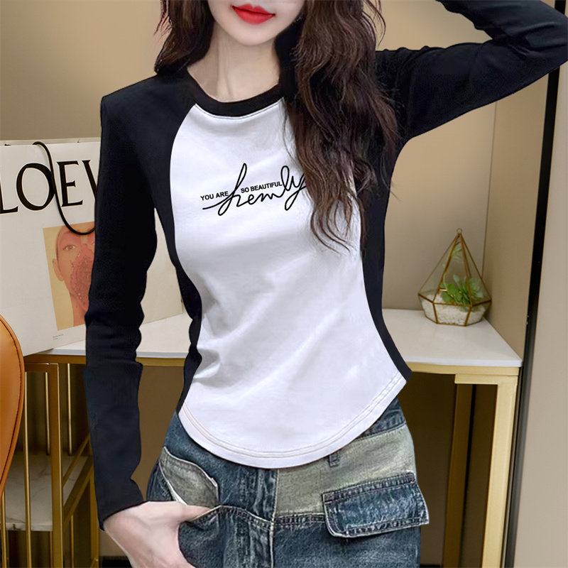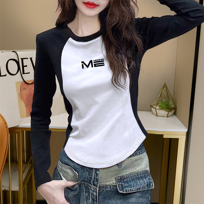 2026 Autumn Long-Sleeve T-Shirt for Women, Unique Design, Slim Fit, Short Style, Regular Shoulder, Slimming, Trendy Top, Base Shirt