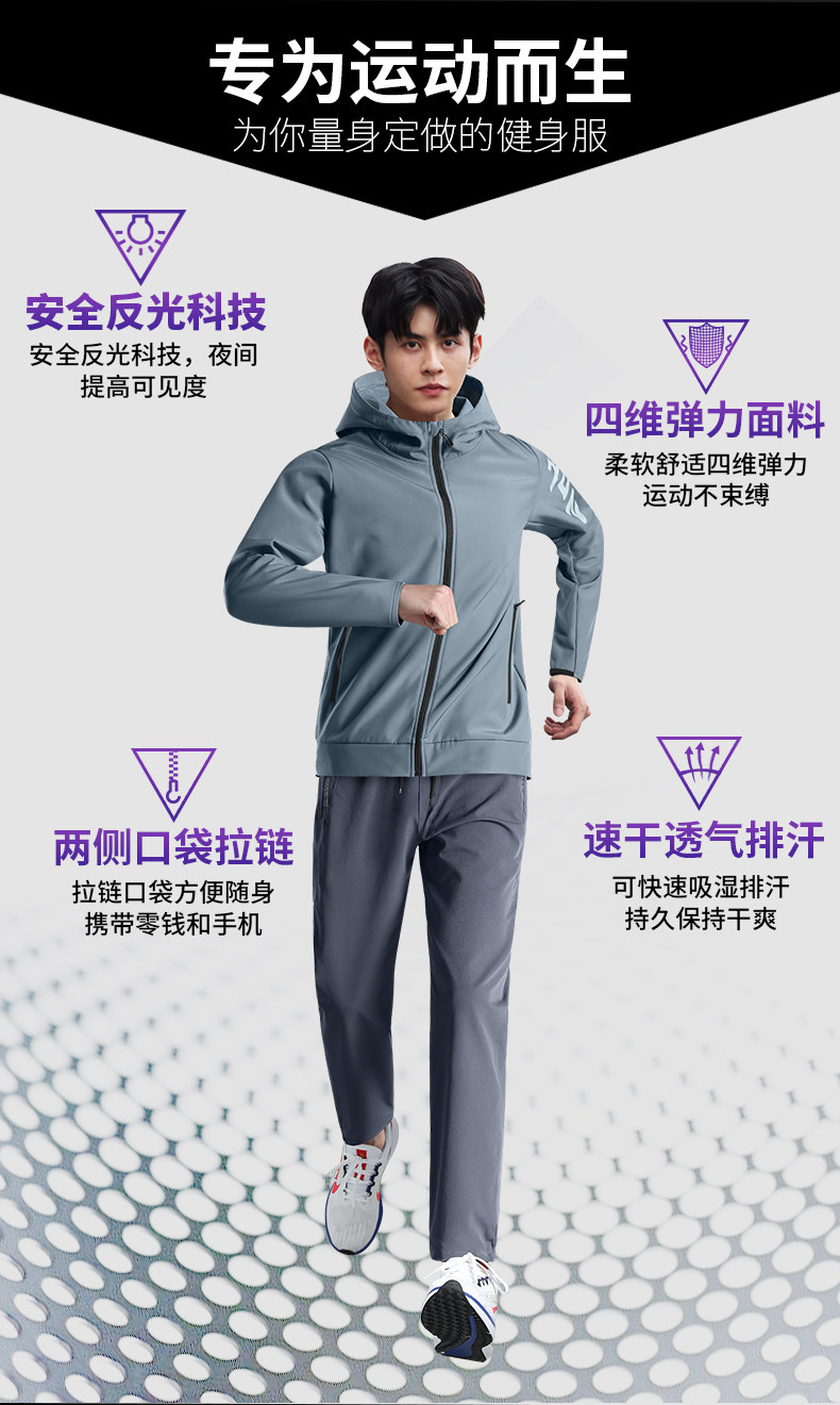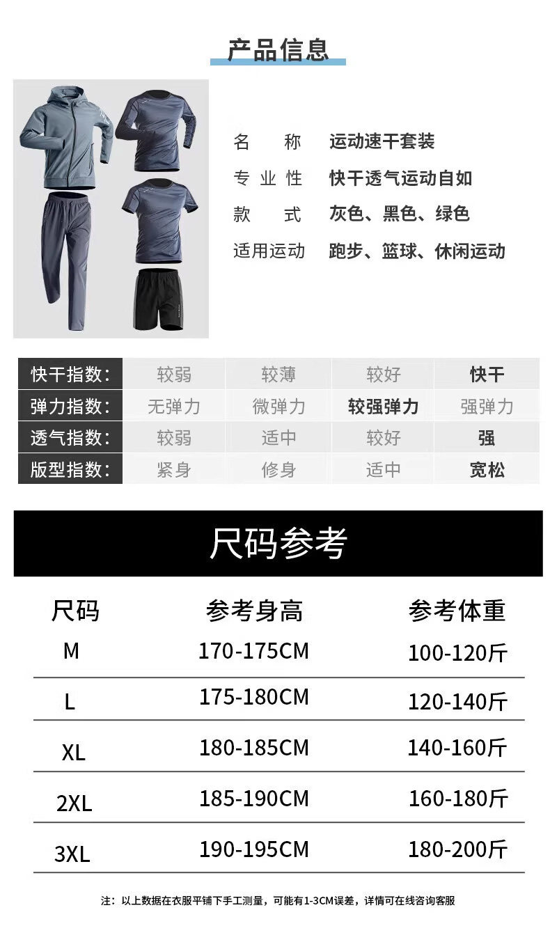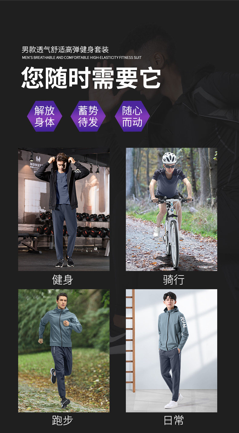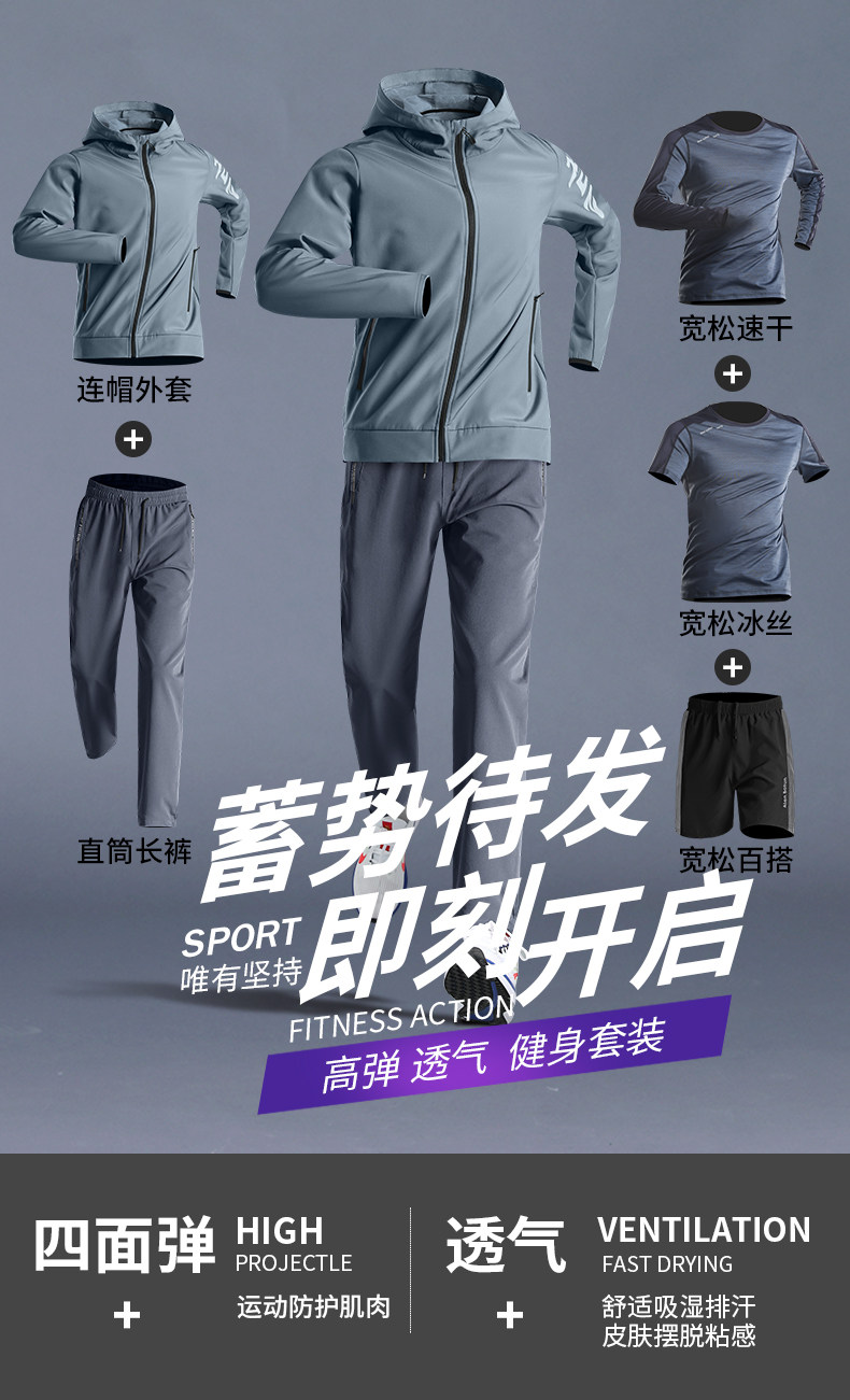 Sportswear suit men's running quick-drying clothing morning running cycling jacket autumn outdoor fitness leisure five-piece set