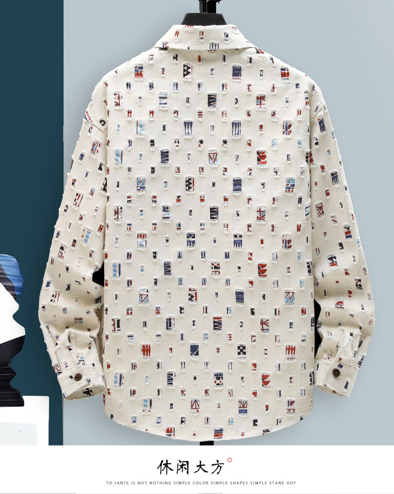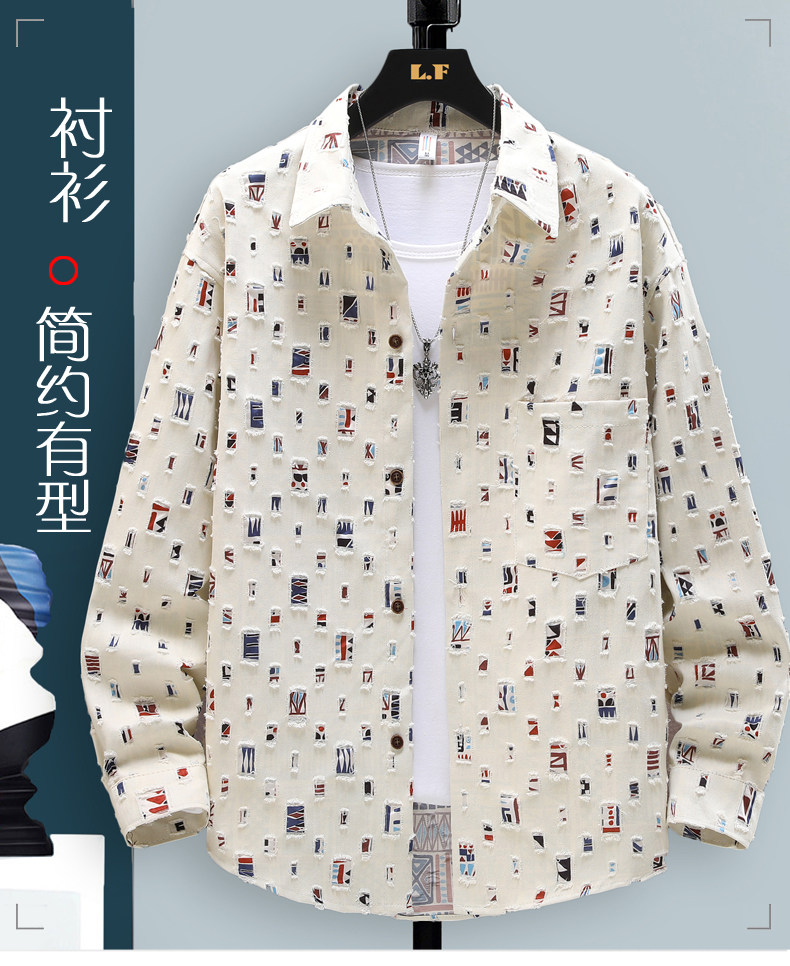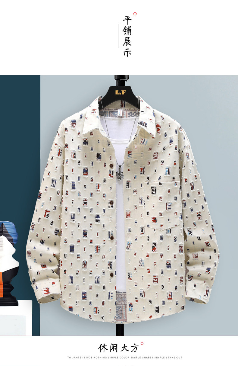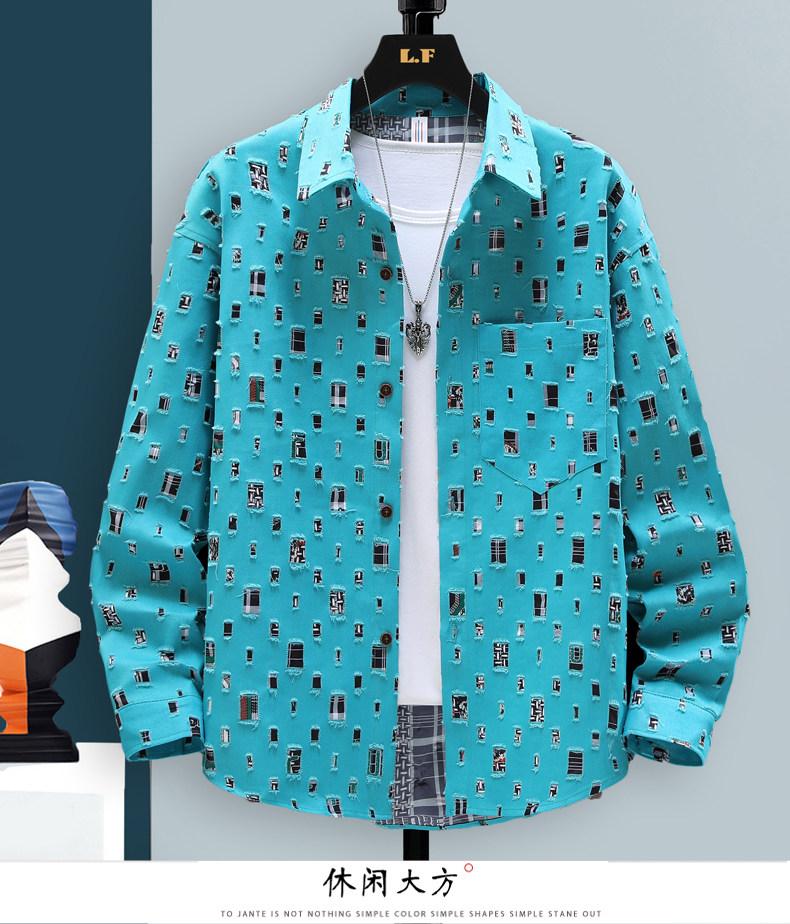 Long-Sleeved Shirt for Men, Autumn Pure Cotton Ripped Plaid Shirt, High-End Trendy Cool Casual Shirt Jacket