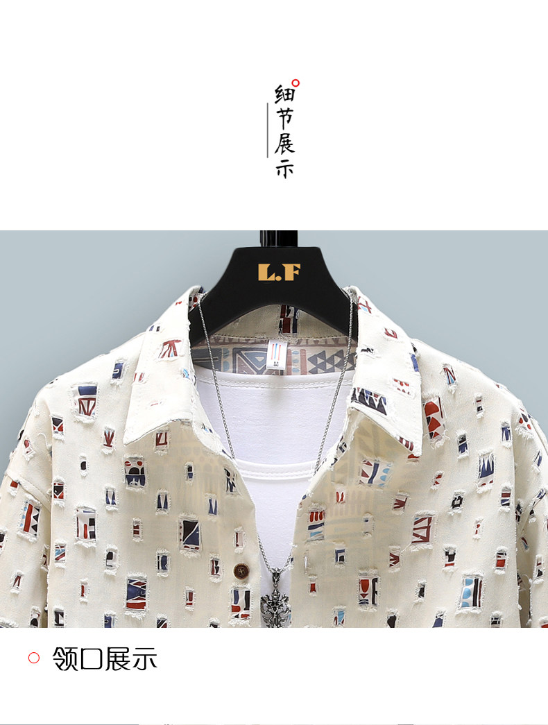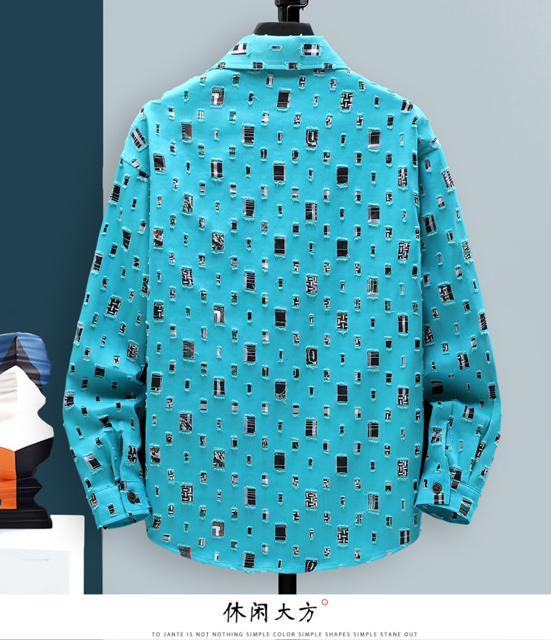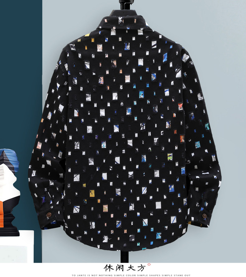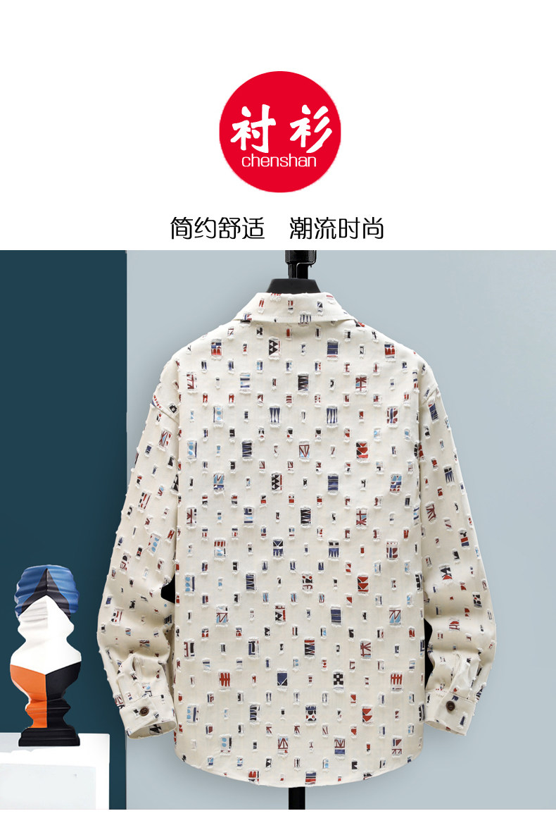 Long-Sleeved Shirt for Men, Autumn Pure Cotton Ripped Plaid Shirt, High-End Trendy Cool Casual Shirt Jacket