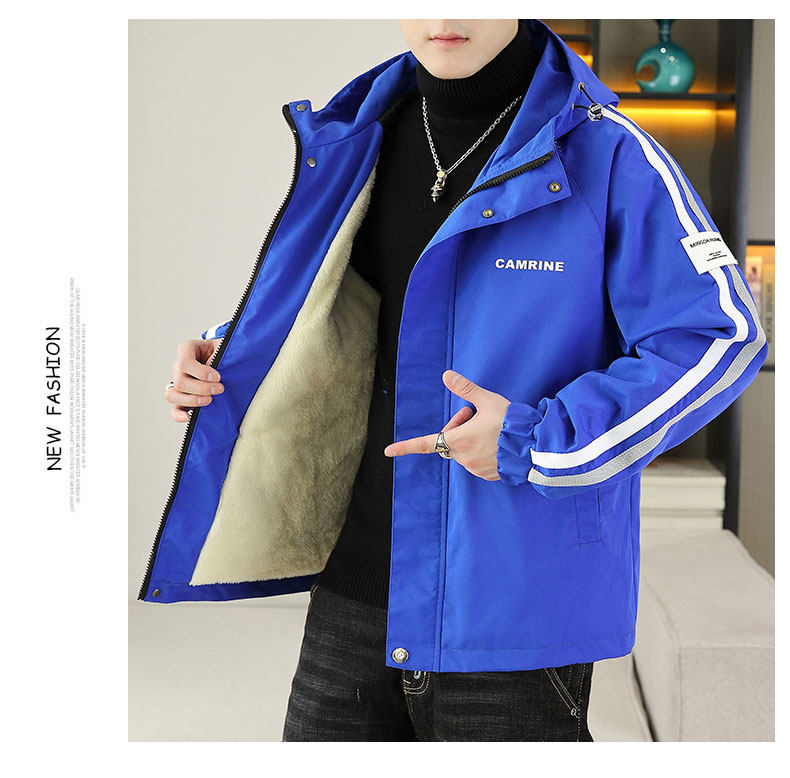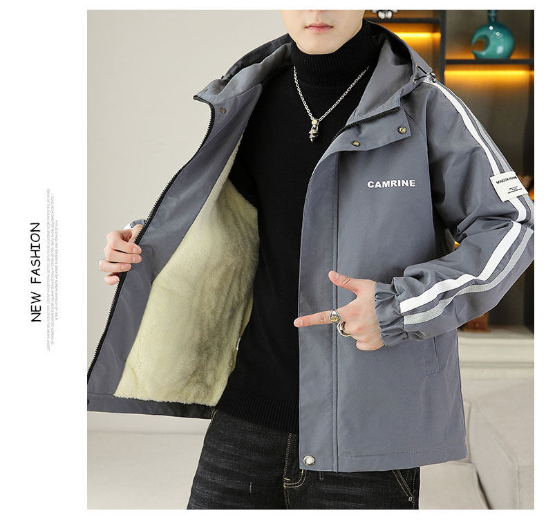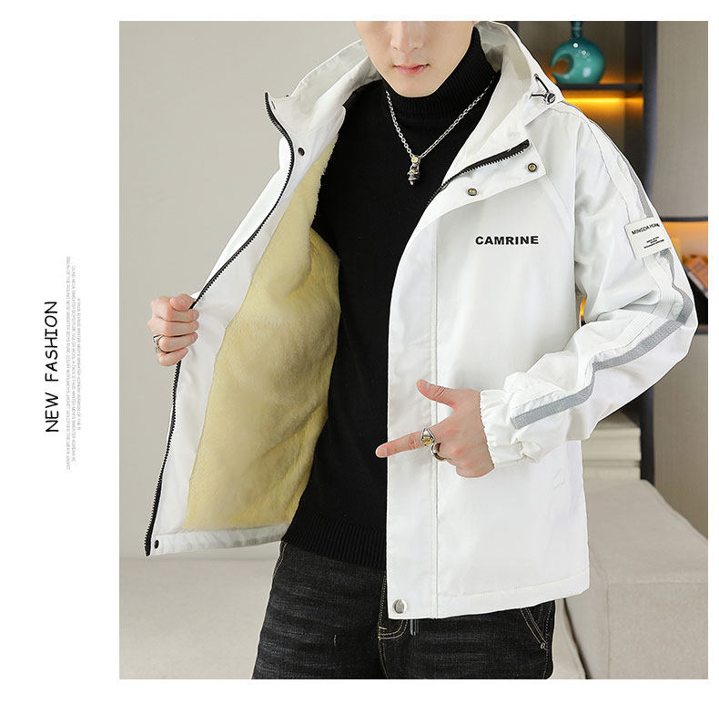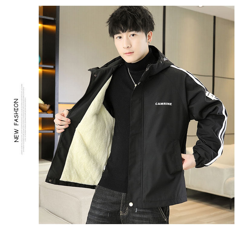 Men's Winter Jacket with Fleece Lining, Thickened, Trendy Brand, Casual Jacket, Men's Hooded Windbreaker, Warm Youth Cotton Coat